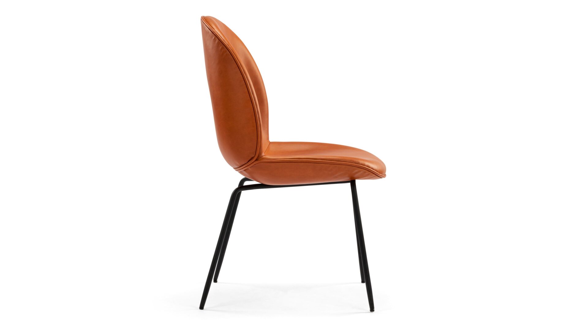 Experience luxurious comfort with the Beetle Dining Chair, featuring exquisite leather upholstery that exudes timeless elegance and enduring charm.
