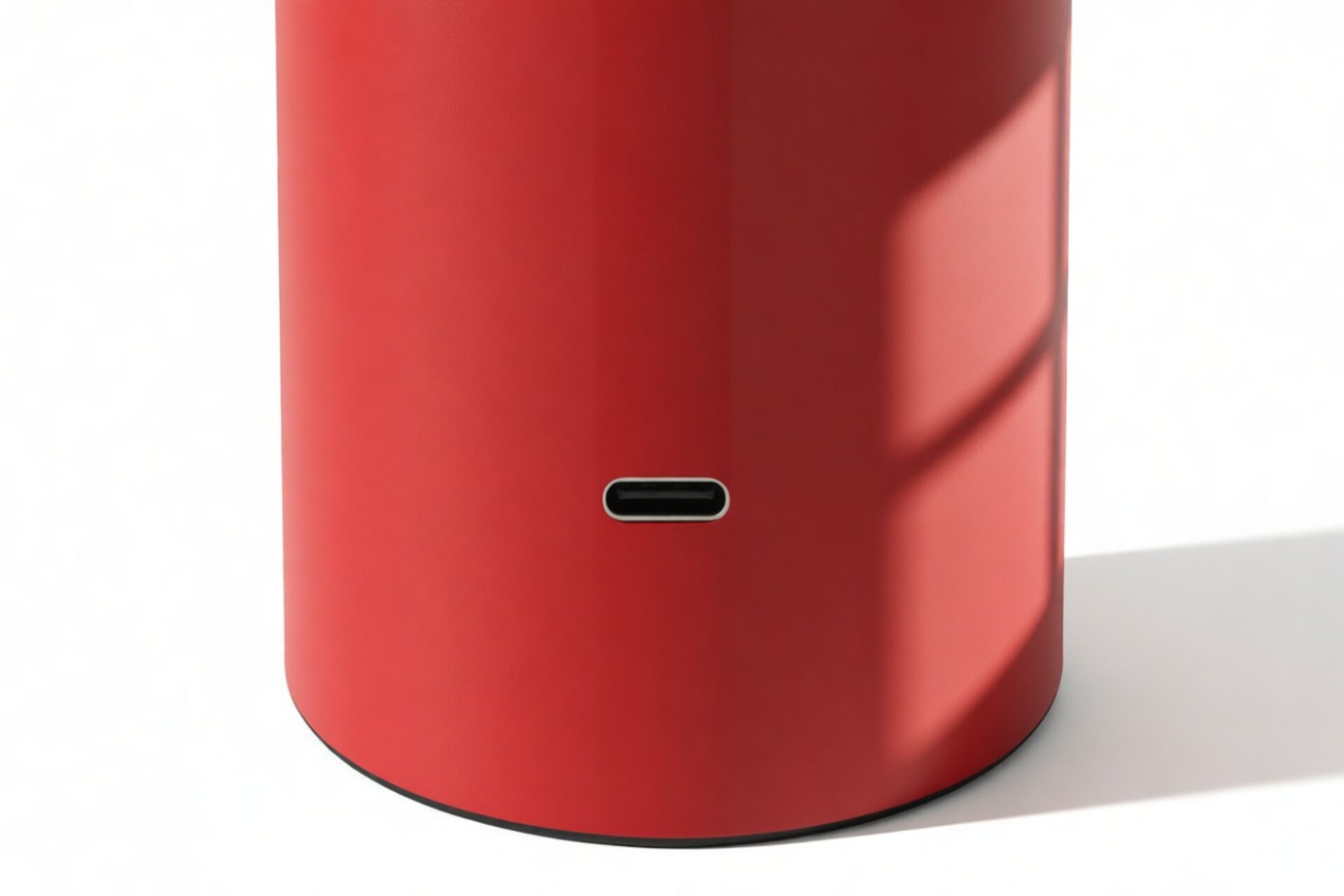Introducing the Bellhop Table Lamp in vibrant Red, a true masterpiece of elegant lighting. This lamp boasts impeccable craftsmanship and minimalist design, offering seamless charging for hassle-free illumination. Its adaptability and portable structure, combined with a rechargeable battery, make it a striking addition to any contemporary setting. Transition effortlessly between rooms with this sophisticated piece that brings sophistication and grace to your décor.