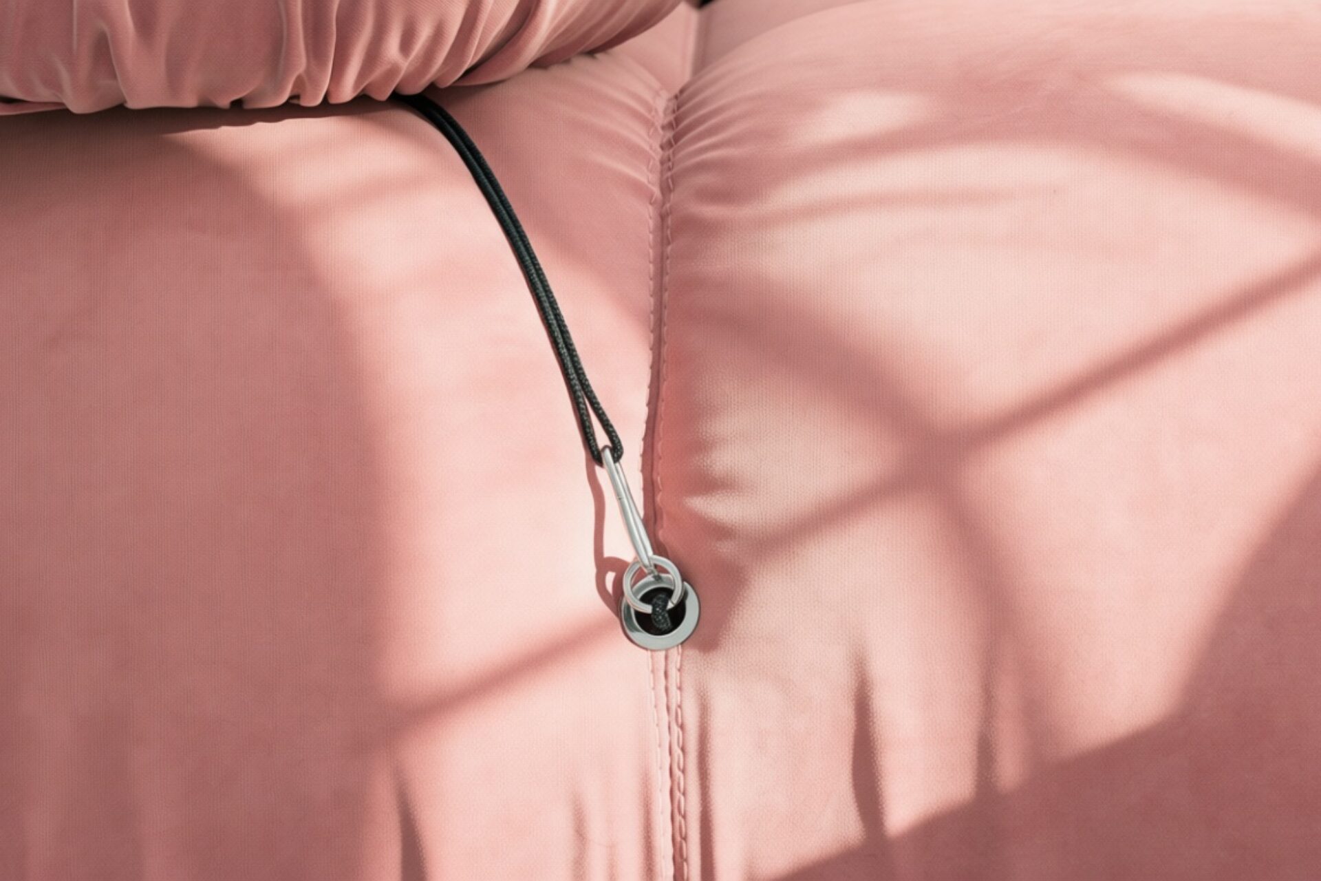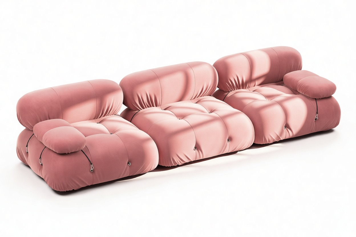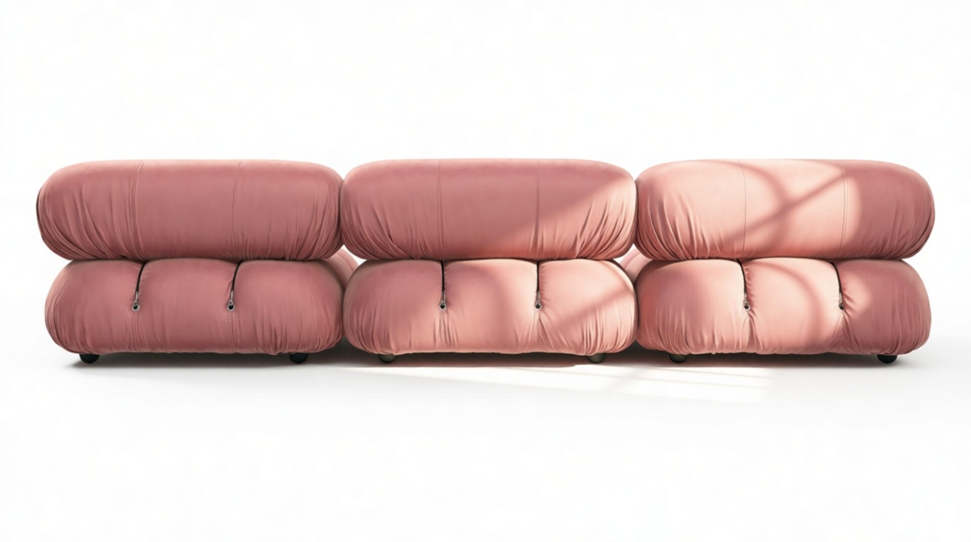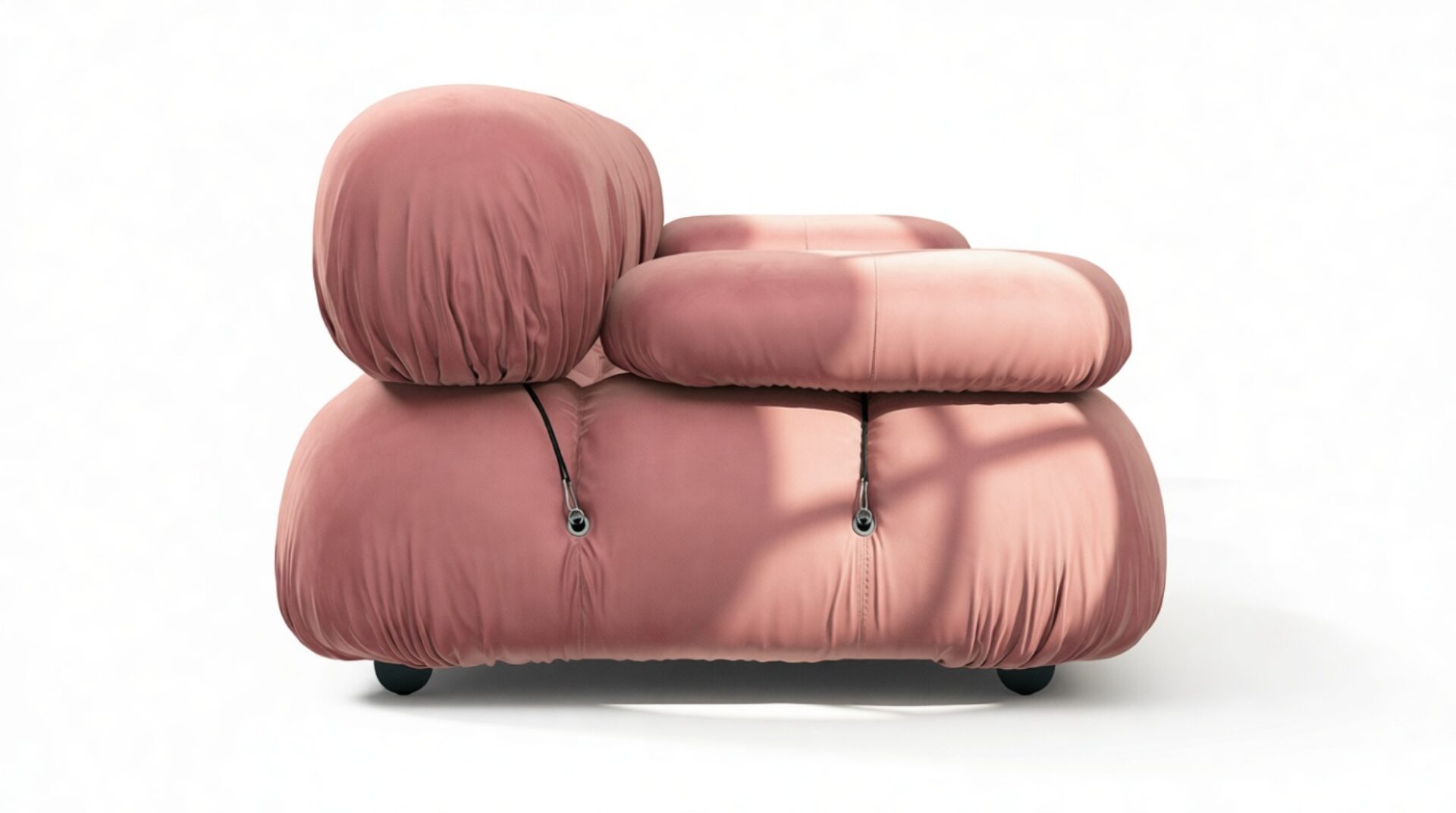 - Modular Instructions: Each section of the Mario Bellini Sofa is modular and is attached with string ties and carabiners. To assemble or rearrange your sofa, simply unclip the carabiners from one ring and attach to a corresponding ring on the module you wish to connect to.