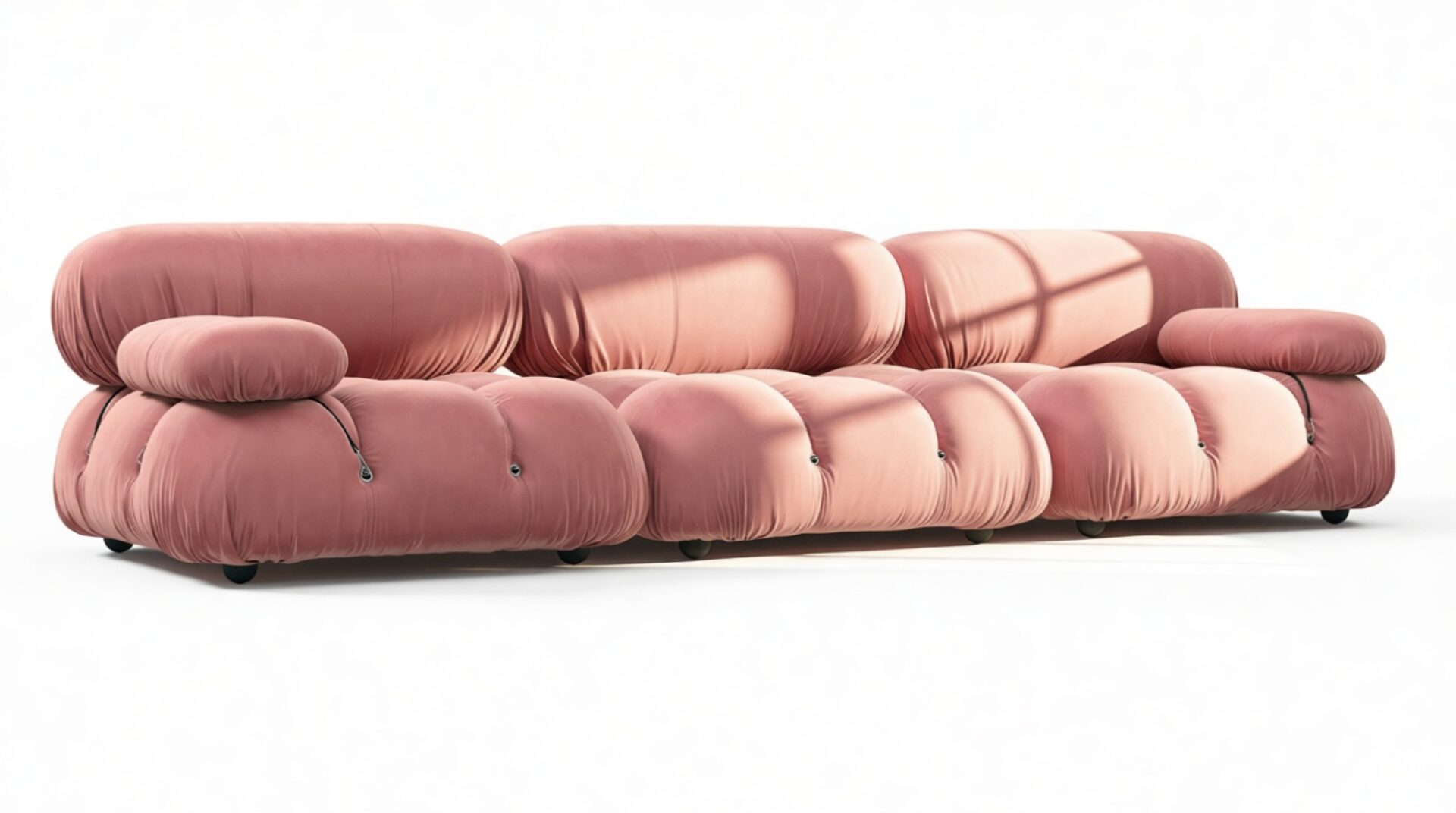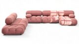 Step into the retro vibes of the 1970s with the Bellini sectional sofa, embracing a spirit of liberation and versatility. Crafted with a sturdy wooden frame and plush cold-pressed foam draped in Blush Pink Velvet, this modular piece offers customizable configurations. Its low-profile design exudes relaxed luxury, inviting you to unwind in style.
