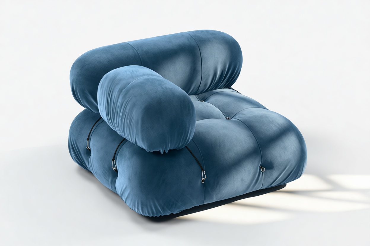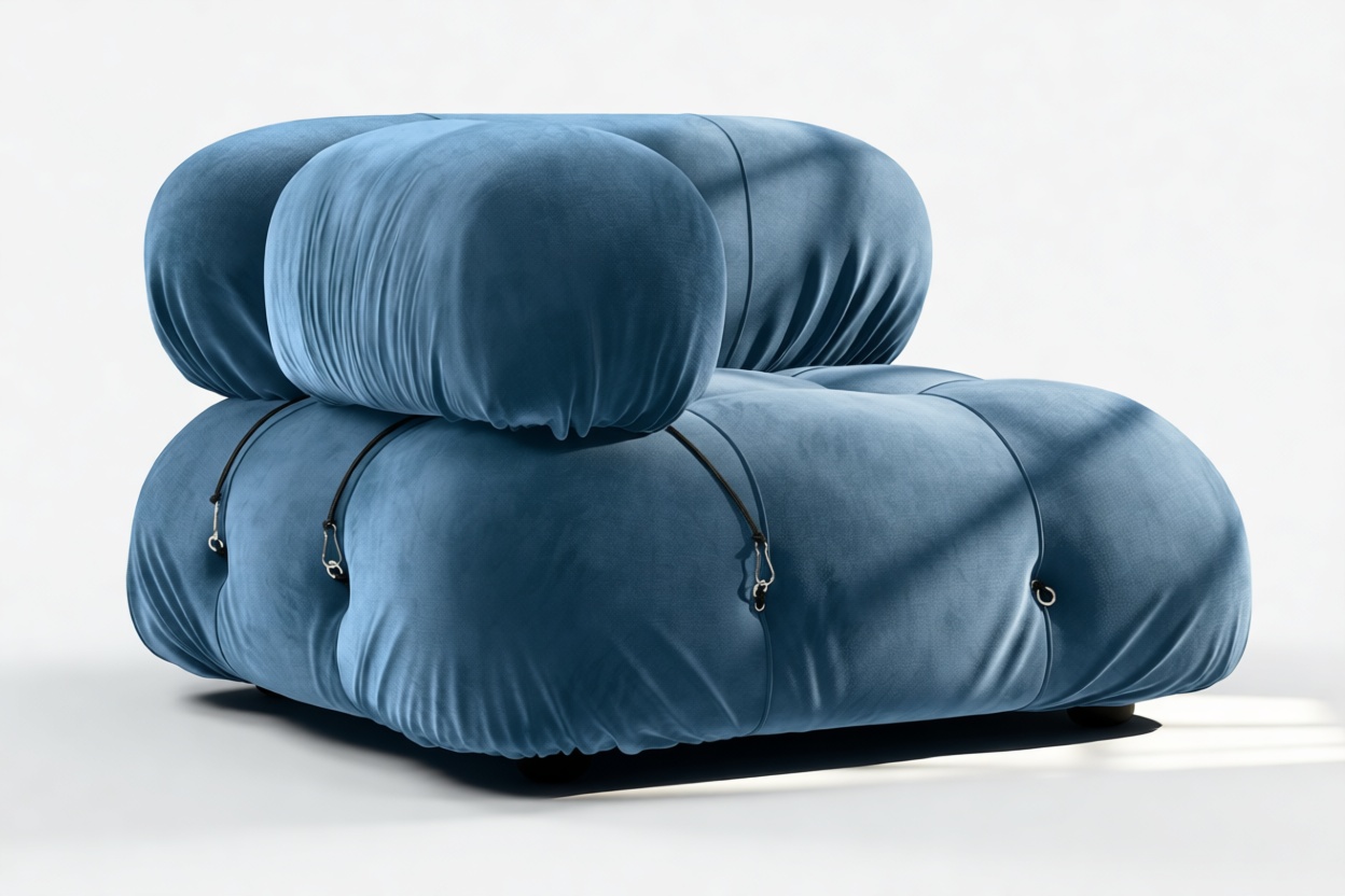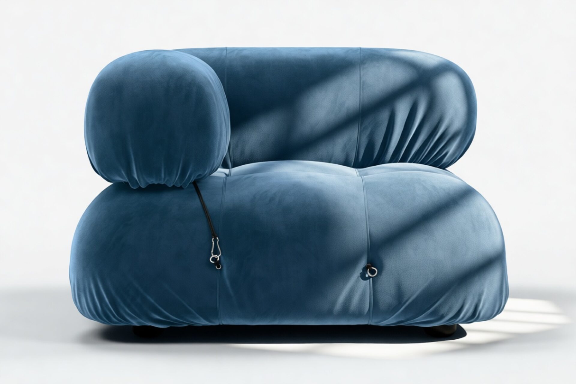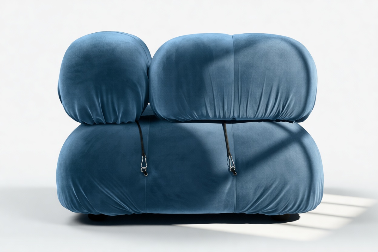 Step back in time to the groovy 70s with the Bellini sectional sofa, a celebration of carefree living. Defying tradition with its modular design, the Bellini brings liberation to your space. Embrace its Aegean Blue Velvet option for a touch of relaxed luxury. Crafted with a sturdy wooden frame and plush cold-pressed foam, the Bellini offers endless possibilities for customization, inviting you to unwind in style.