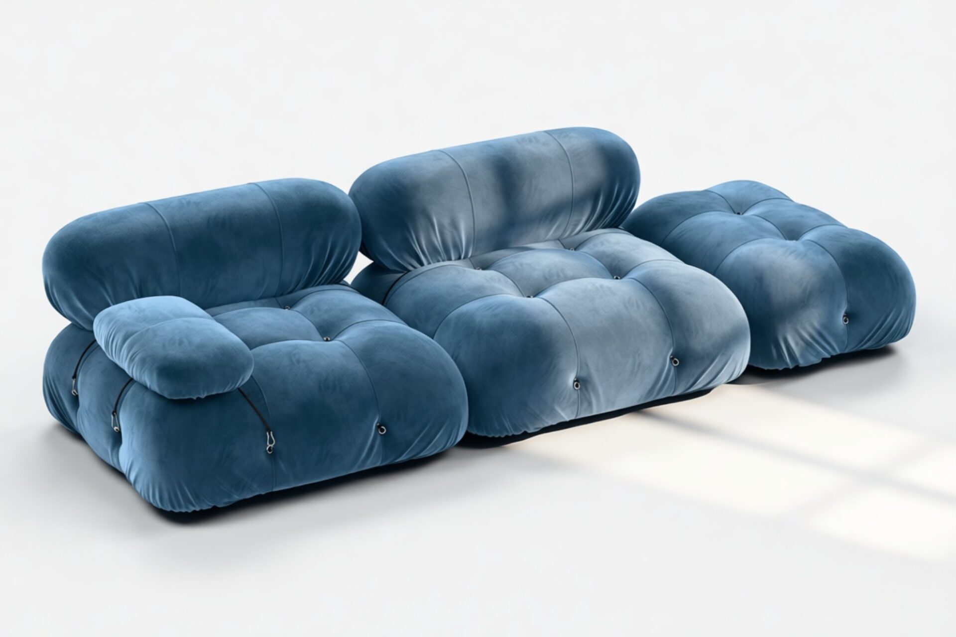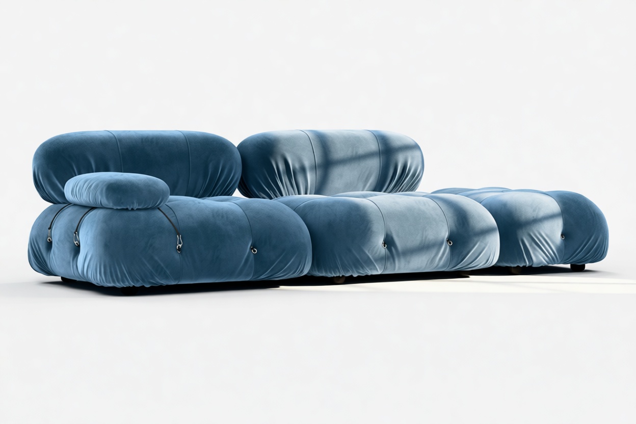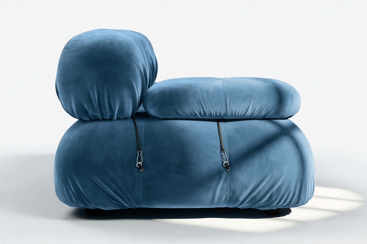 Embrace the retro charm of the 1970s with the Bellini sectional sofa in Aegean Blue Velvet, a tribute to a groovy era of carefree living. Its modular design brings a sense of liberation to your space, allowing for easy customization to match your style and mood. Crafted with a sturdy frame and plush foam, the Bellini exudes relaxed luxury while providing a cozy seating experience.