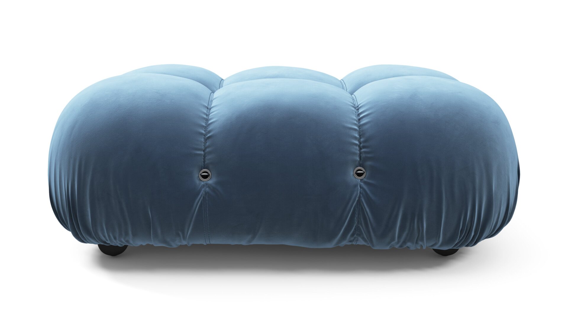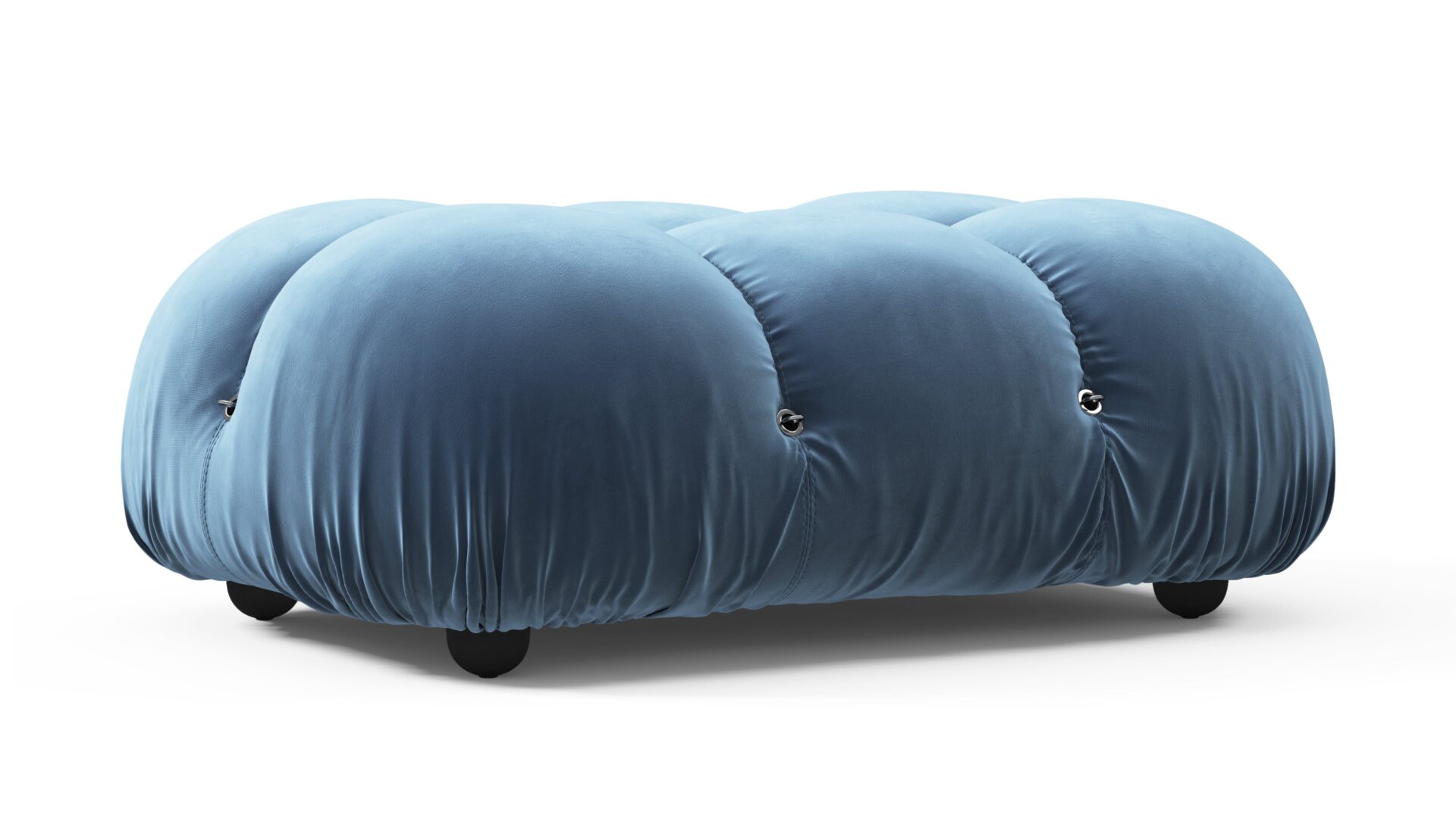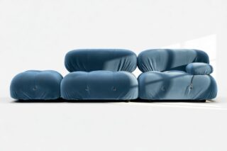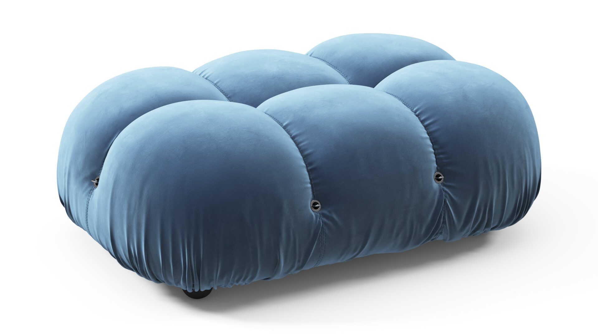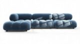 Step into the retro charm of the 1970s with the Bellini sectional sofa in Aegean Blue Velvet, exuding groovy vibes and carefree living. Its modular design allows easy customization, with tie rods and rings for effortless rearrangement. Crafted with a sturdy wooden frame and plush foam, this low-profile sofa radiates relaxed luxury, inviting you to unwind in style and comfort.