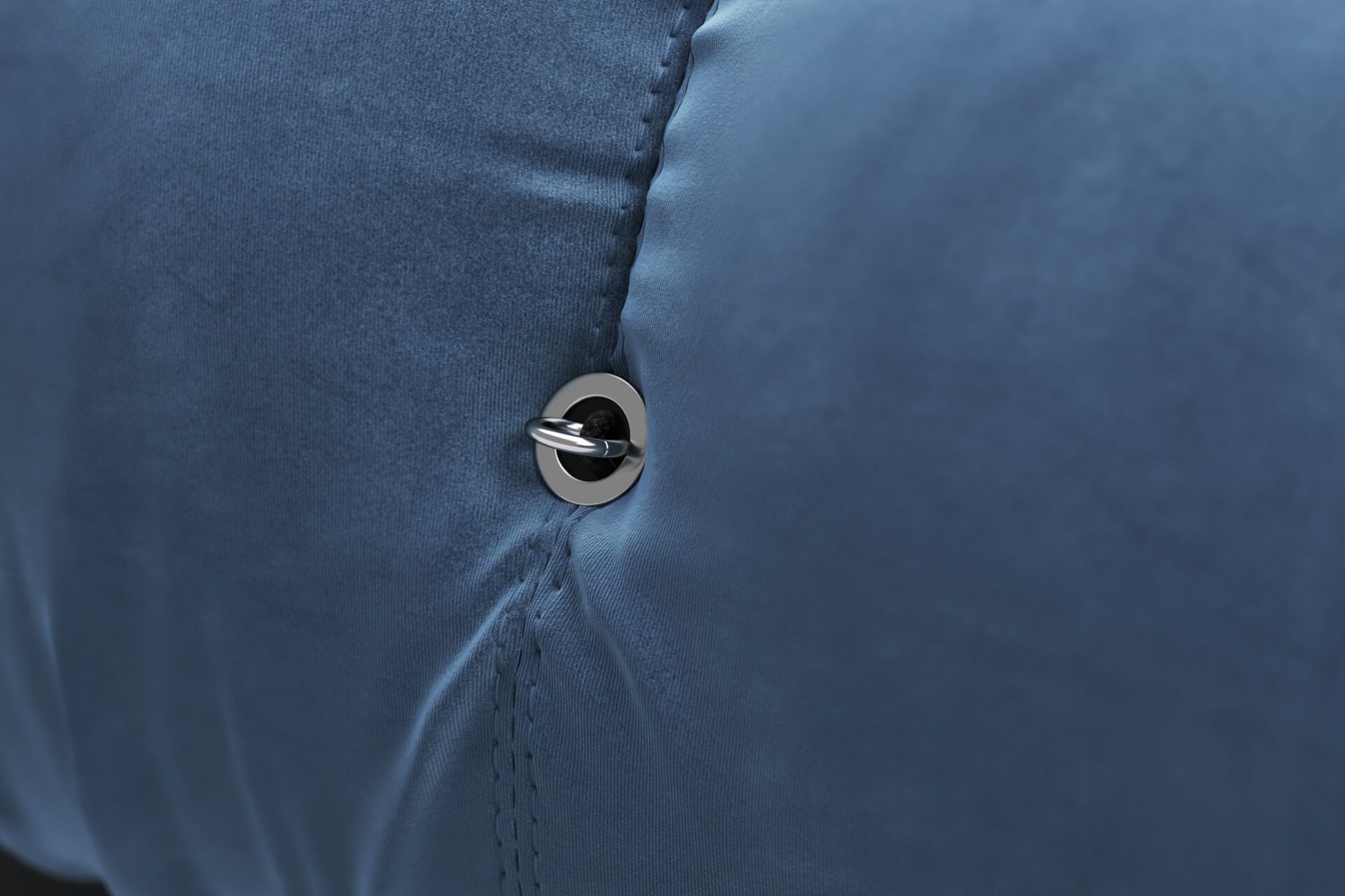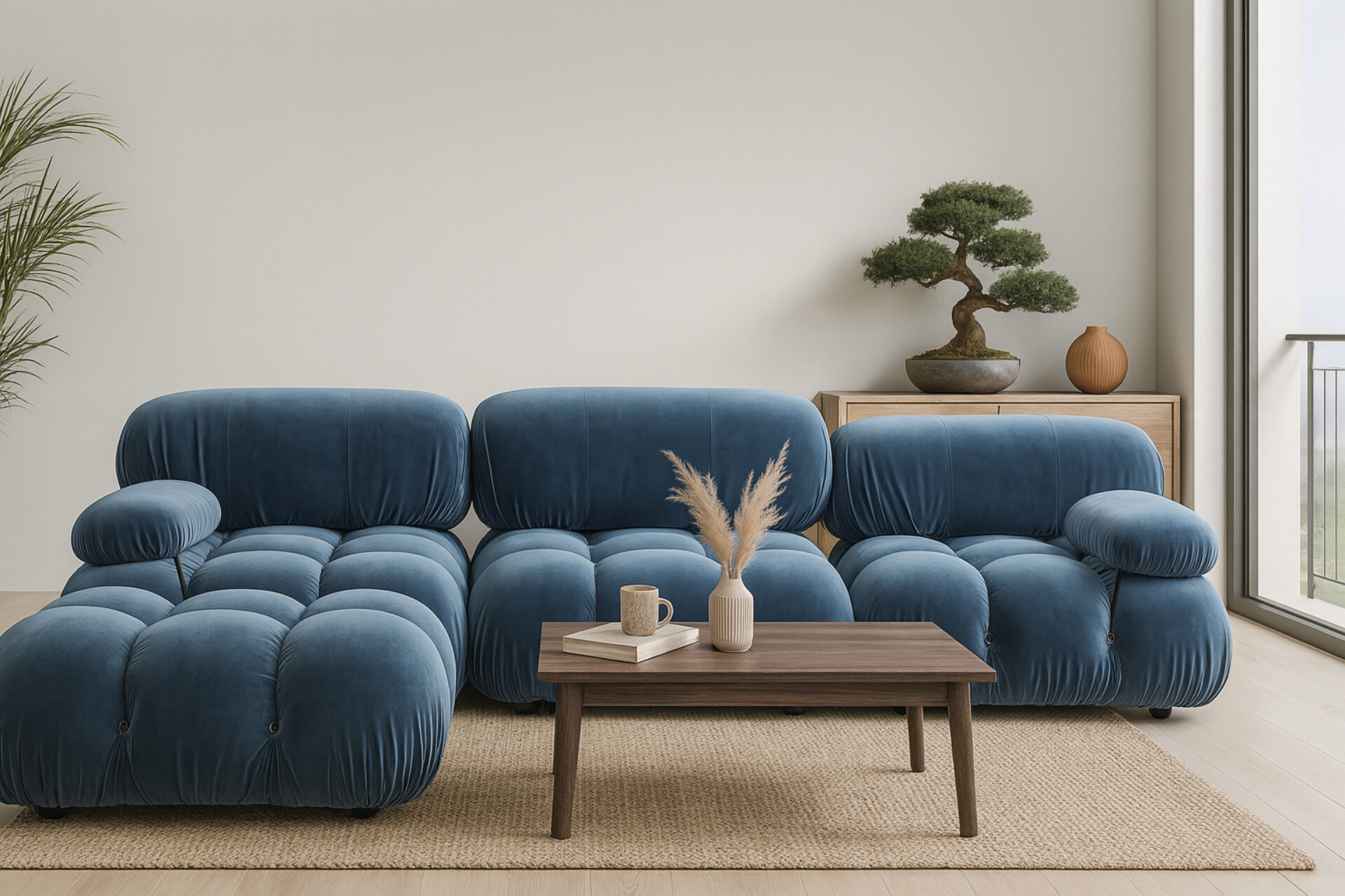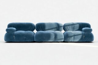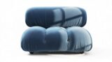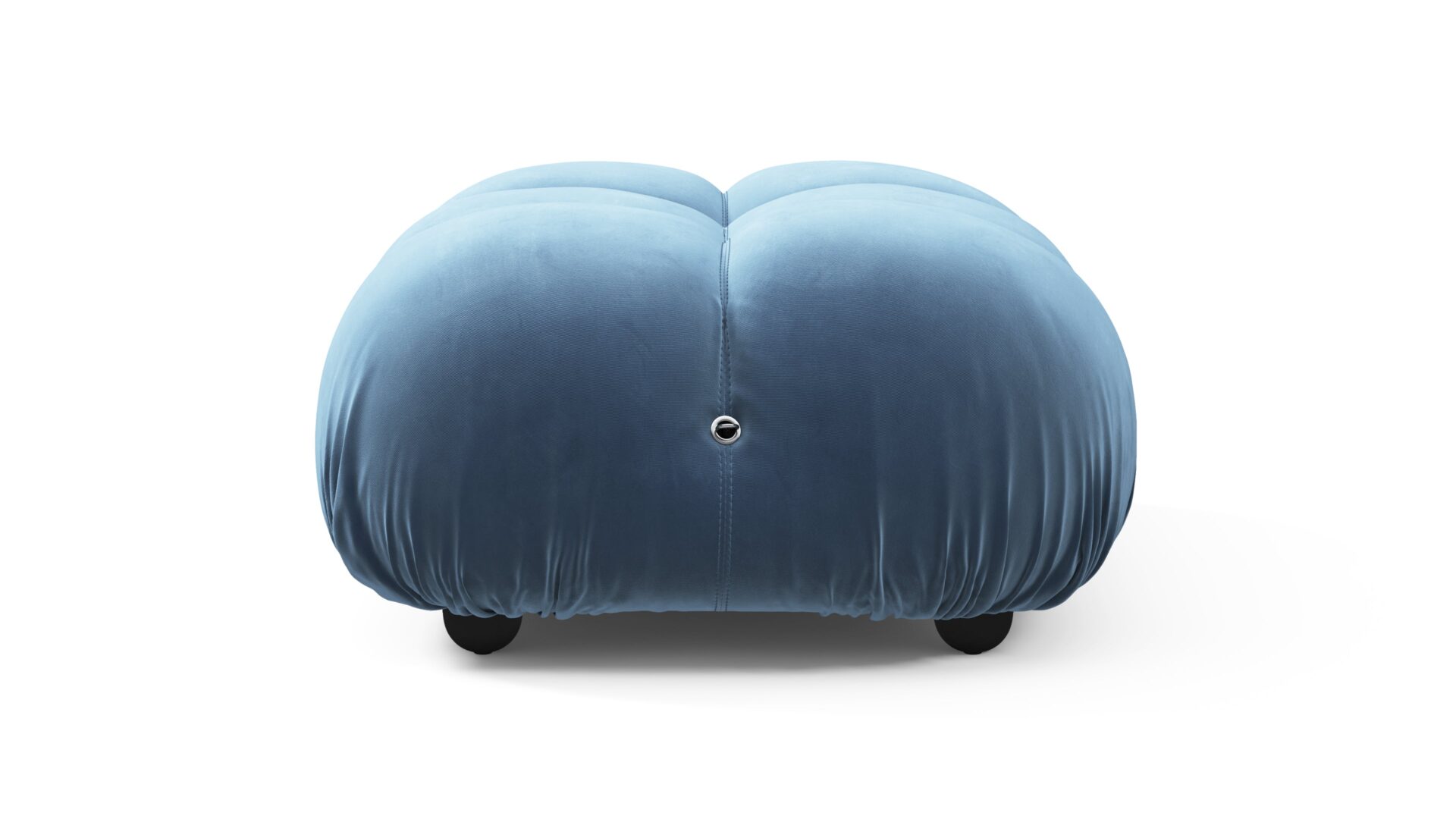 Step into the retro charm of the 1970s with the Bellini sectional sofa in Aegean Blue Velvet, exuding groovy vibes and carefree living. Its modular design allows easy customization, with tie rods and rings for effortless rearrangement. Crafted with a sturdy wooden frame and plush foam, this low-profile sofa radiates relaxed luxury, inviting you to unwind in style and comfort.