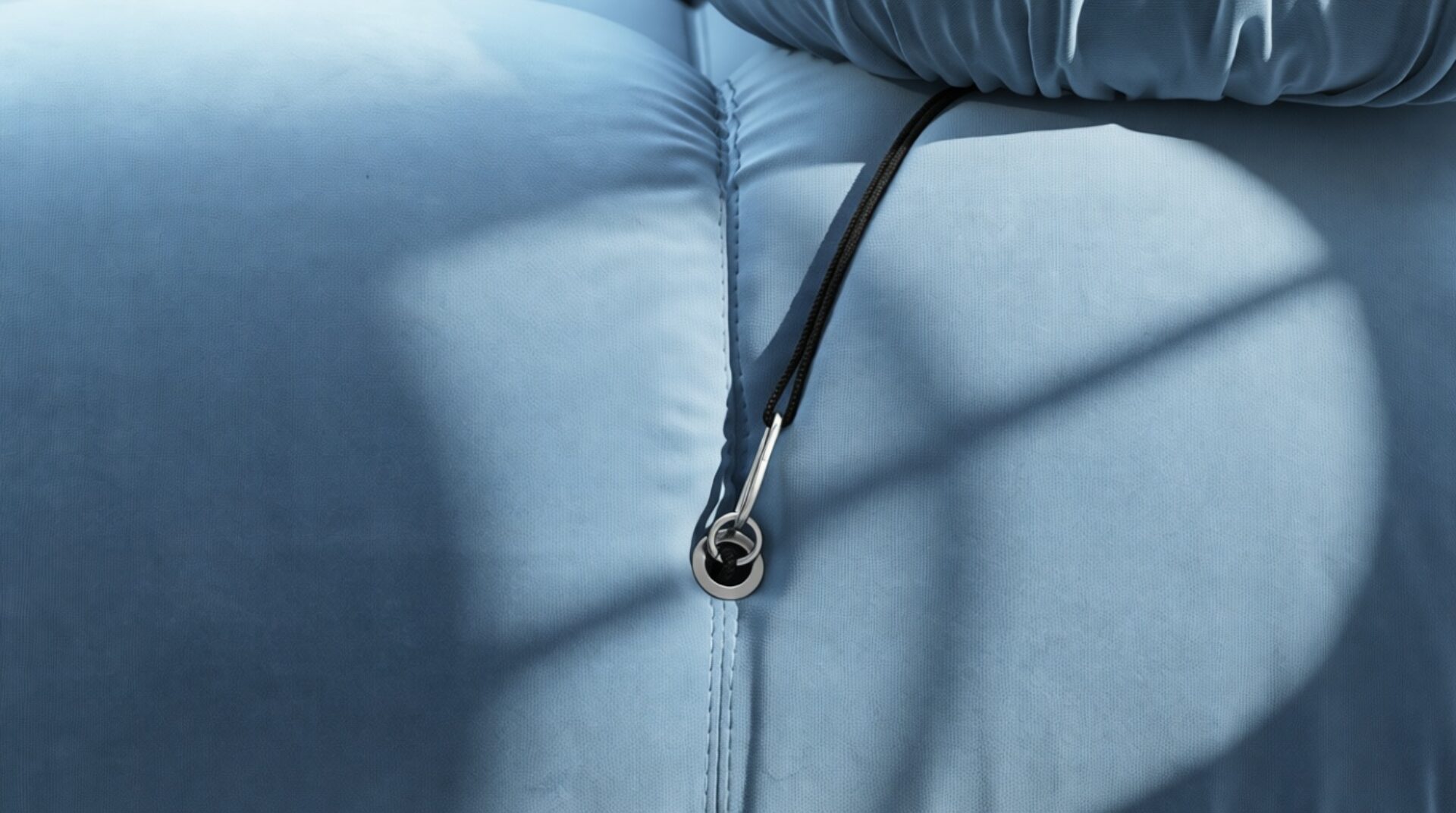 - Modular Instructions: Each section of the Mario Bellini Sofa is modular and is attached with string ties and carabiners. To assemble or rearrange your sofa, simply unclip the carabiners from one ring and attach to a corresponding ring on the module you wish to connect to.