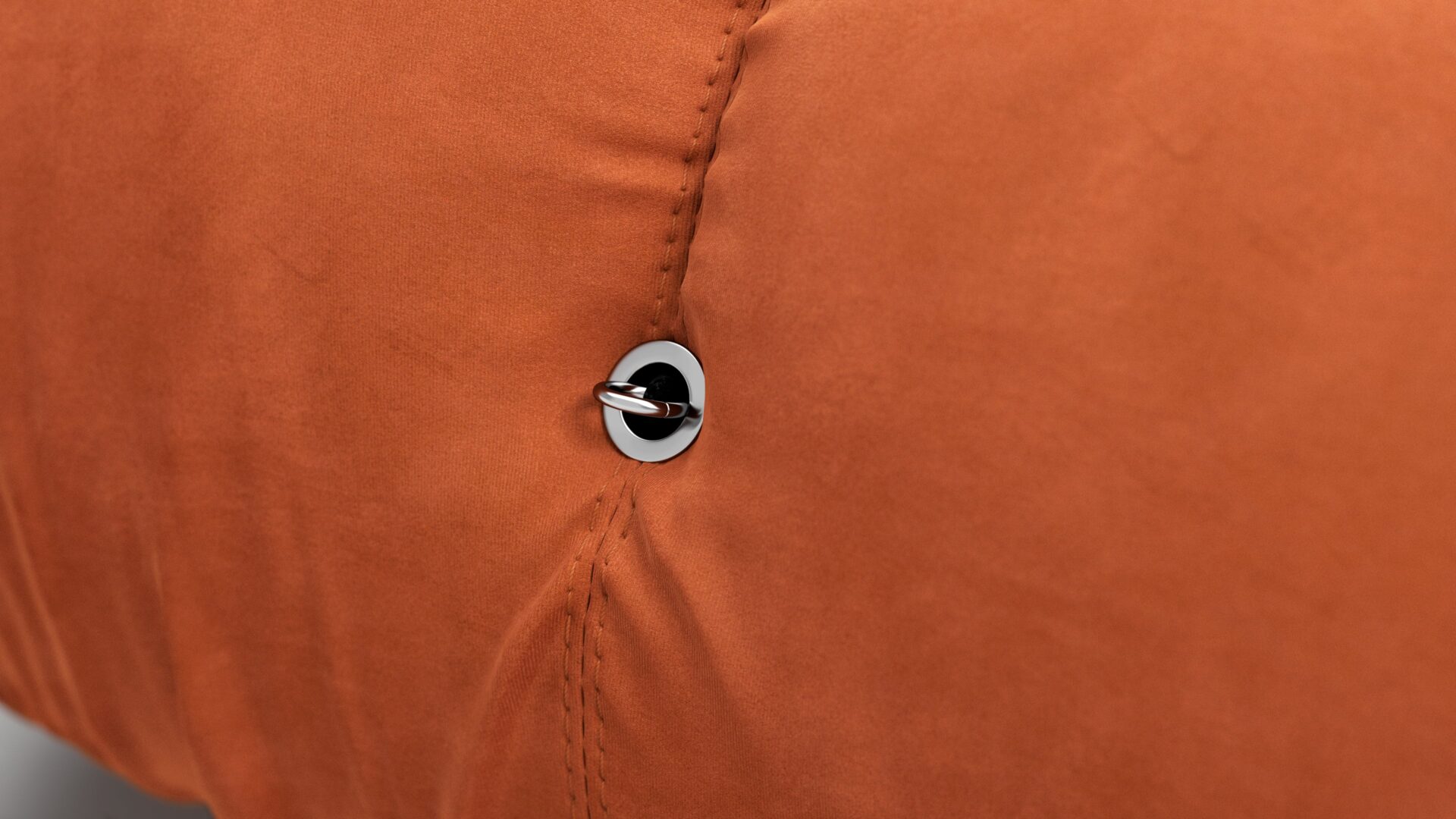 - Modular Instructions: Each section of the Mario Bellini Sofa is modular and is attached with string ties and carabiners. To assemble or rearrange your sofa, simply unclip the carabiners from one ring and attach to a corresponding ring on the module you wish to connect to.