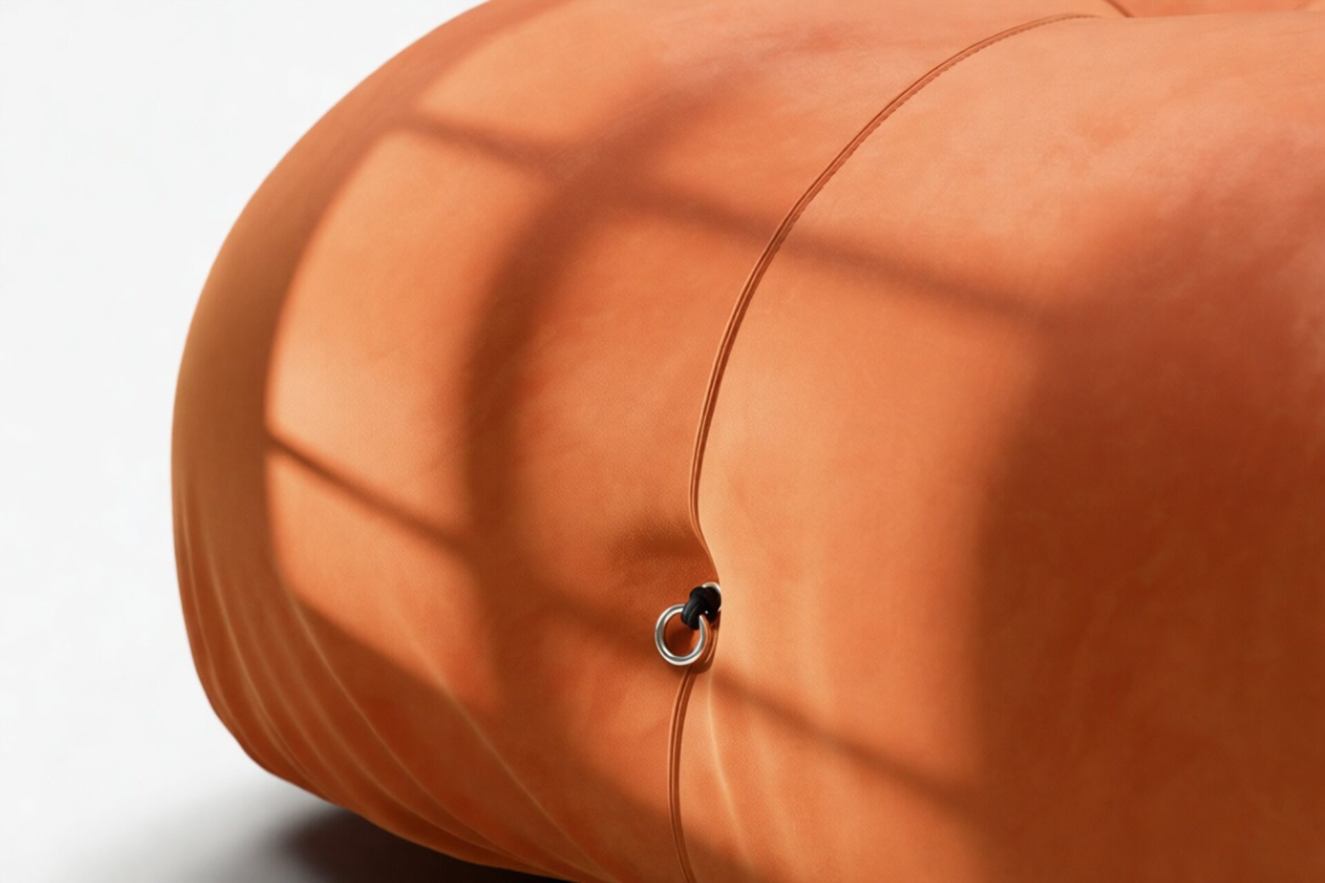 - Modular Instructions: Each section of the Mario Bellini Sofa is modular and is attached with string ties and carabiners. To assemble or rearrange your sofa, simply unclip the carabiners from one ring and attach to a corresponding ring on the module you wish to connect to.