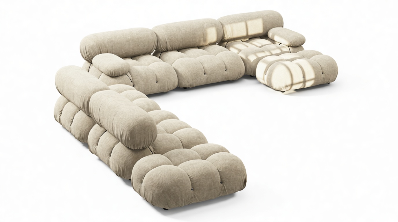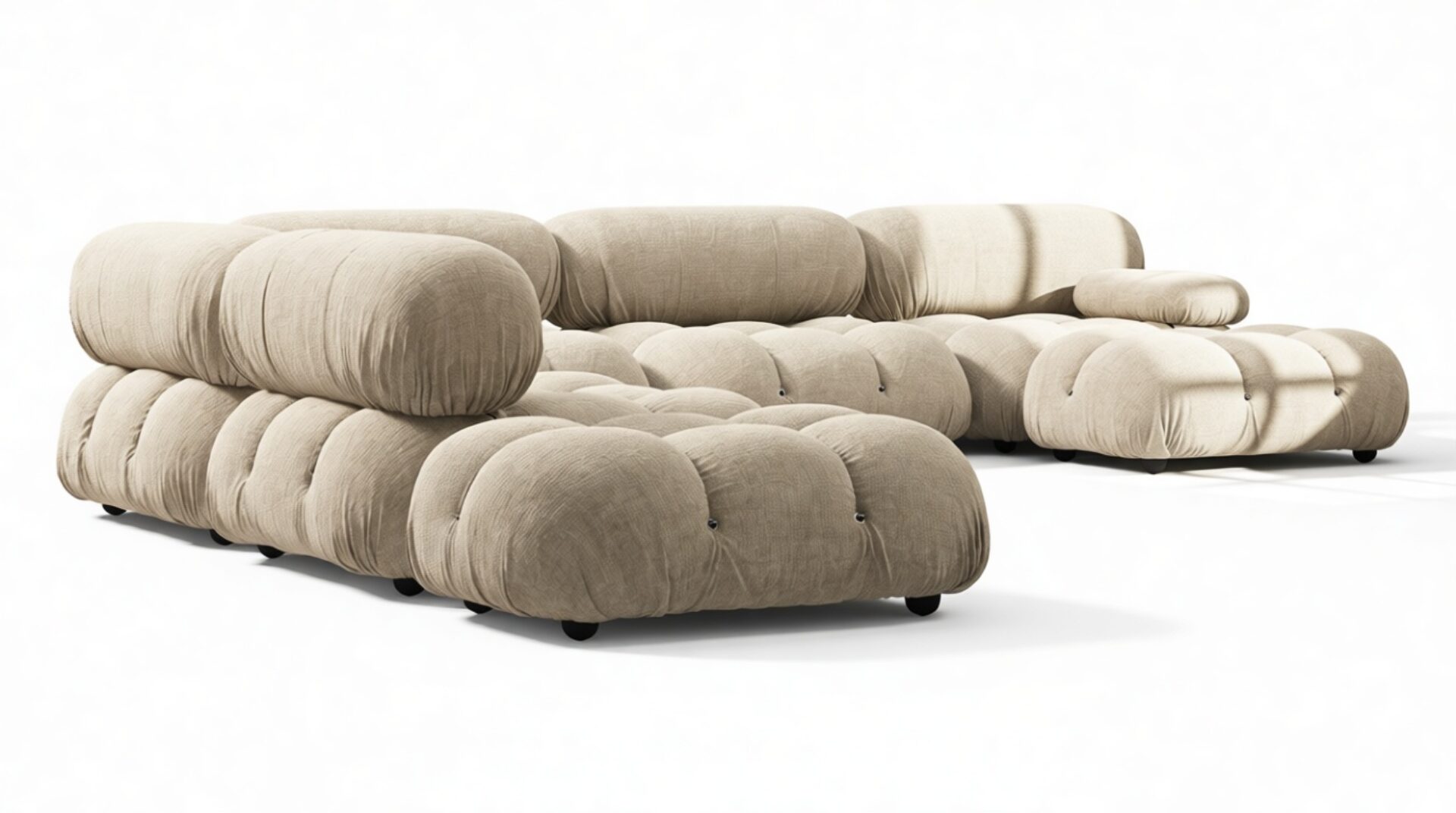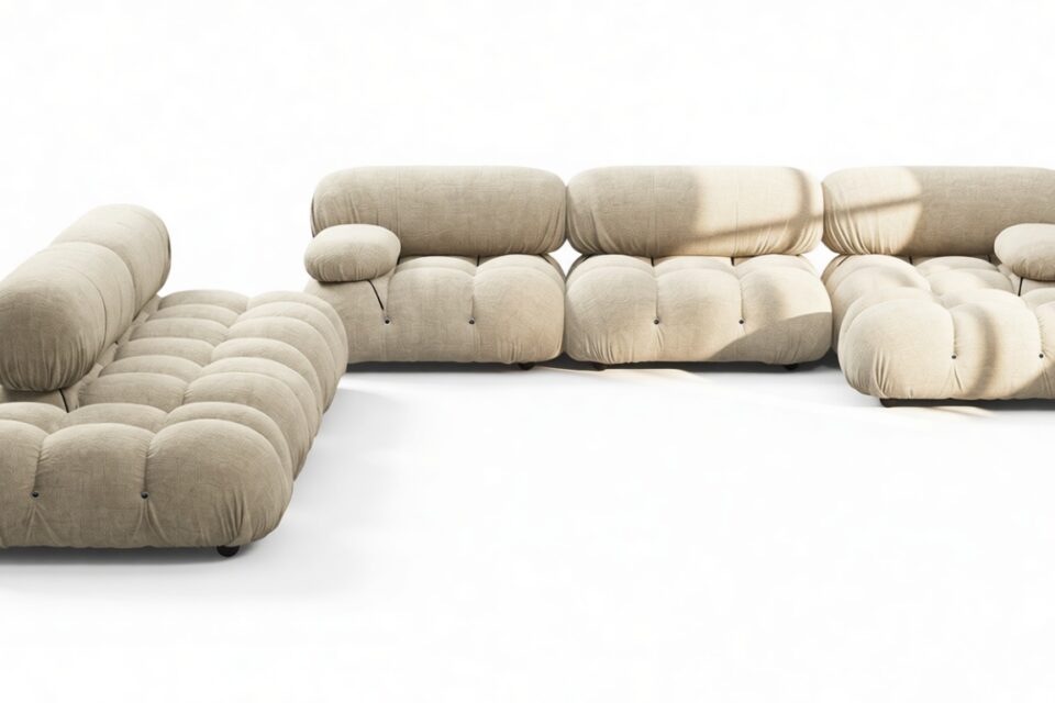 Embodying the essence of the 1970s era, the Bellini Sectional Sofa redefines the concept of open-plan living, offering a refreshing departure from traditional, bulky furniture. This contemporary sectional introduces endless possibilities for customizing your living space to match your style, ambiance, and needs – all without the hassle of full-scale redecoration.