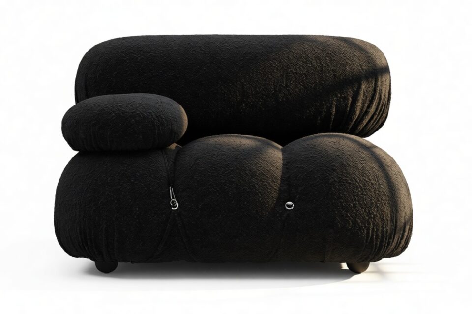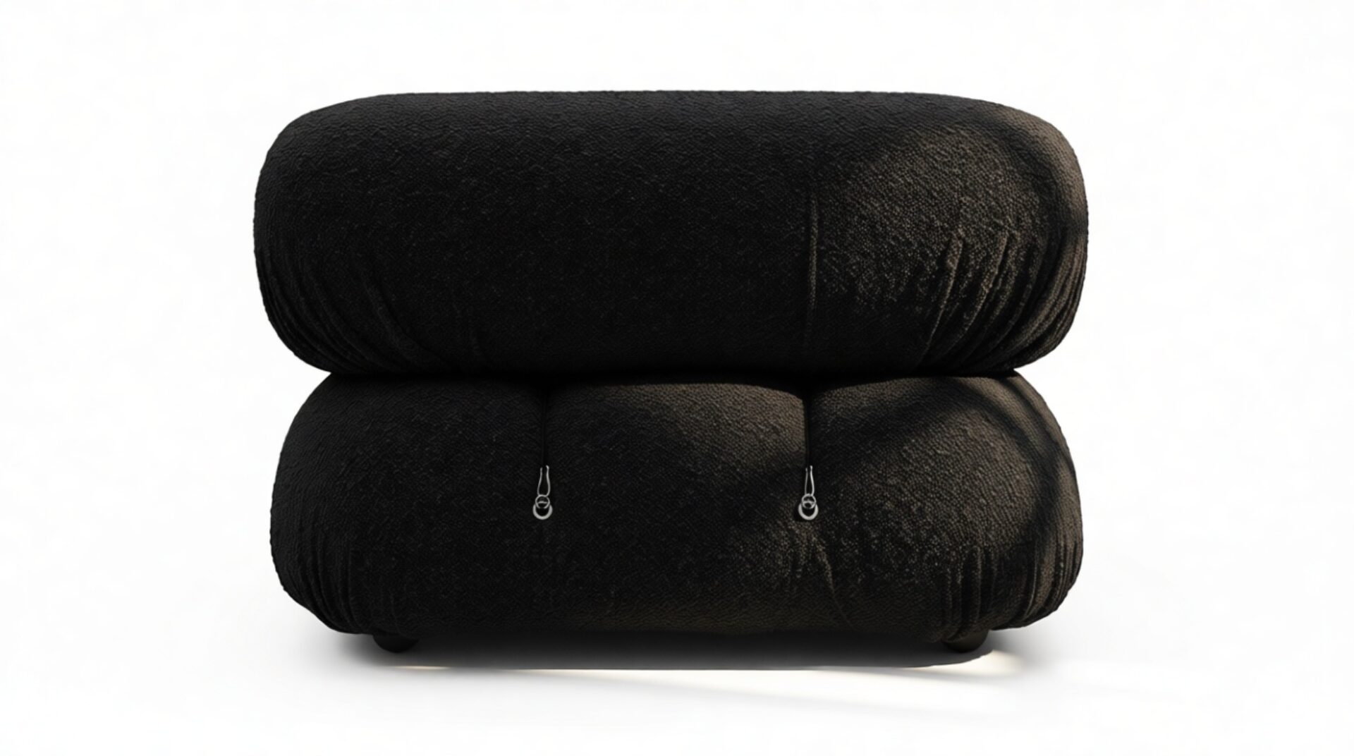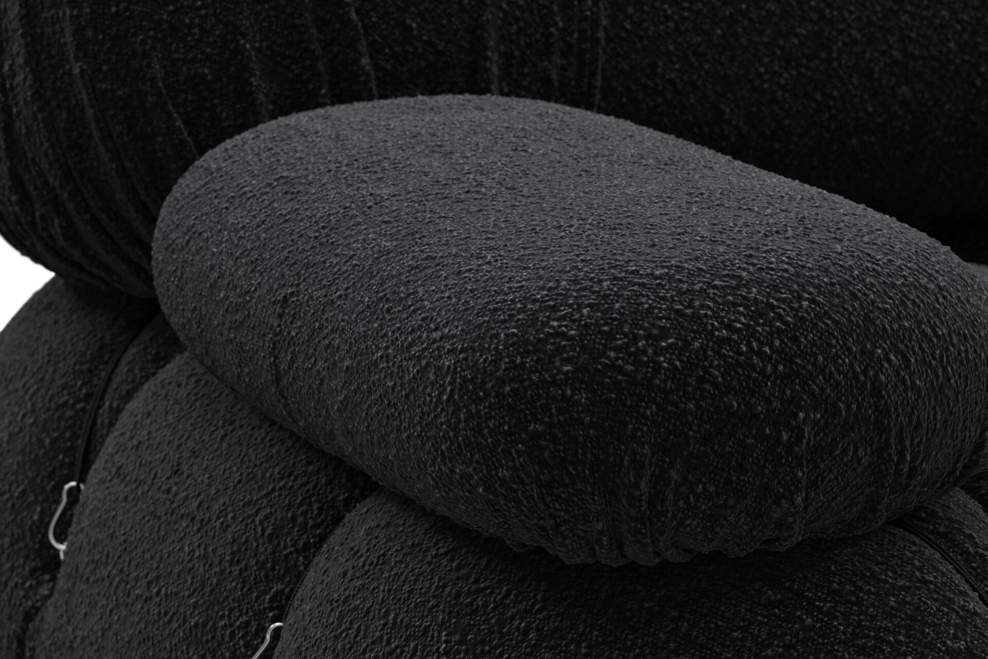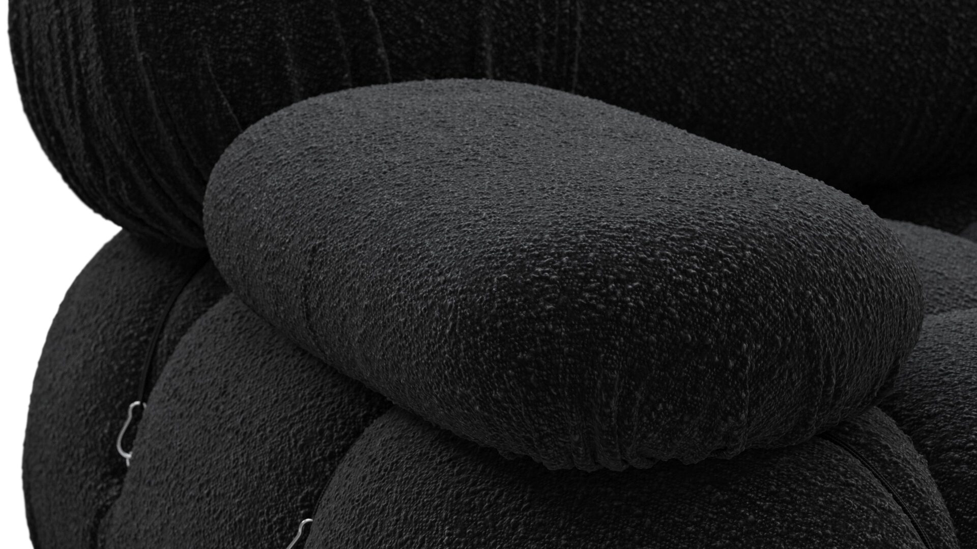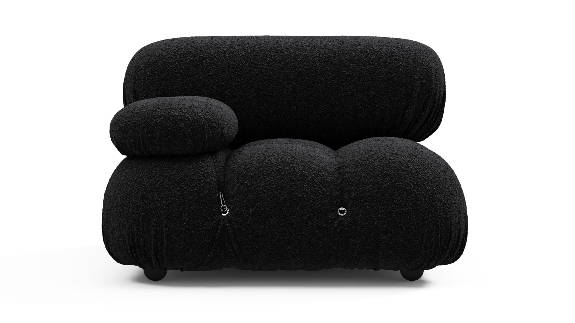 Introduce a touch of 1970s nostalgia with the Bellini sectional sofa, a modern interpretation of retro-cool vibes and freewheeling spirit. Breaking away from traditional bulkiness, the Bellini brings a sense of liberation to your space. Its modular construction allows effortless customization to suit your room layout, style, and mood without the hassle of a complete overhaul. Embraced by a new wave of furniture aficionados, the Bellini stands out for its freeing essence and versatility. With tie rods and rings, this sectional can be easily separated and reconfigured, empowering you to tailor your sofa to match your evolving tastes. Crafted with a sturdy wooden frame and plush cold-pressed foam wrapped in soft Black Boucle fabric, the Bellini's sleek profile embodies casual opulence, with each welcoming cushion tempting you to unwind in style. Lavish in comfort and style with the Bellini's sectional design, allowing you to create a bespoke sofa that perfectly complements your living space. The elegant contours of each meticulously crafted cushion offer sumptuous and snug seating, delivering unmatched style and comfort. Experience the inviting curves and ample proportions of the Bellini, enticing you to recline and relax. Its modular arrangement offers limitless configurations, enabling you to experiment with various setups. Blending relaxation and socializing, the Bellini seamlessly integrates into any environment, adapting to diverse needs. Cherished for its adaptability, the Bellini is a timeless favorite customizable to suit any setting and style, effortlessly transitioning from spacious and airy to cozy and intimate.