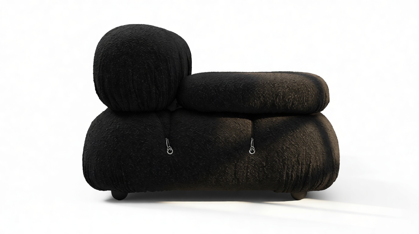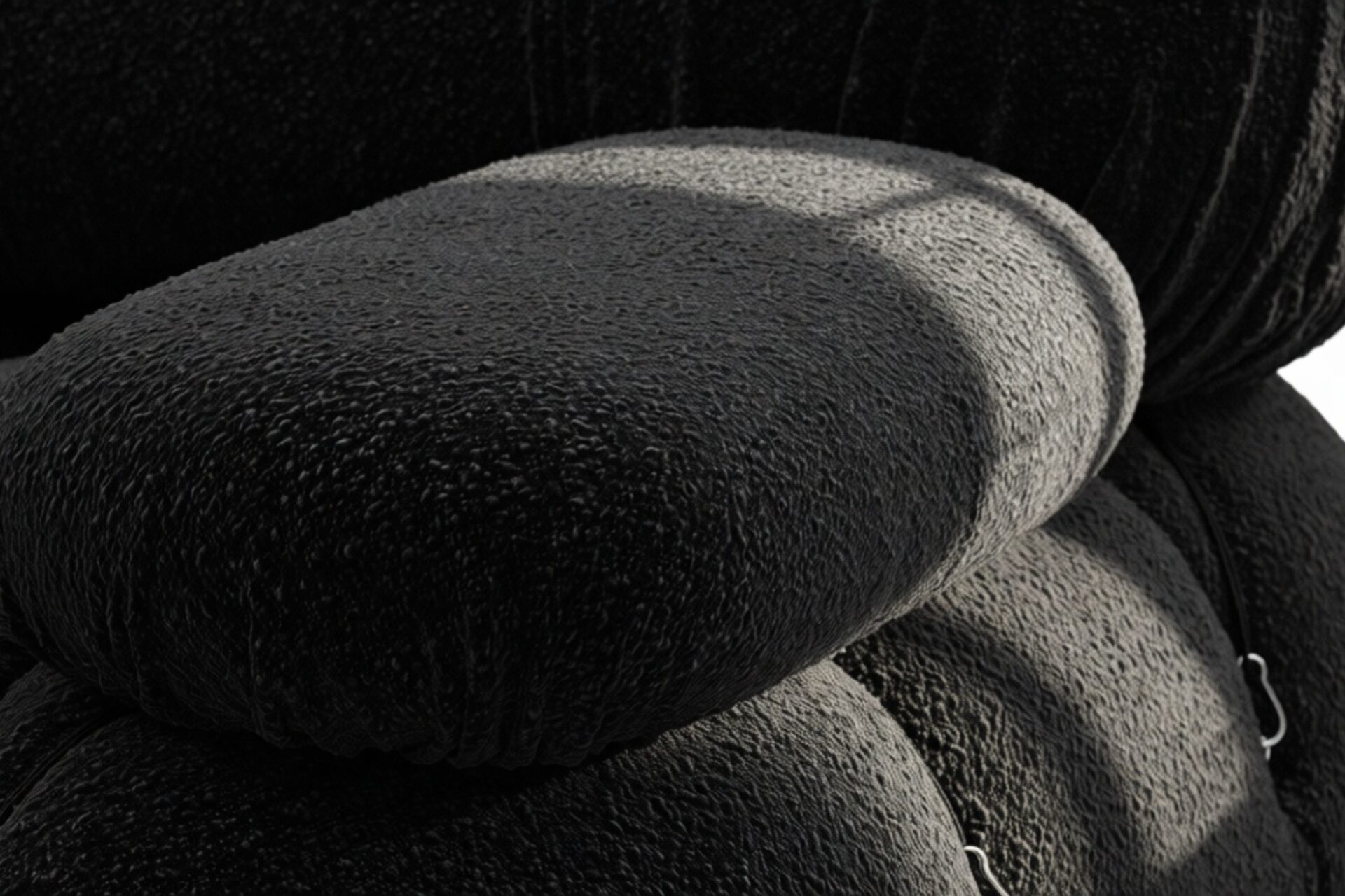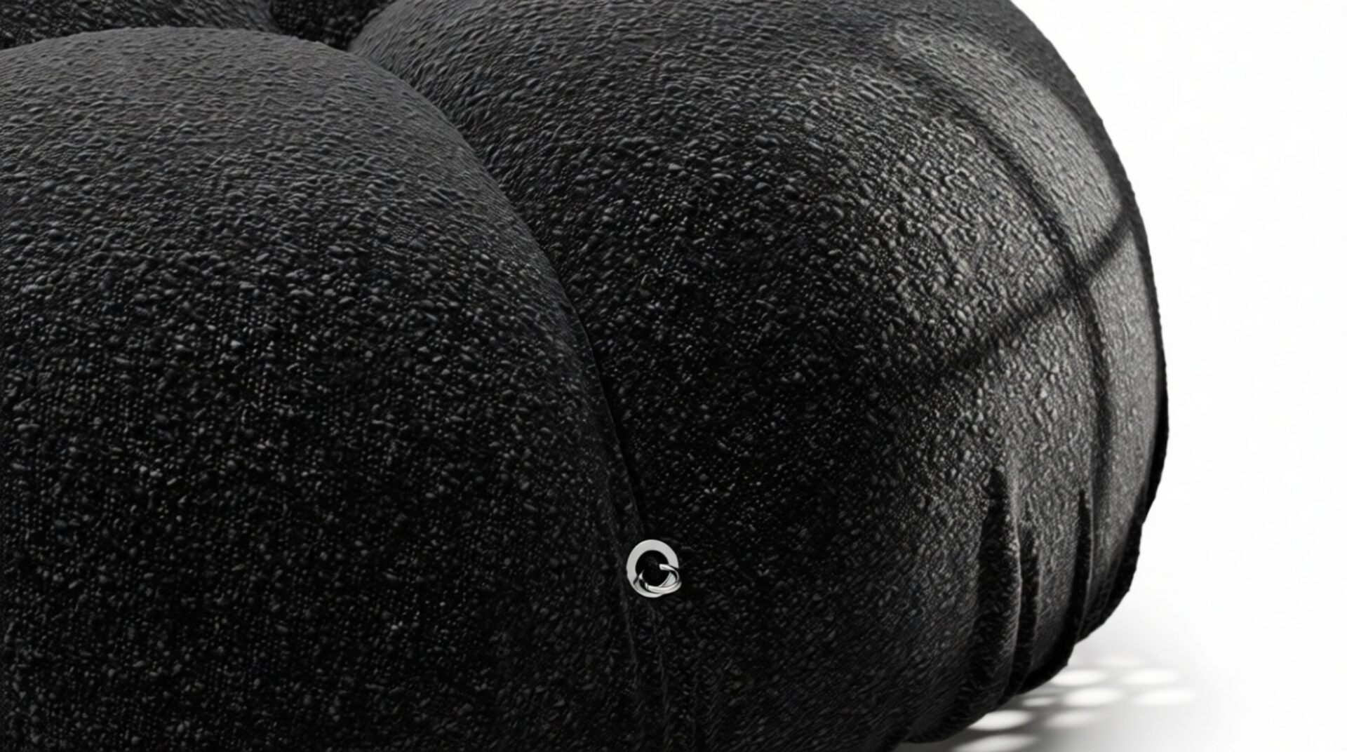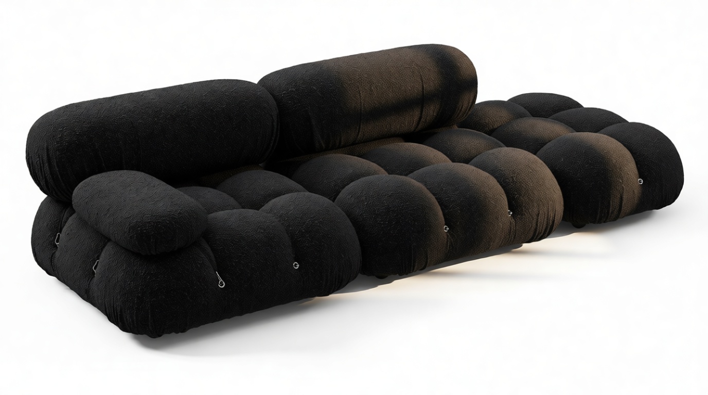 Step back in time to the groovy 1970s with the Bellini sectional sofa, celebrating an era of freedom and vibrant vibes. Defying traditional bulkiness, the Bellini offers a liberating touch to your living space with its modular design, allowing effortless customization to suit your room layout, style, and mood without a full revamp. Embraced by a new wave of furniture enthusiasts, the Bellini is adored for its liberating essence and versatility. With its tie rods and rings, this adaptable sectional can be effortlessly separated and rearranged to match your evolving tastes. Constructed with a sturdy wooden frame and luxurious cold-pressed foam wrapped in soft Black Boucle fabric, the Bellini's low-profile silhouette exudes a blend of comfort and luxury. Each inviting cushion beckons you to relax in style, promising a cozy seating experience. Experience the endless configurations offered by the Bellini's sectional layout, inviting you to unwind and enjoy its generous proportions. This versatile piece effortlessly fits into any setting, embodying a perfect blend of relaxation and socializing. Cherished for its adaptability, the Bellini remains a timeless favorite that seamlessly integrates into various spaces, from expansive and airy to cozy and snug, offering endless possibilities for customization.