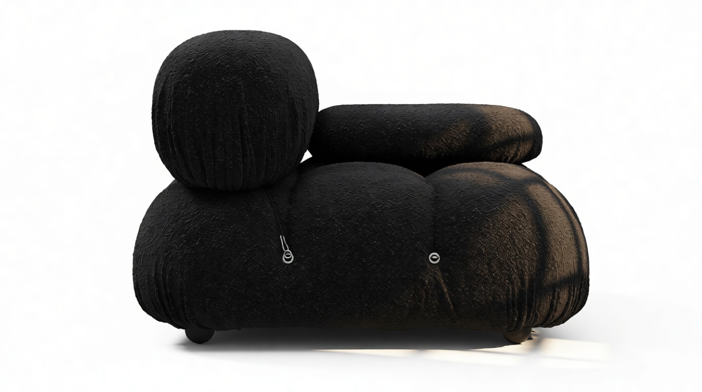 - Modular Instructions: Each section of the Mario Bellini Sofa is modular and is attached with string ties and carabiners. To assemble or rearrange your sofa, simply unclip the carabiners from one ring and attach to a corresponding ring on the module you wish to connect to.