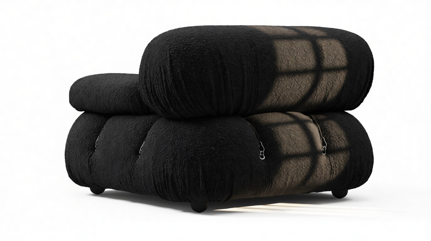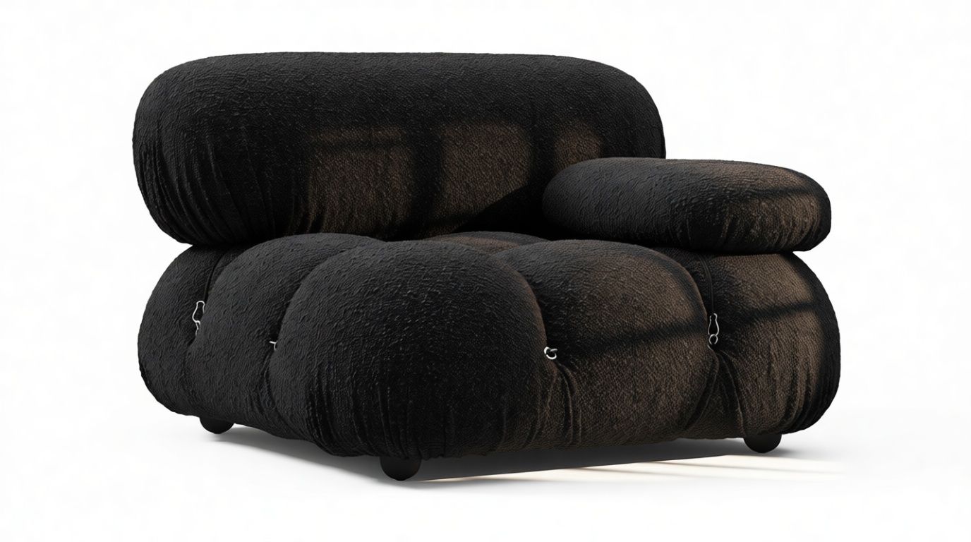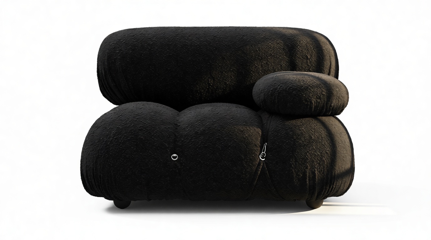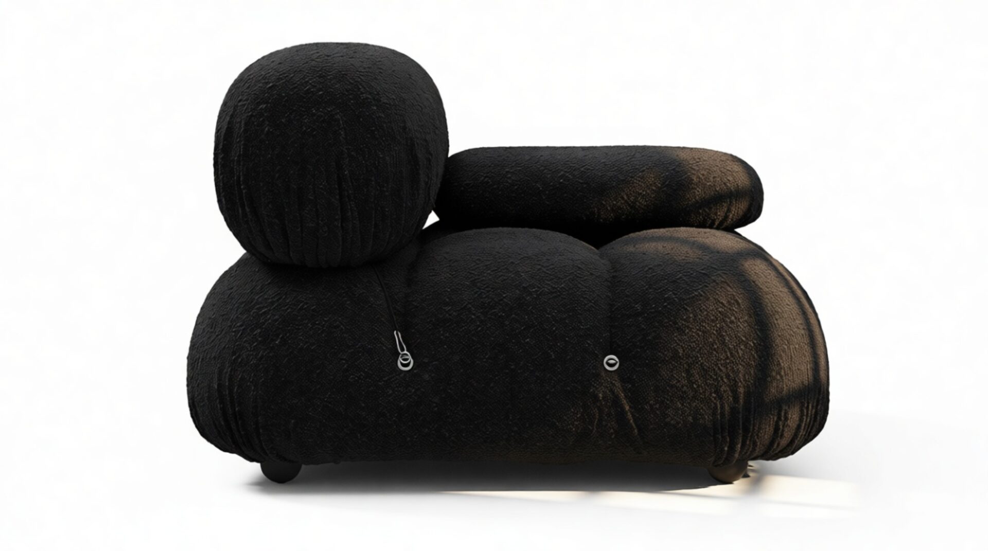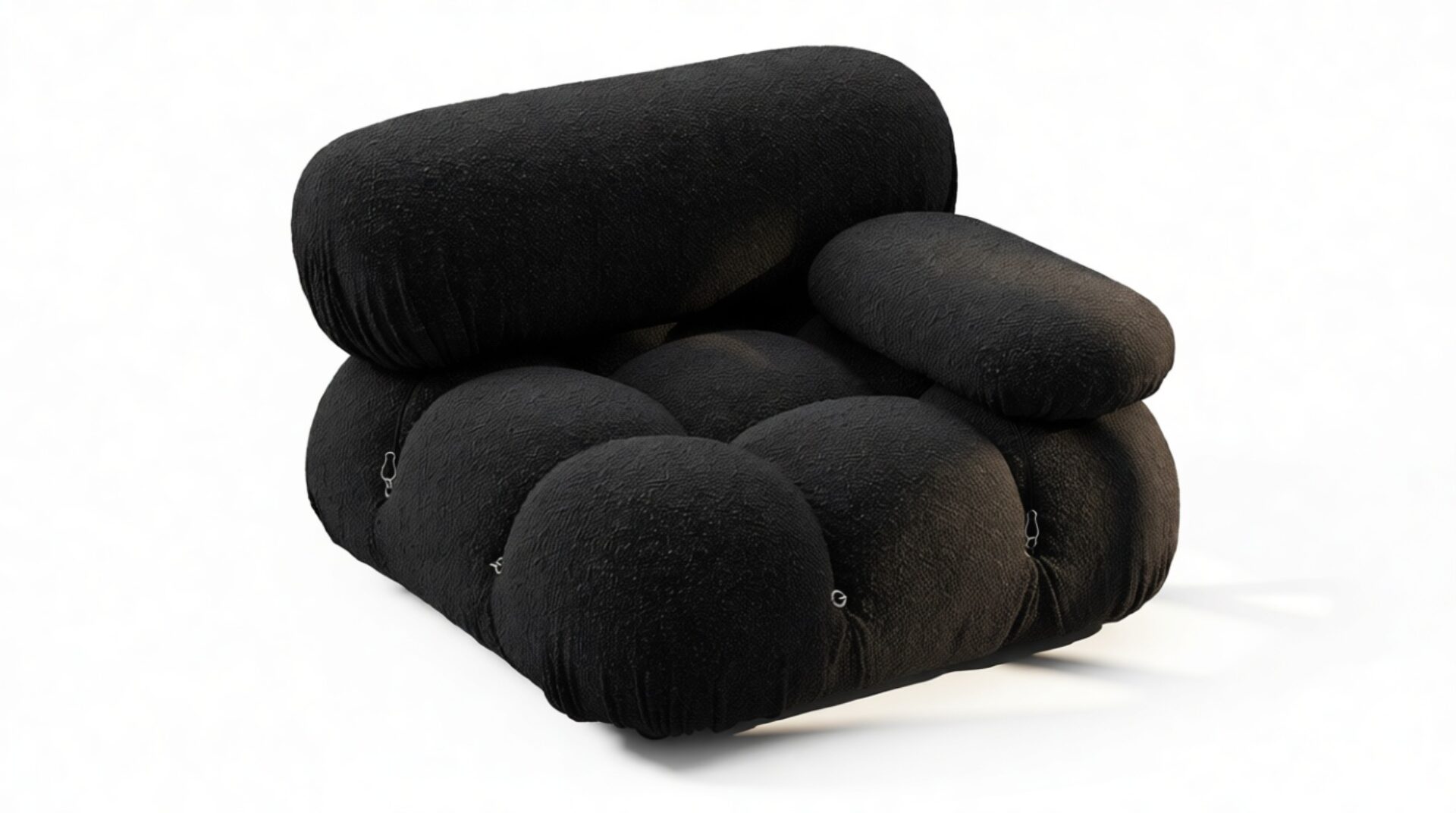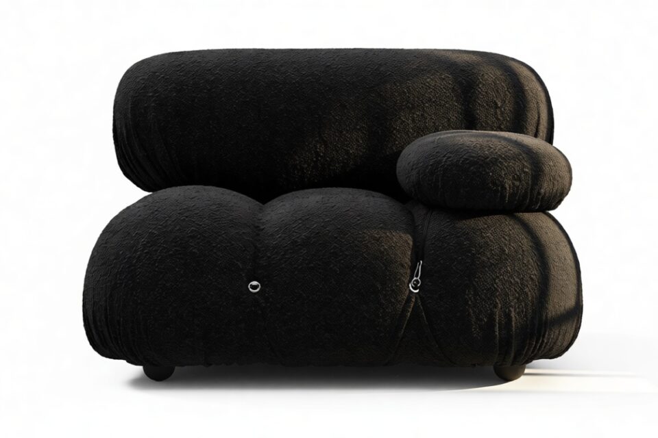 Step back in time to the 1970s with the Bellini sectional sofa, exuding groovy vibes and carefree living. Innovative and modular, the Bellini brings a liberating essence to your space. Its versatile design lets you easily customize it to match your room layout and mood. Crafted with a solid wooden frame, plush cold-pressed foam, and enveloped in Black Boucle fabric, the Bellini showcases relaxed luxury while providing a comfortable and stylish seating experience. This beloved piece, characterized by its tie rods and rings, allows effortless rearrangement, ensuring it adapts to your evolving preferences. Embrace the iconic Bellini for endless configurations and a timeless style that effortlessly complements any setting.