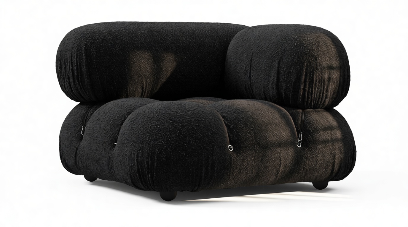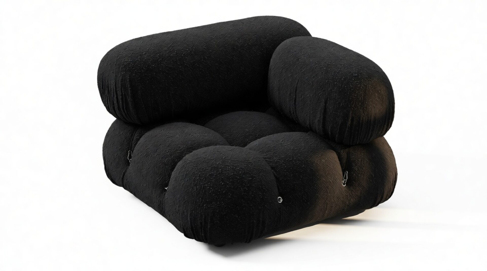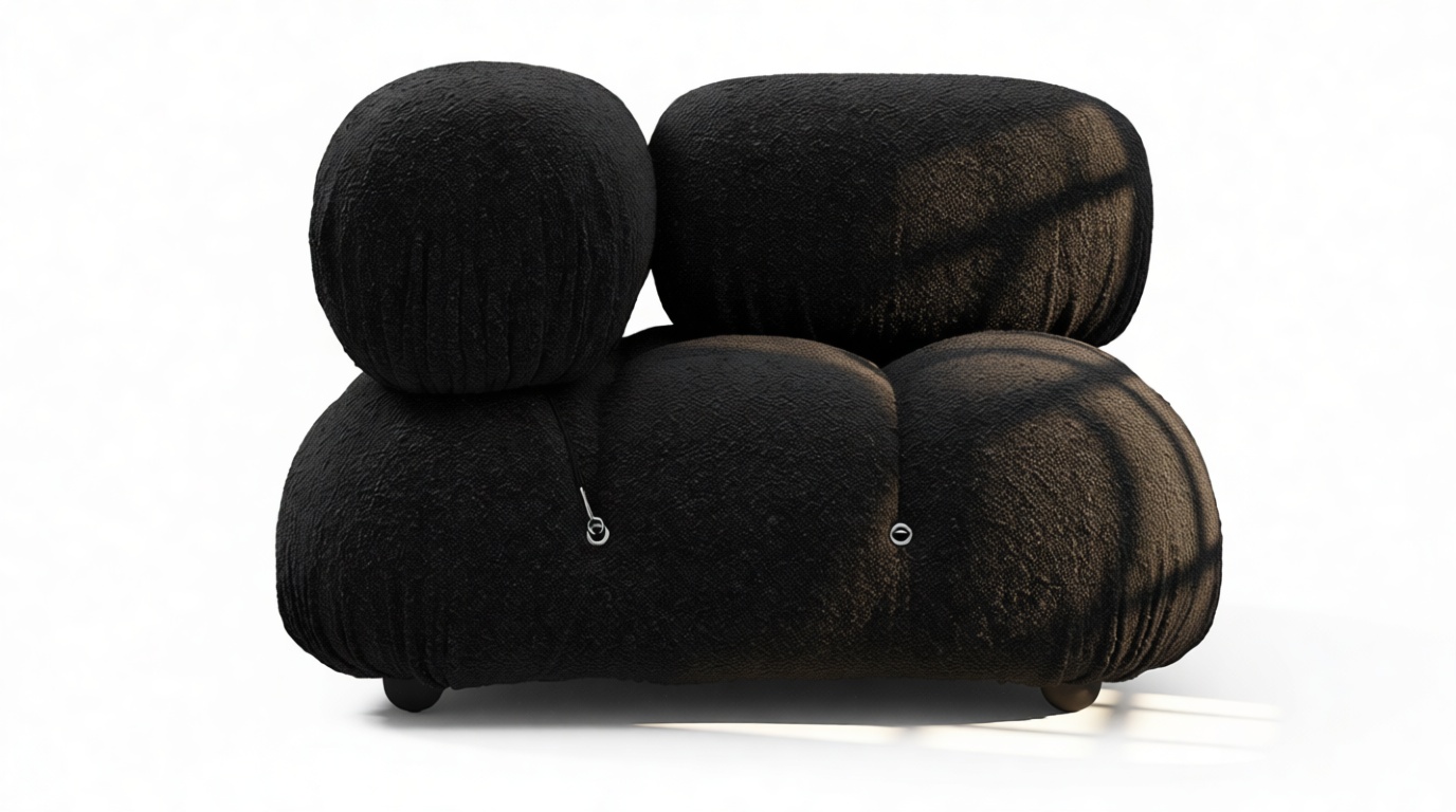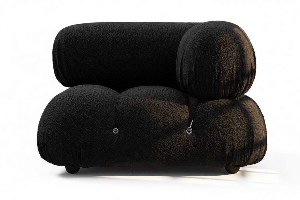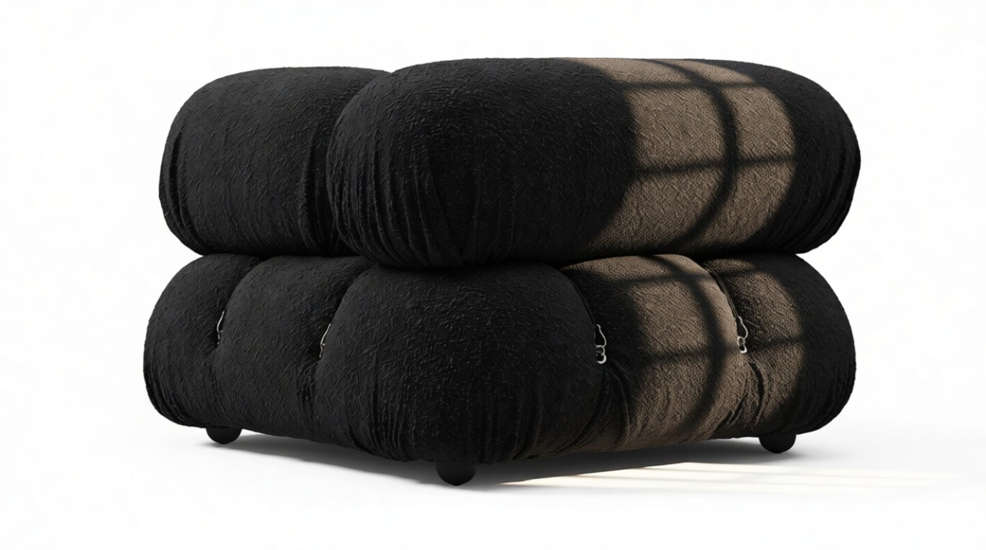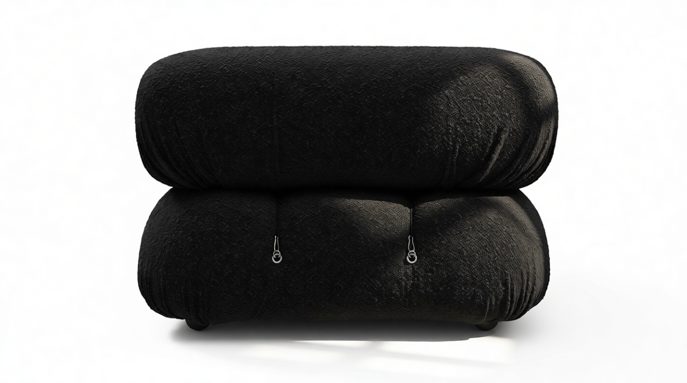 Step back in time to the 1970s with the Bellini sectional sofa, epitomizing groovy vibes and carefree living. Defying tradition, the Bellini brings liberation to your space with its modular design, allowing seamless customization to suit your layout, style, and mood. The black bouclé upholstery accentuates its low-profile silhouette, exuding relaxed luxury and inviting you to unwind in style. Transported by a new generation of furniture enthusiasts, the Bellini's adaptability and enduring charm make it a timeless favorite that effortlessly complements any setting.
