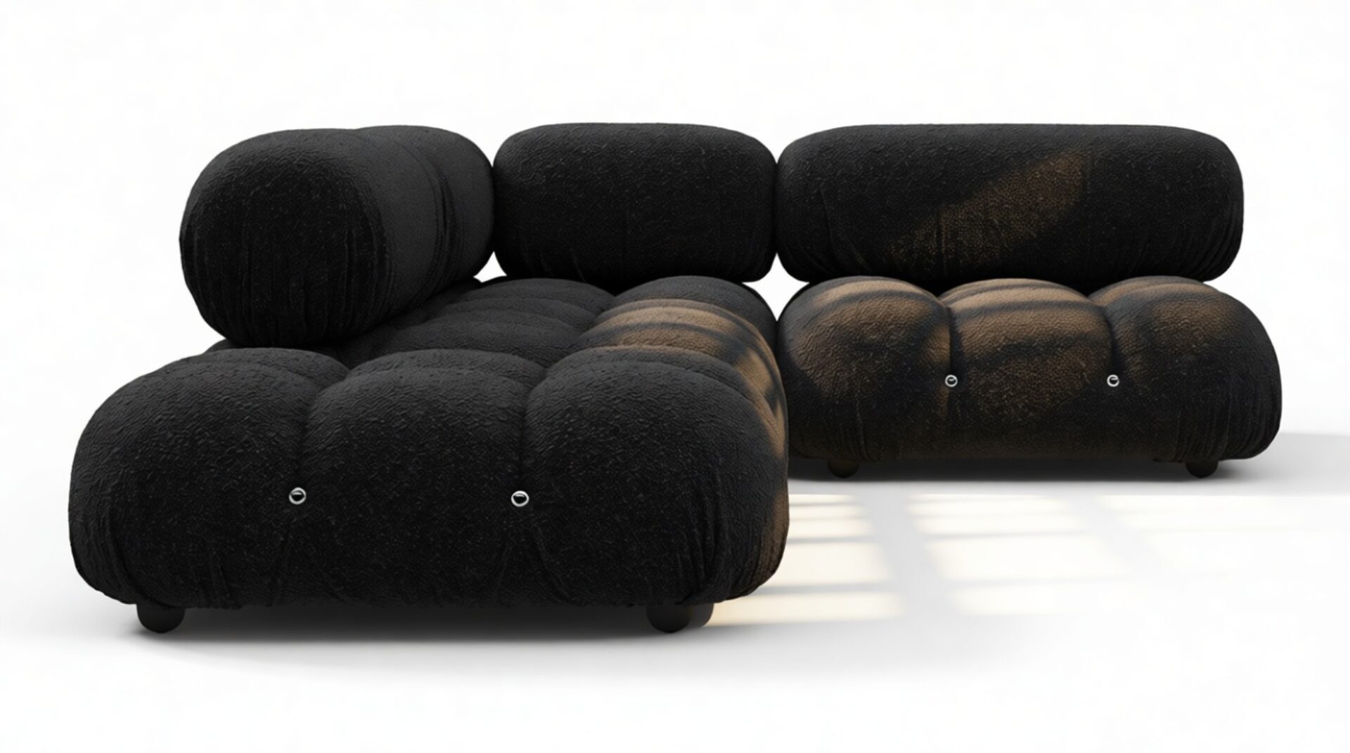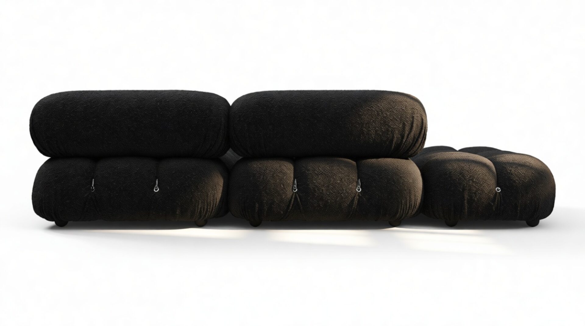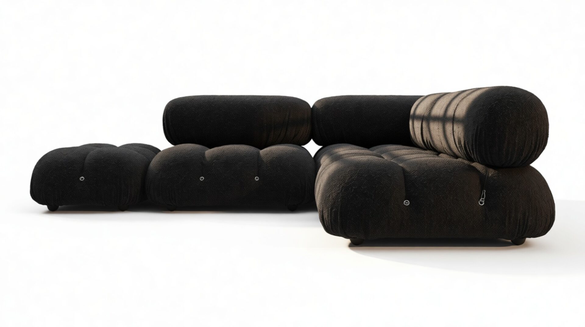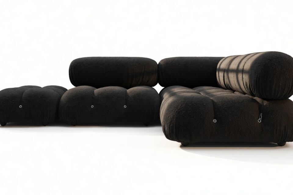 Step into the retro charm of the '70s with the sleek and sophisticated Bellini sectional sofa. This modern classic redefines lounging with its modular flexibility, allowing you to effortlessly customize your space without a full overhaul. Crafted with a sturdy wooden frame and sumptuous cold-pressed foam wrapped in soft Black Boucle fabric, the Bellini offers a blend of comfort and style that adapts to your changing preferences. Its versatile design appeals to a new generation of furniture enthusiasts, boasting tie rods and rings that grant you freedom in rearranging and creating a chic, tailored look. Unwind in luxury on its low-profile silhouette, complete with inviting cushions that exude a relaxed, elegant vibe. Elevate your décor with the Bellini's exquisite contours and endless configuration possibilities, transforming your living area into a sophisticated retreat that mirrors your unique style.
