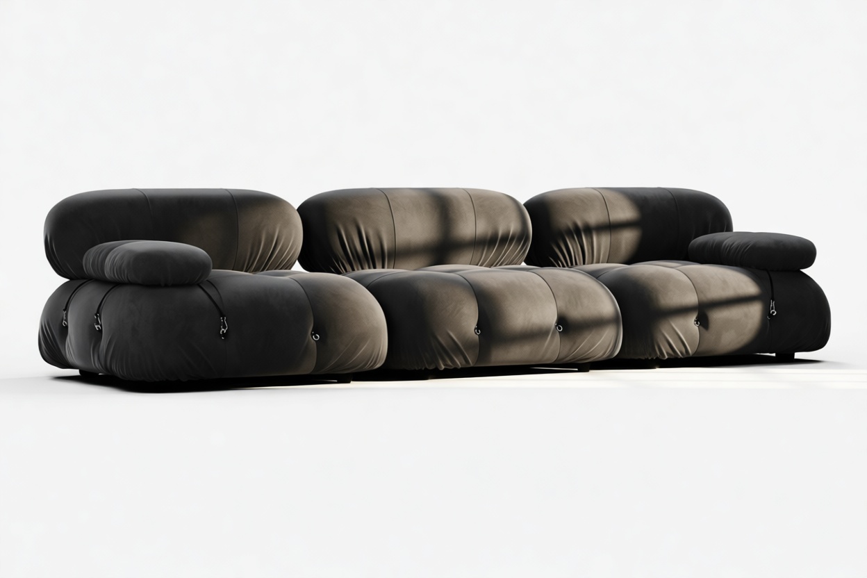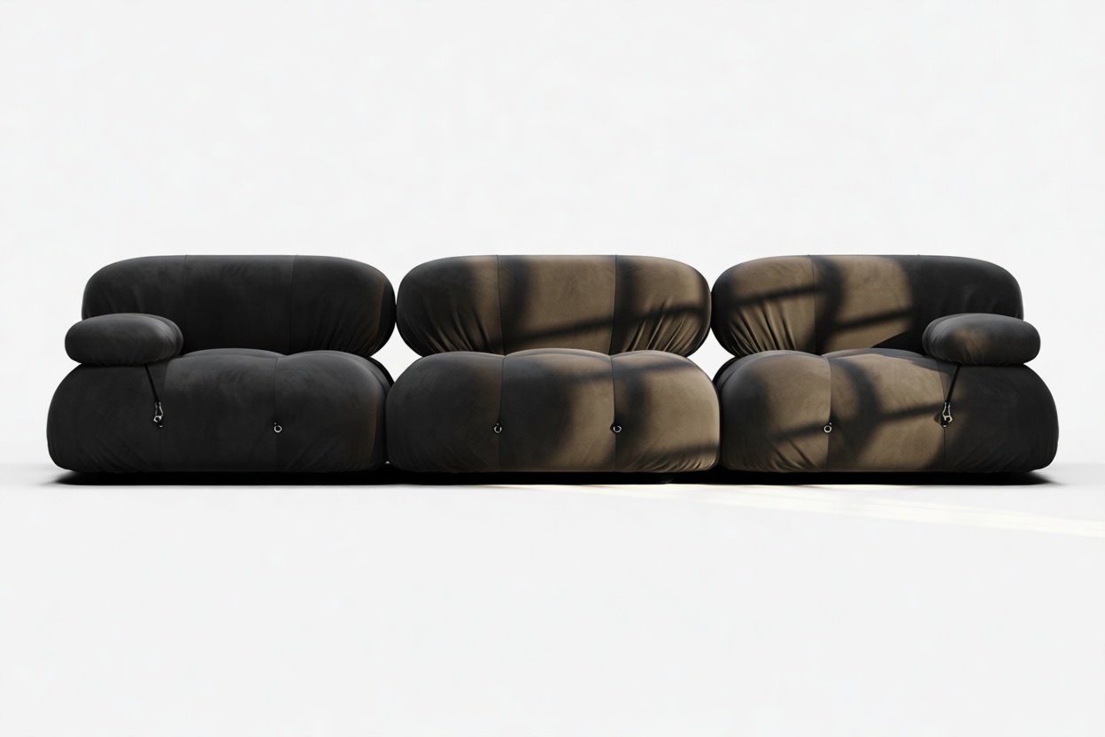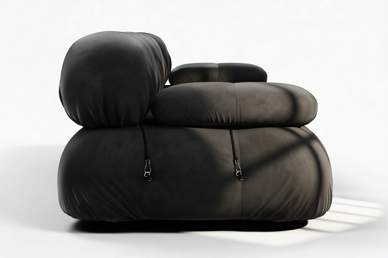 Step back into the 1970s with the Bellini sectional sofa, a nod to the era of groovy vibes and carefree living. Unconventional in design, the Bellini offers a liberating essence to your space. Its modular structure lets you personalize to match your room's layout and mood, all in stunning Black Velvet for a touch of relaxed luxury.
