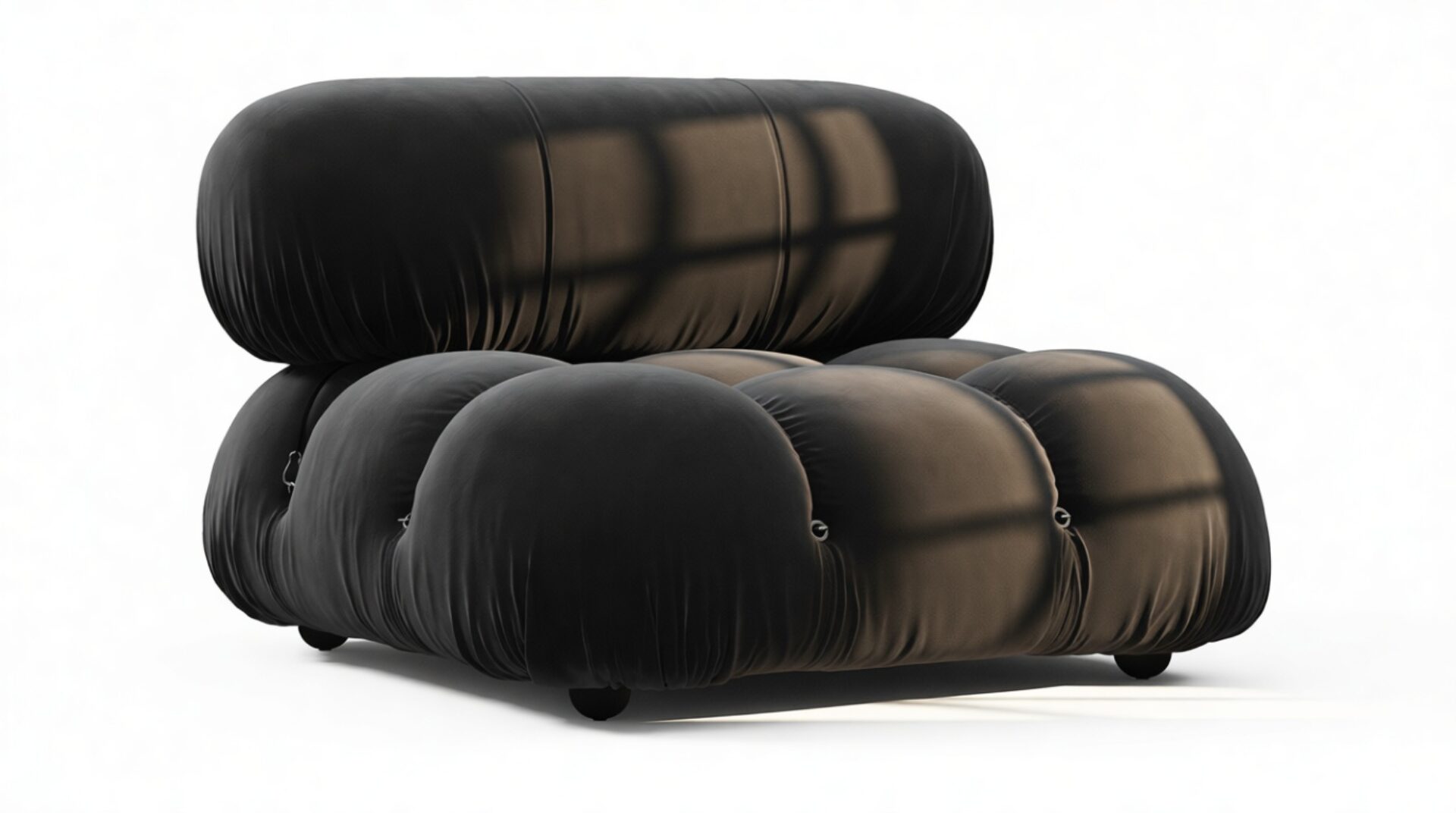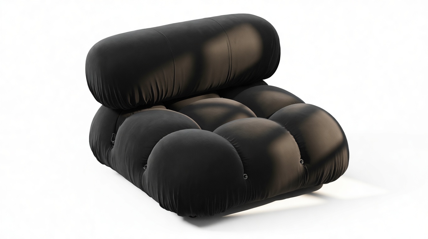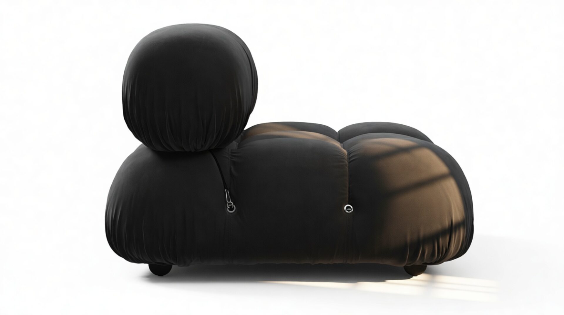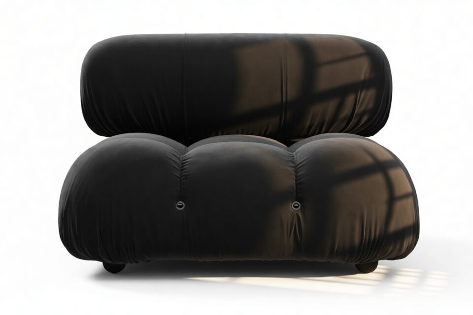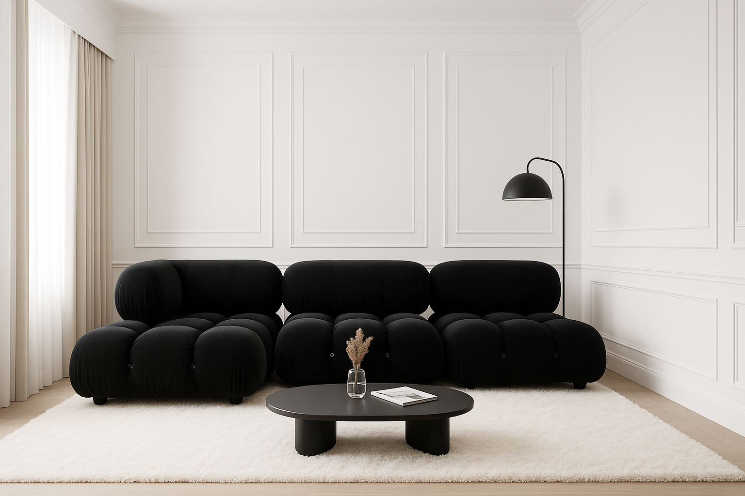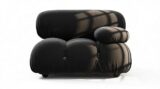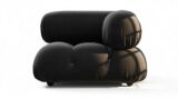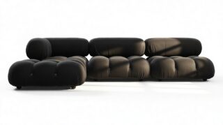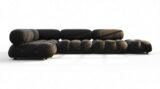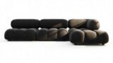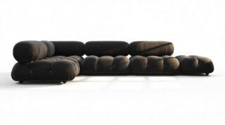 Transport yourself back to the 1970s with the Bellini sectional sofa in Black Velvet, a tribute to an era of groovy vibes and carefree living. The Bellini defies the bulky and conventional, offering a sense of liberation to your living space. Crafted with a sturdy wooden frame and plush cold-pressed foam enveloped in soft fabric, its modular design allows easy customization to fit your room layout, style, and mood without a full makeover. Cherished by a new generation for its adaptability, the Bellini features tie rods and rings, enabling effortless separation and rearrangement for a sofa that evolves with your changing preferences. Experience relaxed luxury with its low-profile silhouette and inviting cushions that promise style and endless comfort.