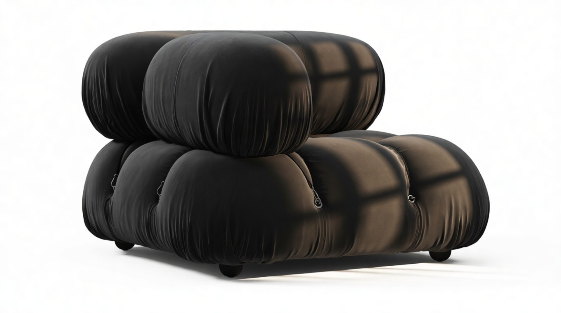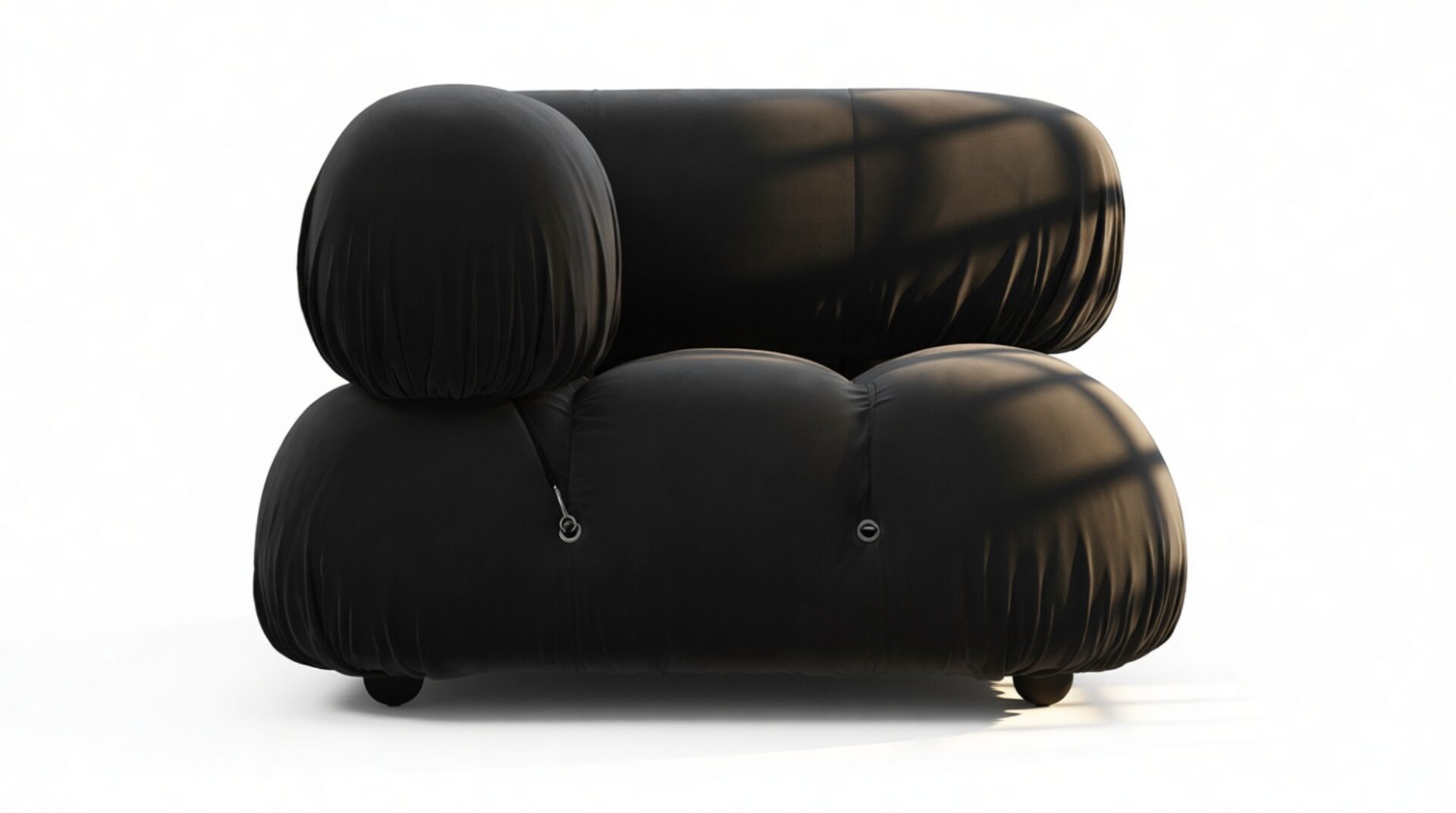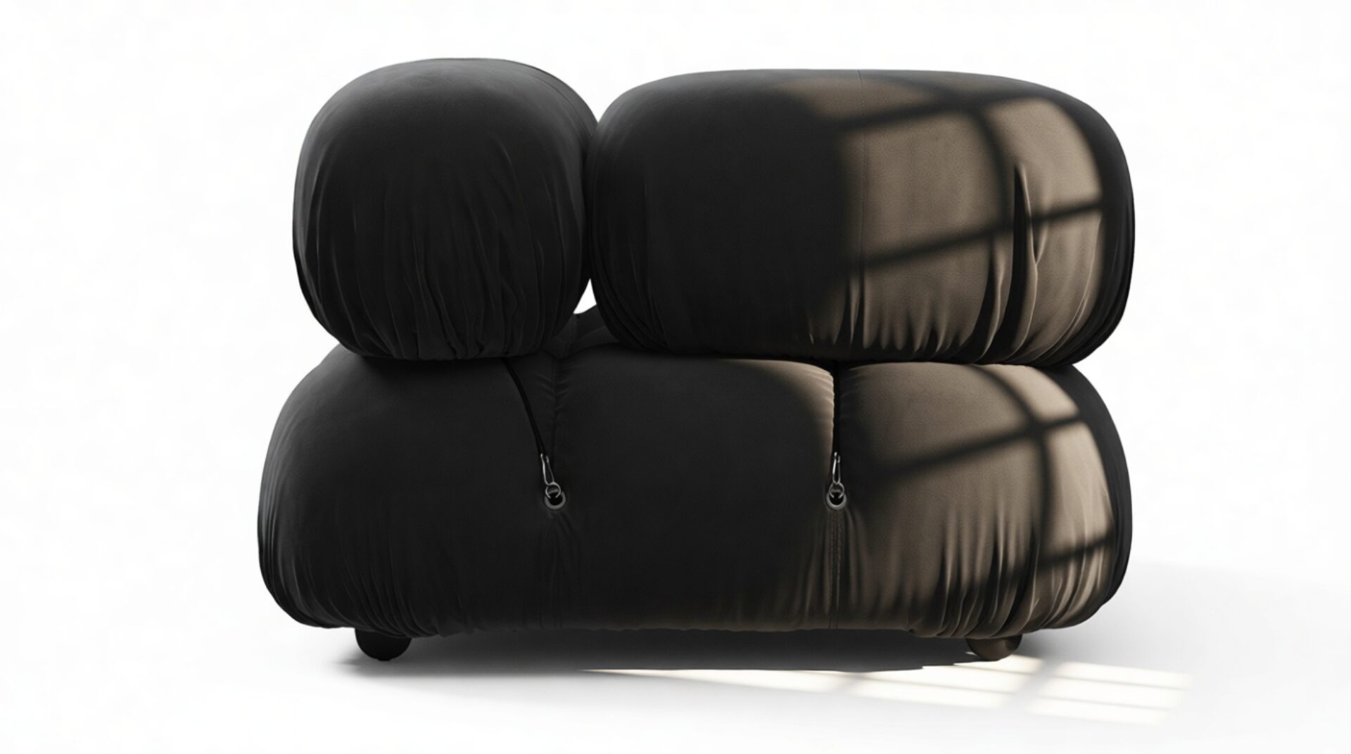 - Modular Instructions: Each section of the Mario Bellini Sofa is modular and is attached with string ties and carabiners. To assemble or rearrange your sofa, simply unclip the carabiners from one ring and attach to a corresponding ring on the module you wish to connect to.