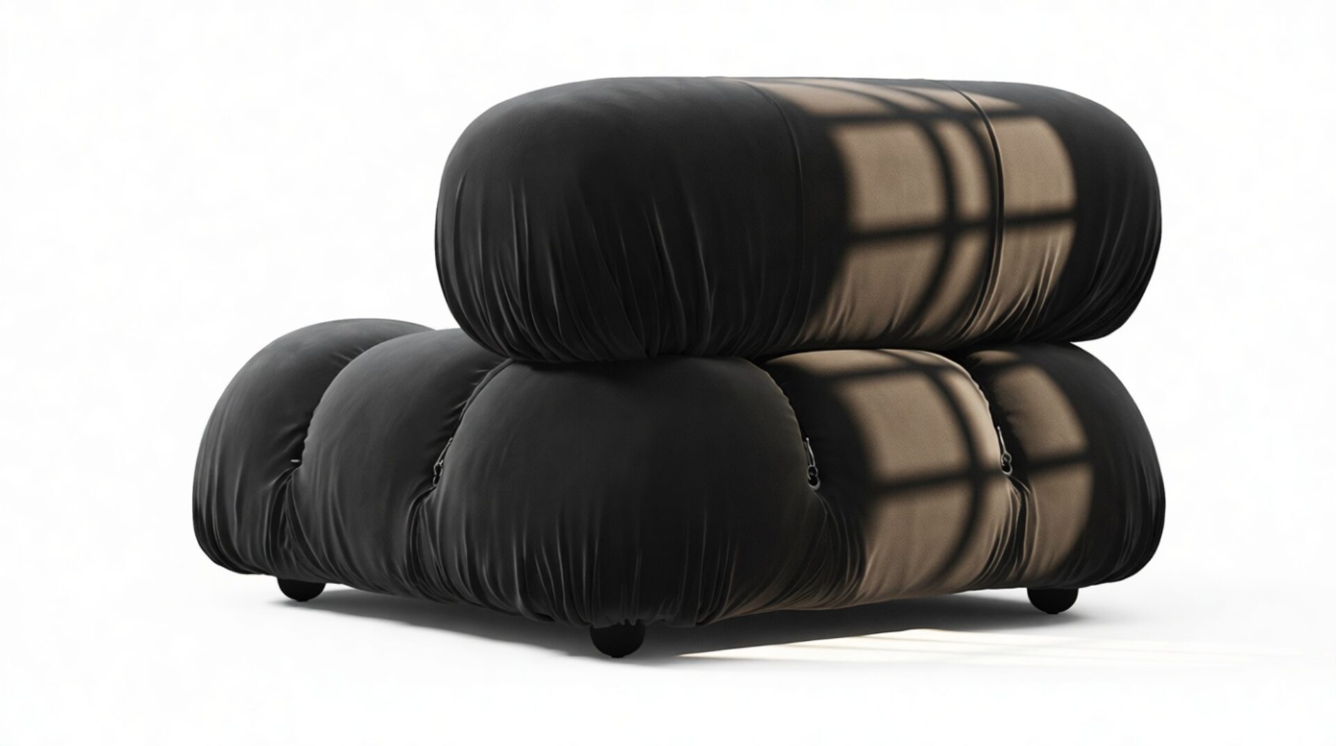 Immerse yourself in the groovy vibes of the 1970s with the iconic Bellini sectional sofa in Black Velvet, showcasing a modular design for effortless customization to suit your space, style, and mood. Crafted with a sturdy wooden frame and plush cold-pressed foam, its low-profile silhouette exudes relaxed luxury while offering unparalleled comfort.