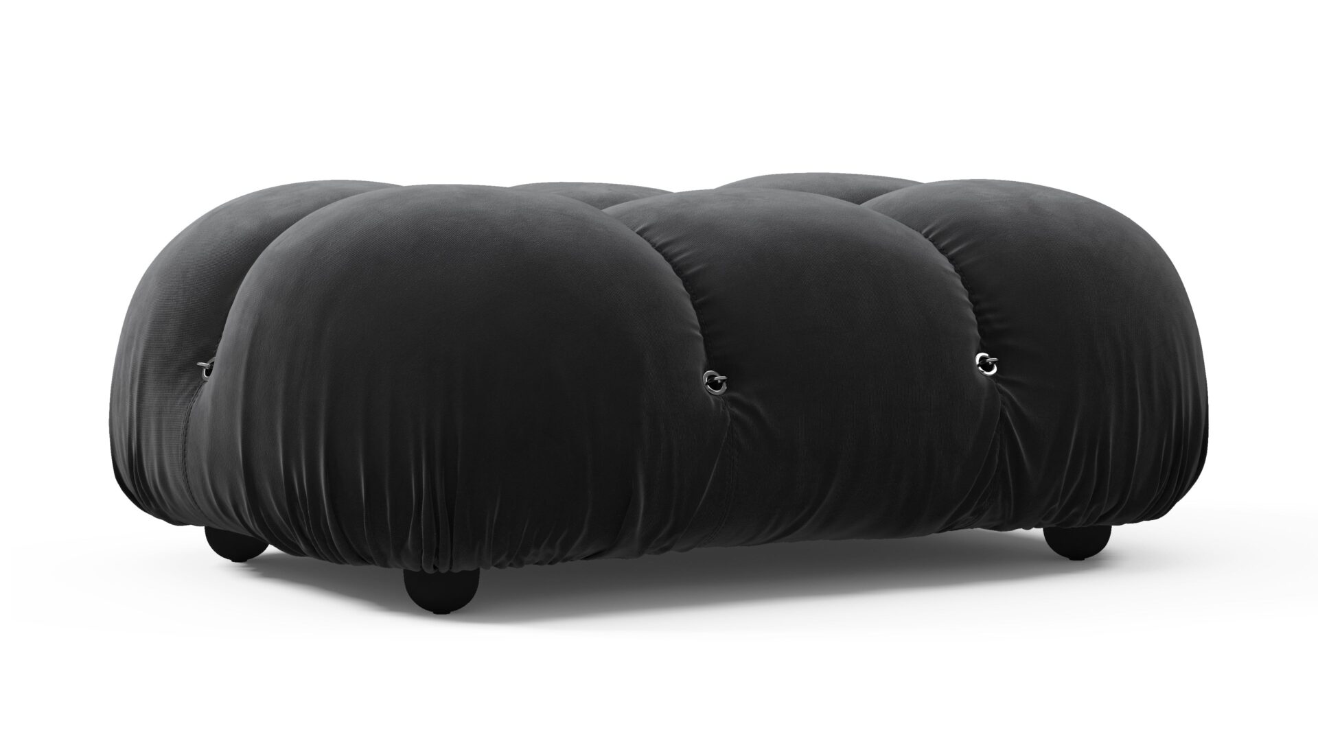 Step back into the chic 1970s era with the Bellini modular sofa, a tribute to freedom and style. Crafted with a strong wooden frame and plush cold-pressed foam wrapped in soft Black Velvet fabric, this low-profile beauty exudes relaxed luxury. Its modular design offers limitless configurations, ensuring a tailored fit for any space. Unwind in lavish comfort with the Bellini's timeless allure.