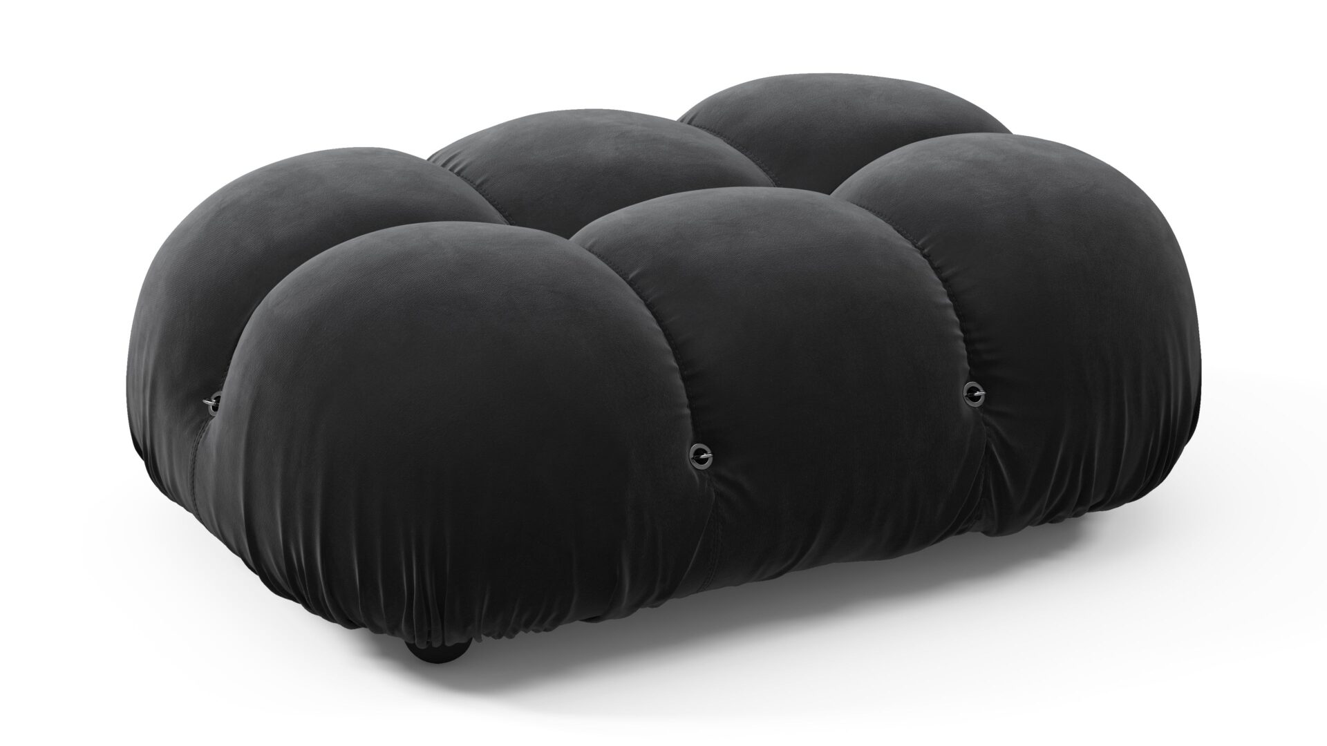 - Modular Instructions: Each section of the Mario Bellini Sofa is modular and is attached with string ties and carabiners. To assemble or rearrange your sofa, simply unclip the carabiners from one ring and attach to a corresponding ring on the module you wish to connect to.