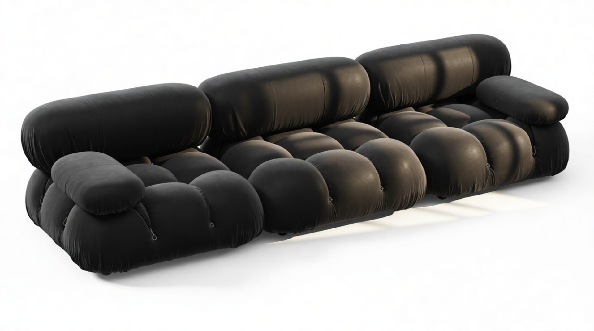 Step back into the 1970s with the Bellini sectional sofa, a nod to the era of groovy vibes and carefree living. Unconventional in design, the Bellini offers a liberating essence to your space. Its modular structure lets you personalize to match your room's layout and mood, all in stunning Black Velvet for a touch of relaxed luxury.