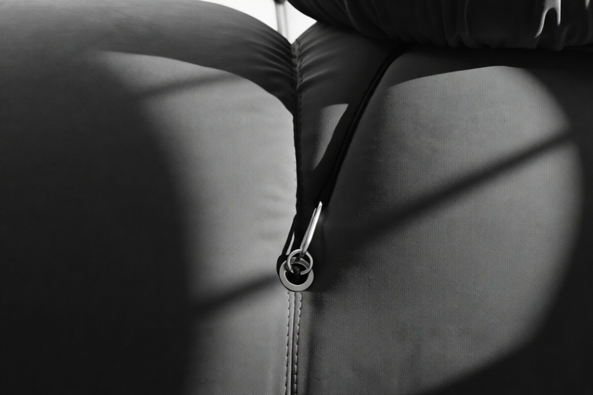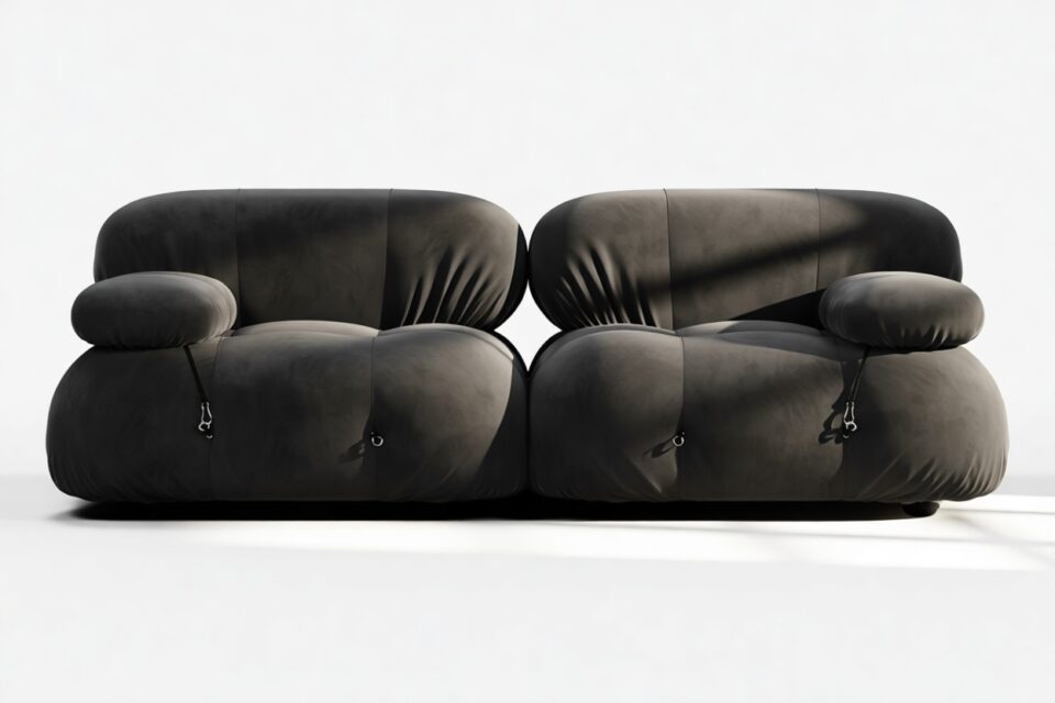 - Modular Instructions: Each section of the Mario Bellini Sofa is modular and is attached with string ties and carabiners. To assemble or rearrange your sofa, simply unclip the carabiners from one ring and attach to a corresponding ring on the module you wish to connect to.