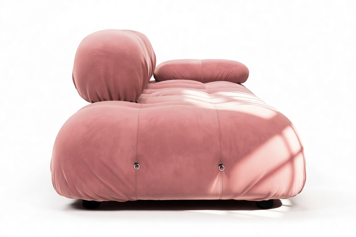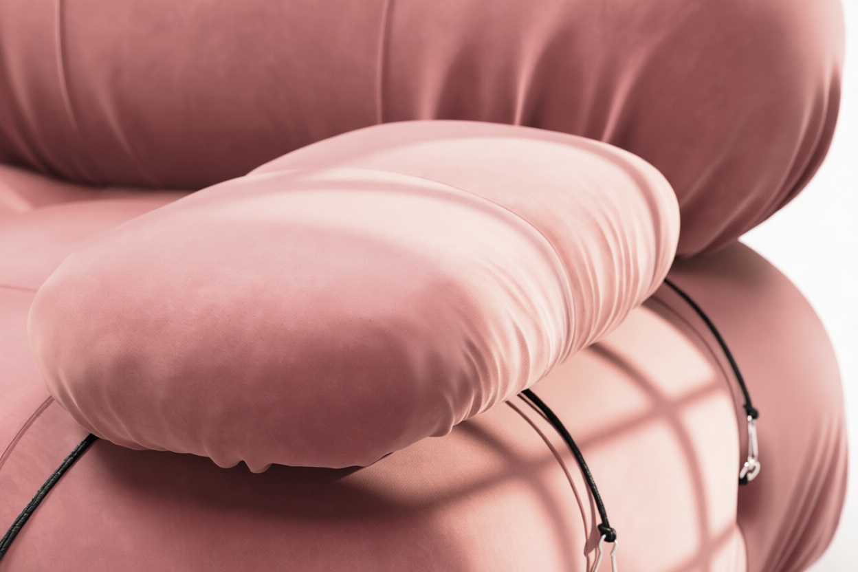 Step into the 1970s with the Bellini sectional sofa, a nod to groovy vibes and carefree living. This trendy modular sofa allows you to personalize your space effortlessly. Crafted with a sturdy wooden frame and plush cold-pressed foam enveloped in Blush Pink Velvet, the Bellini exudes relaxed luxury, inviting you to unwind in style. Its adaptable design and endless configuration options make it a versatile piece for any room.