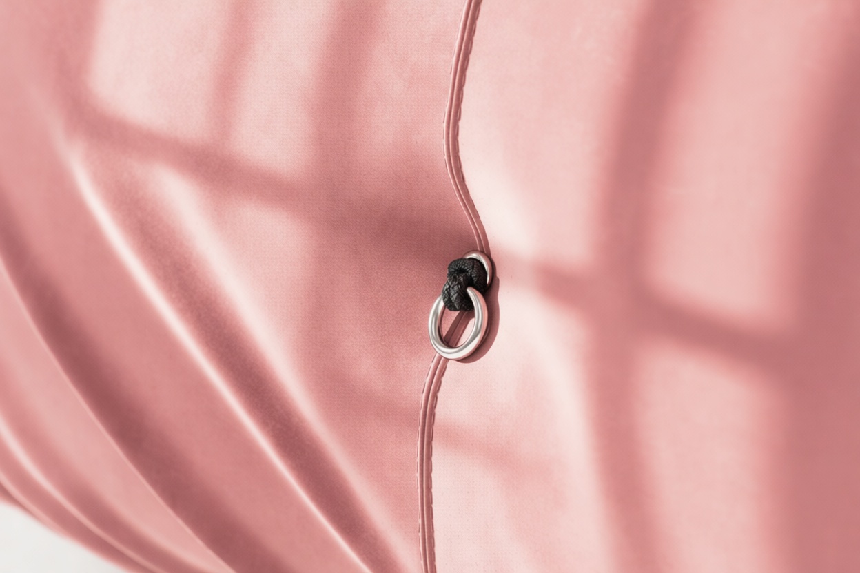 - Modular Instructions: Each section of the Mario Bellini Sofa is modular and is attached with string ties and carabiners. To assemble or rearrange your sofa, simply unclip the carabiners from one ring and attach to a corresponding ring on the module you wish to connect to.