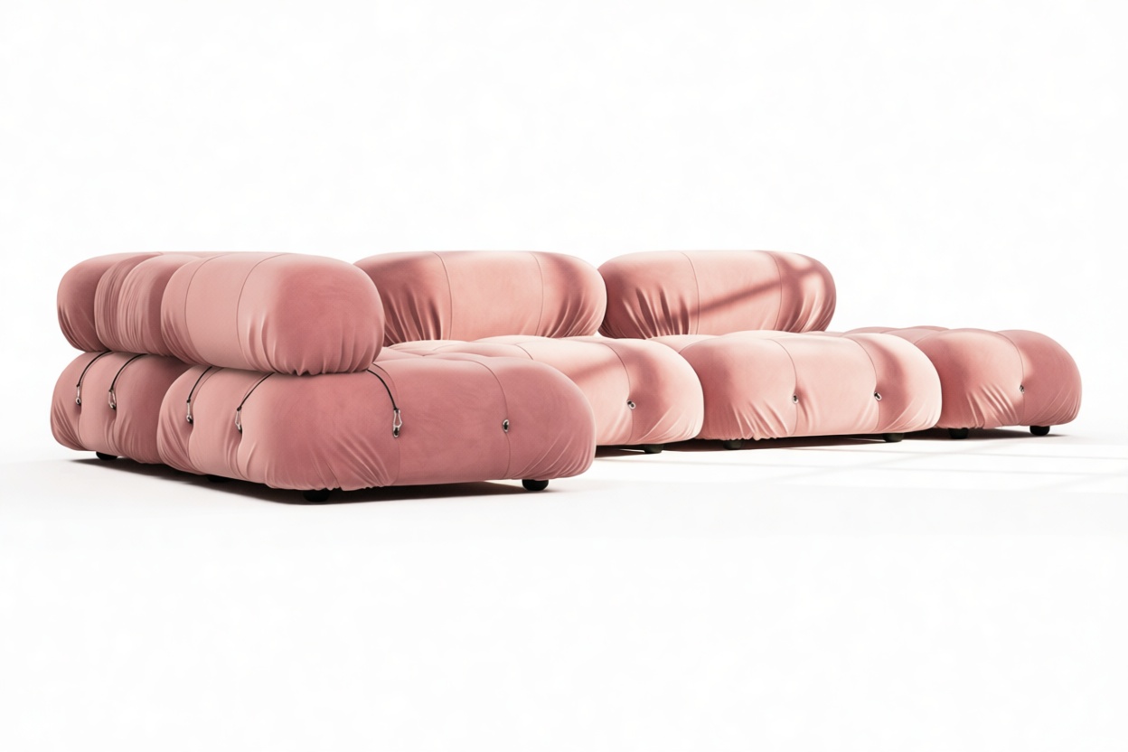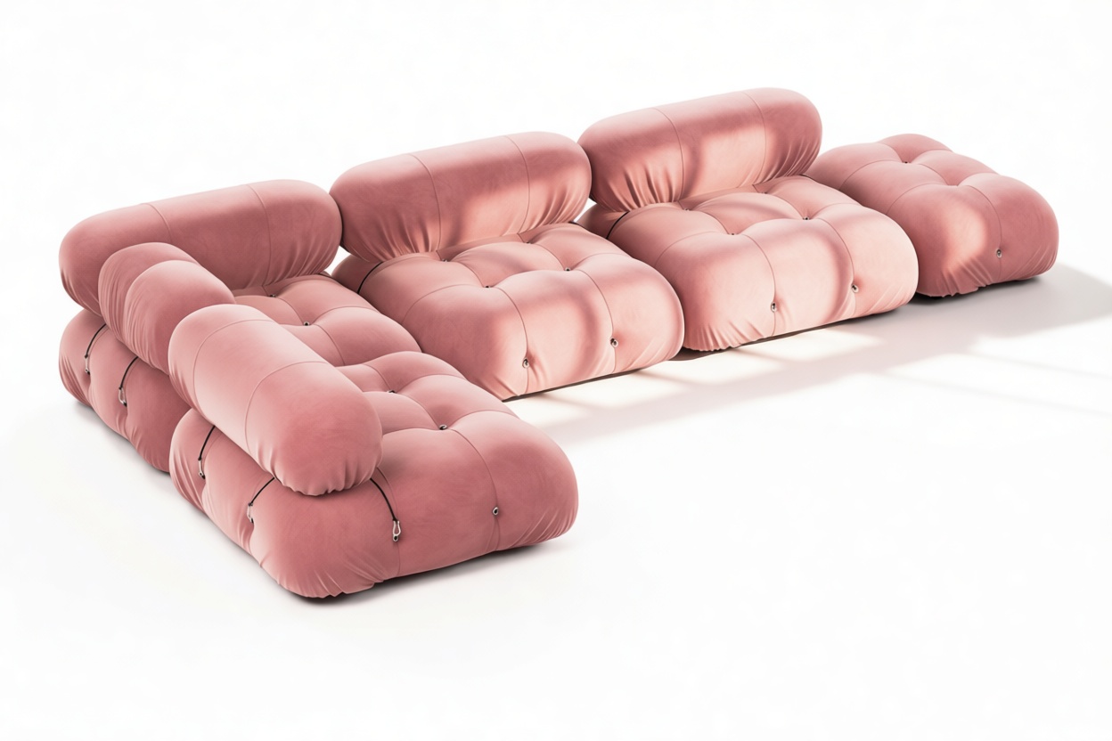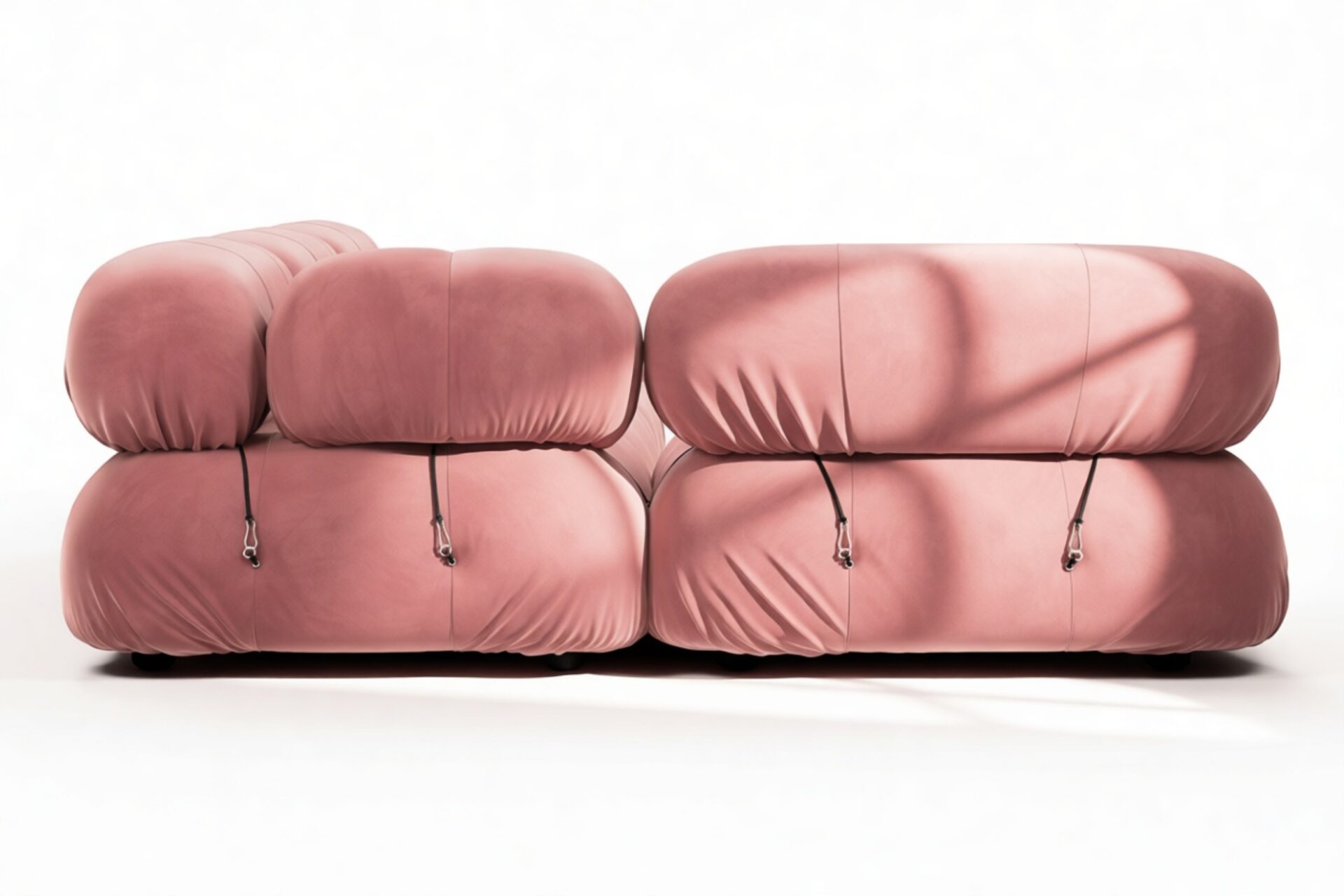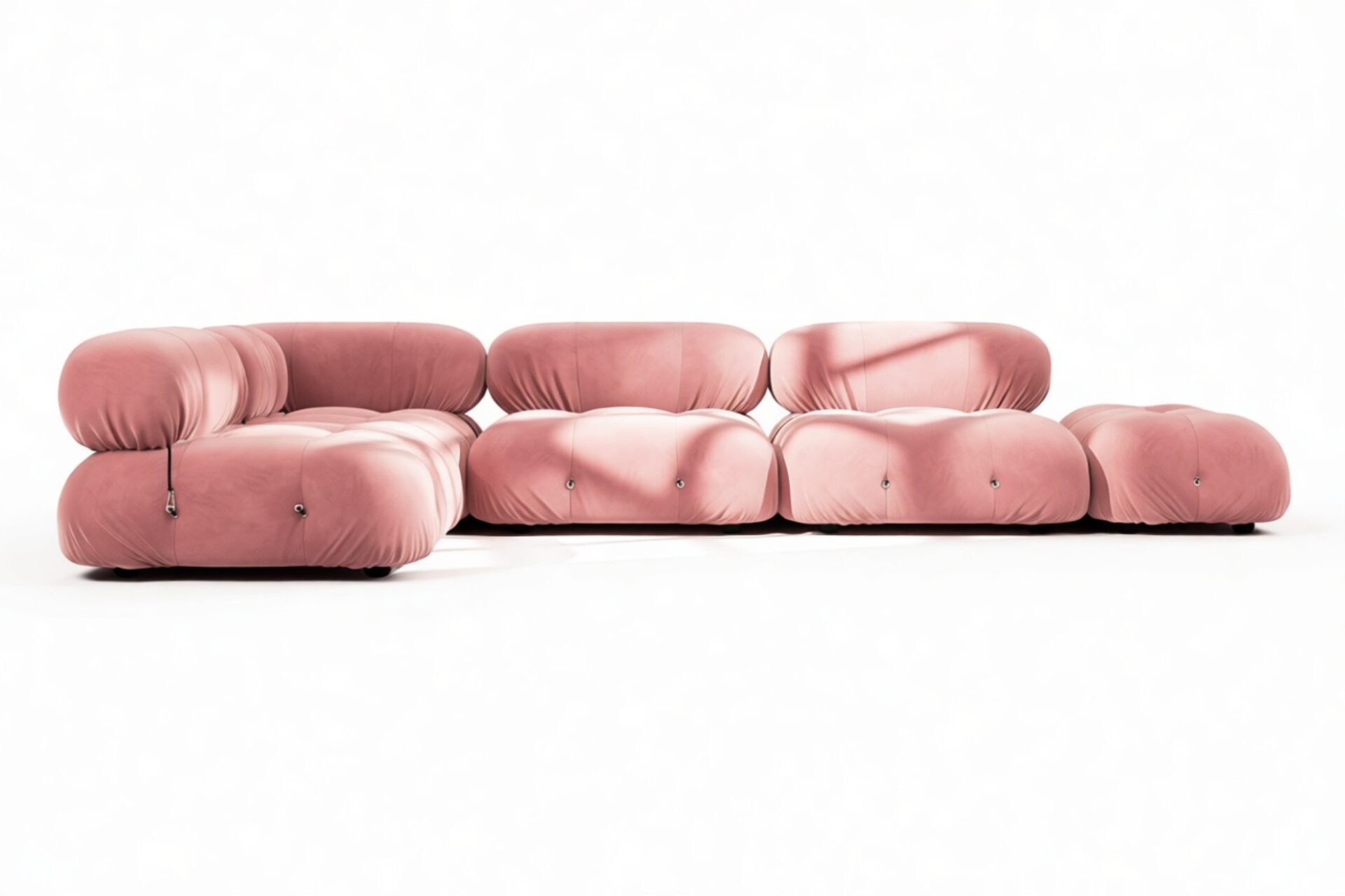 Step into retro chic with the Bellini sectional sofa, a nod to the funky 1970s era. Boldly breaking away from the ordinary, this piece offers a sense of freedom and customization. Ideal for modern furniture lovers, the Bellini boasts an effortlessly adjustable design with charming tie rods and rings. Dressed in plush Blush Pink Velvet, its low-profile silhouette exudes casual opulence while providing endless configuration possibilities. A timeless choice for any setting, the Bellini promises a blend of style and comfort that adapts to your every mood and space requirement.