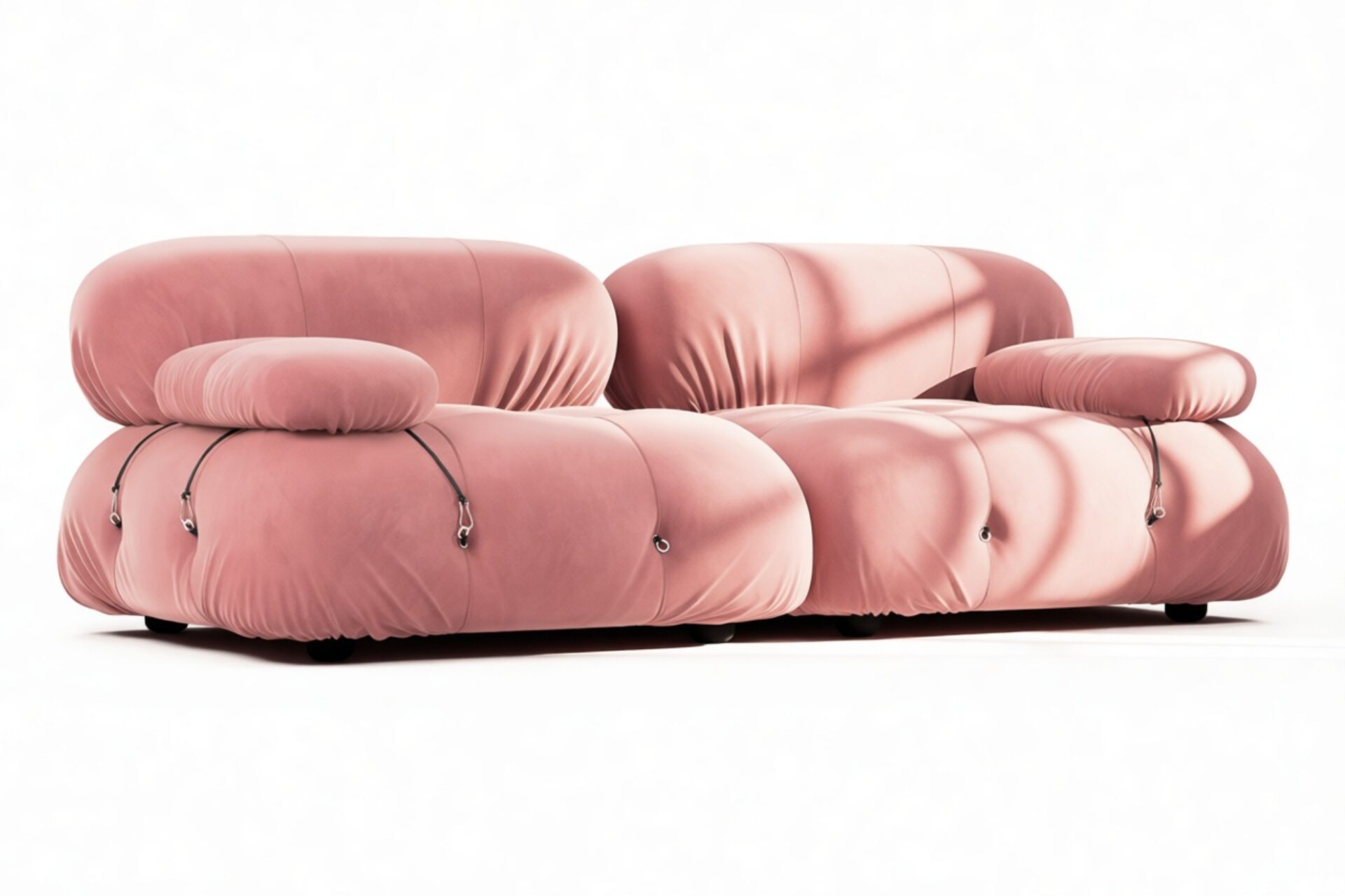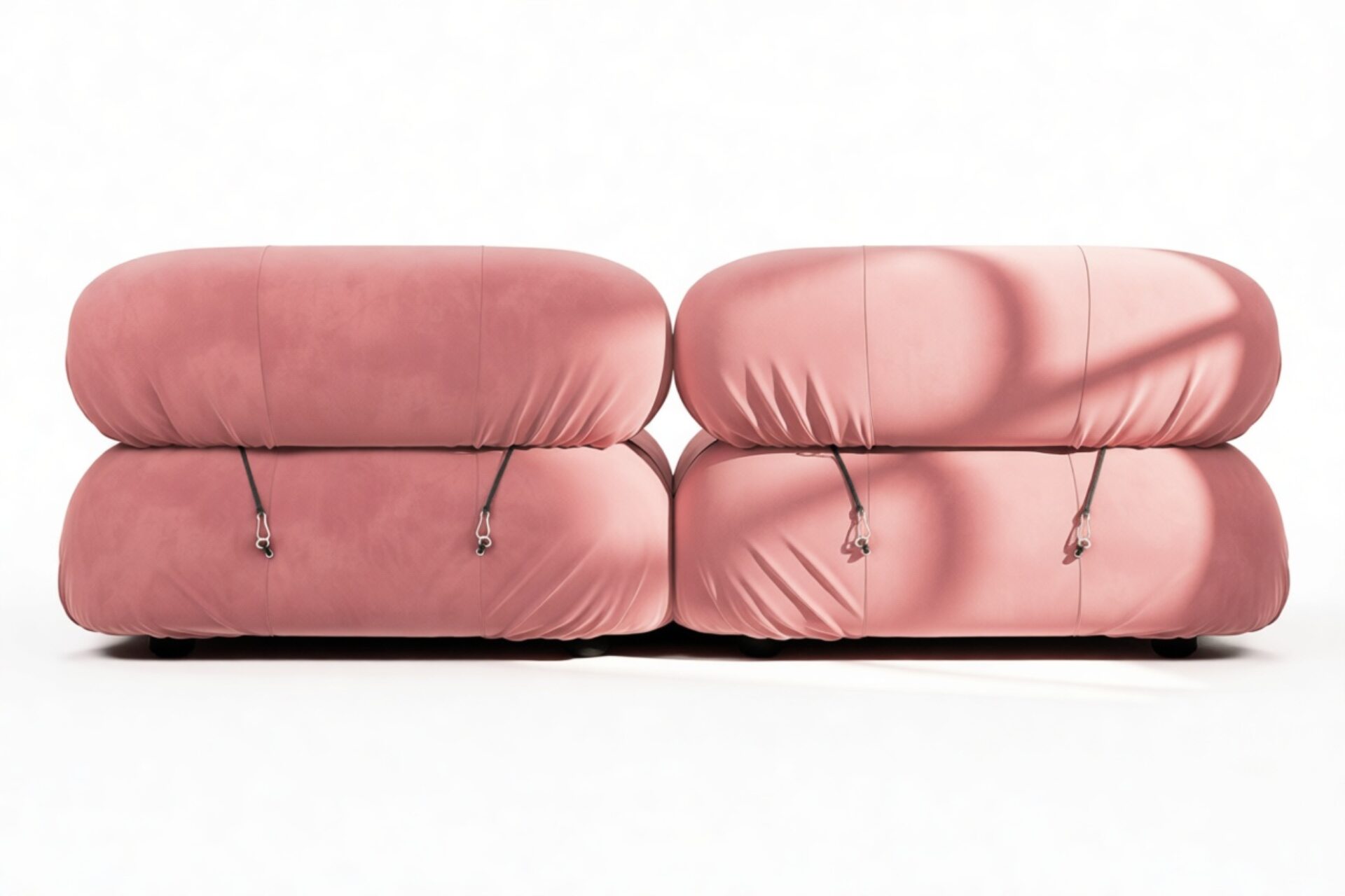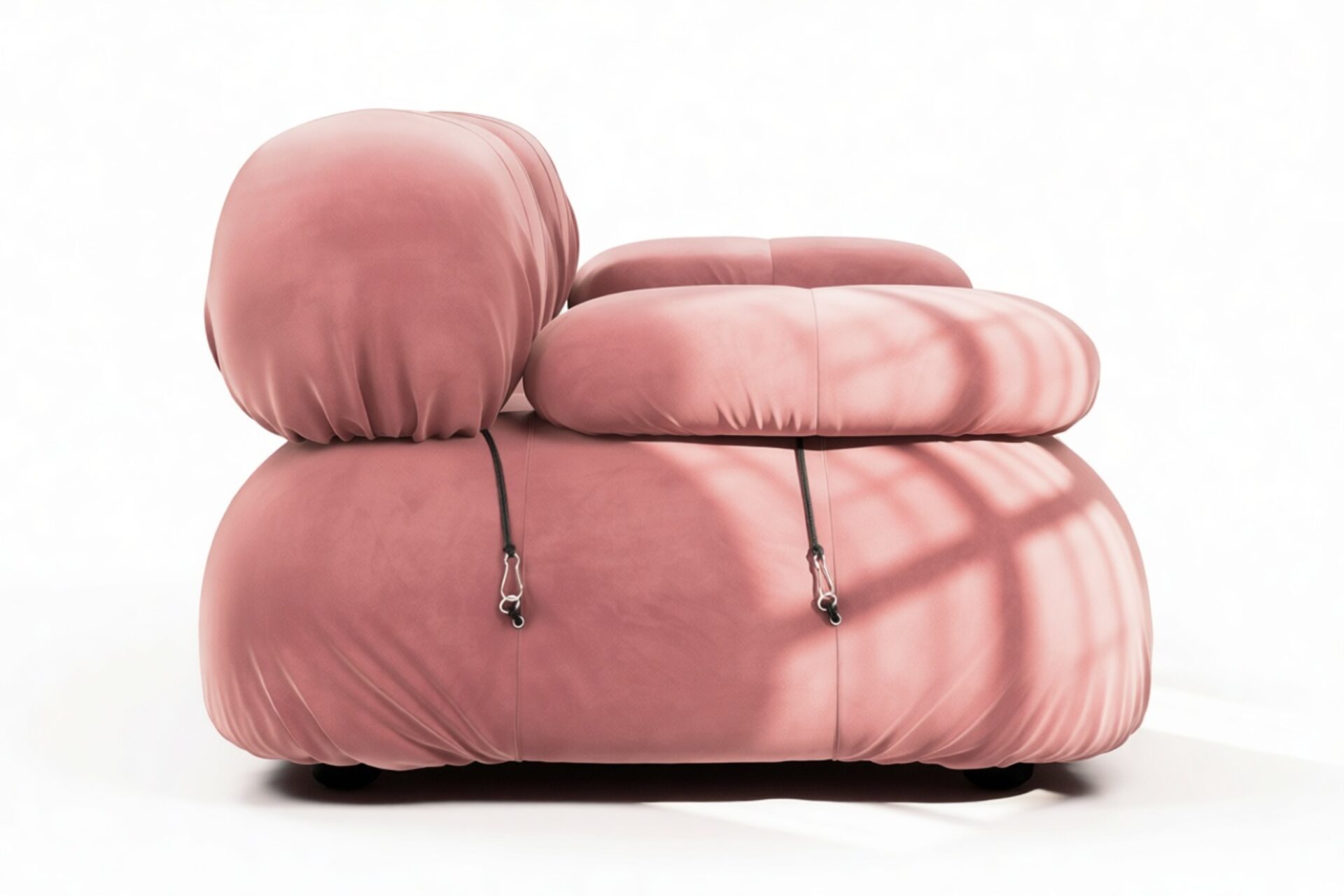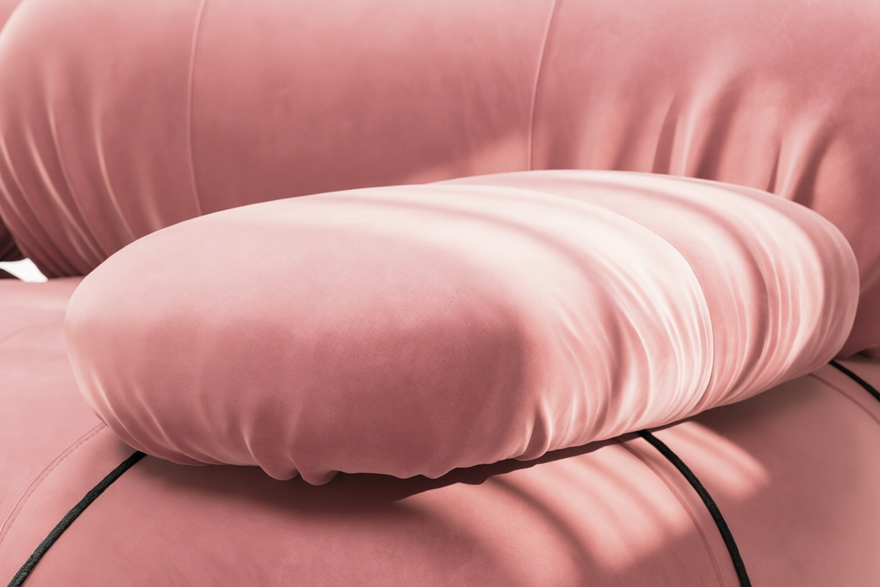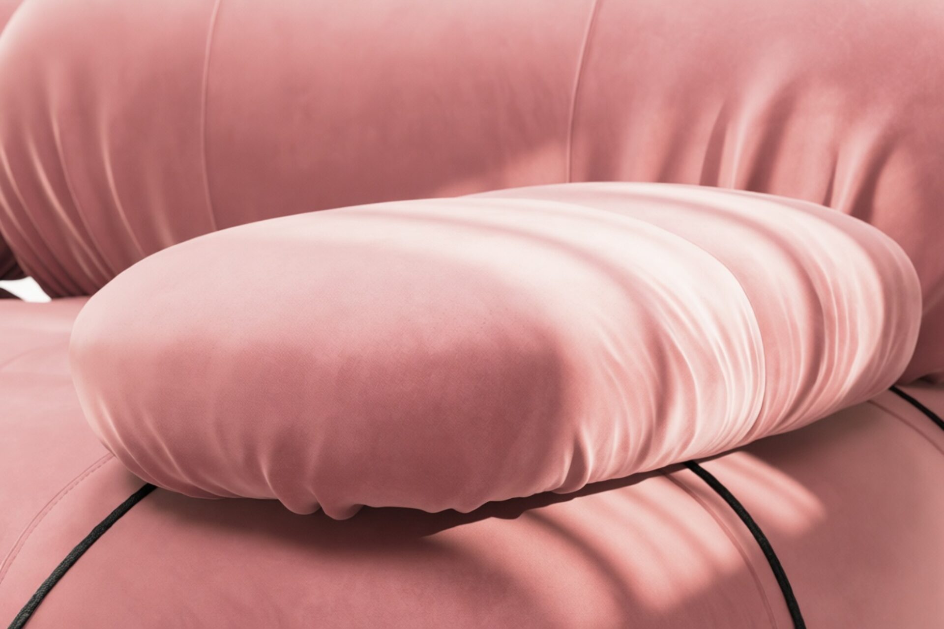 Step back into the 1970s with the Bellini sectional sofa, embodying groovy vibes and carefree living. Its modular design offers liberation, letting you customize it to suit your space, style, and mood without a total overhaul. Crafted with a sturdy wooden frame, plush cold-pressed foam, and soft fabric in Blush Pink Velvet, the low-profile Bellini combines relaxed luxury with style and comfort.