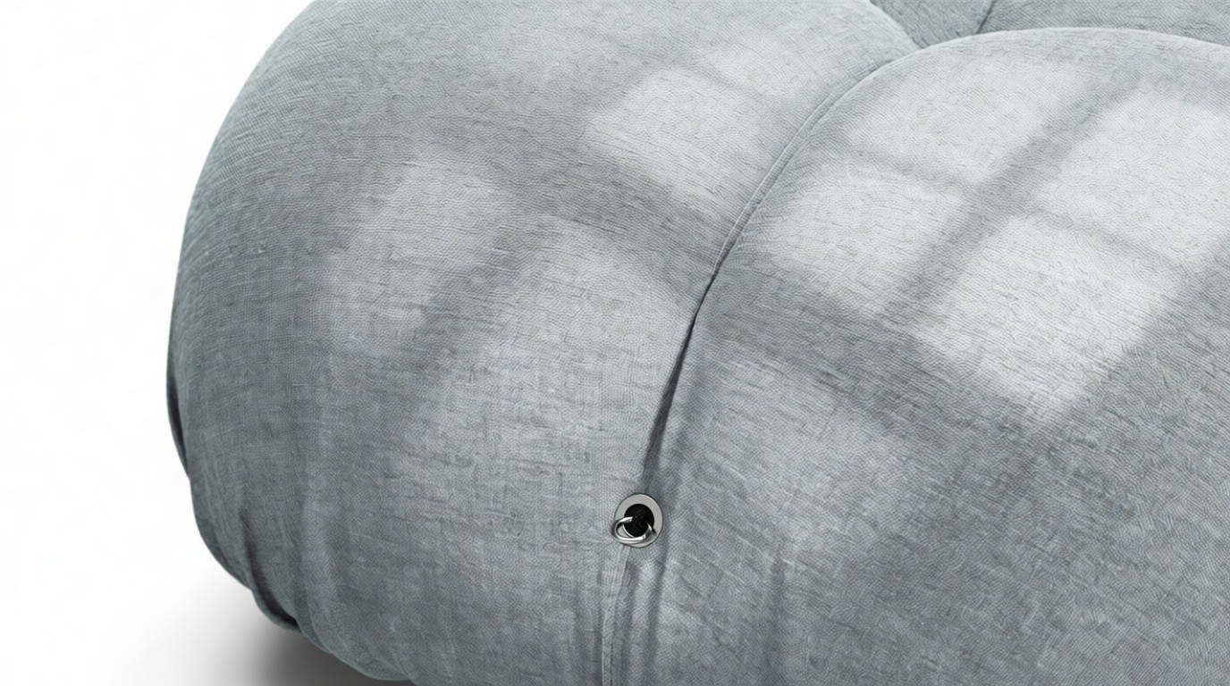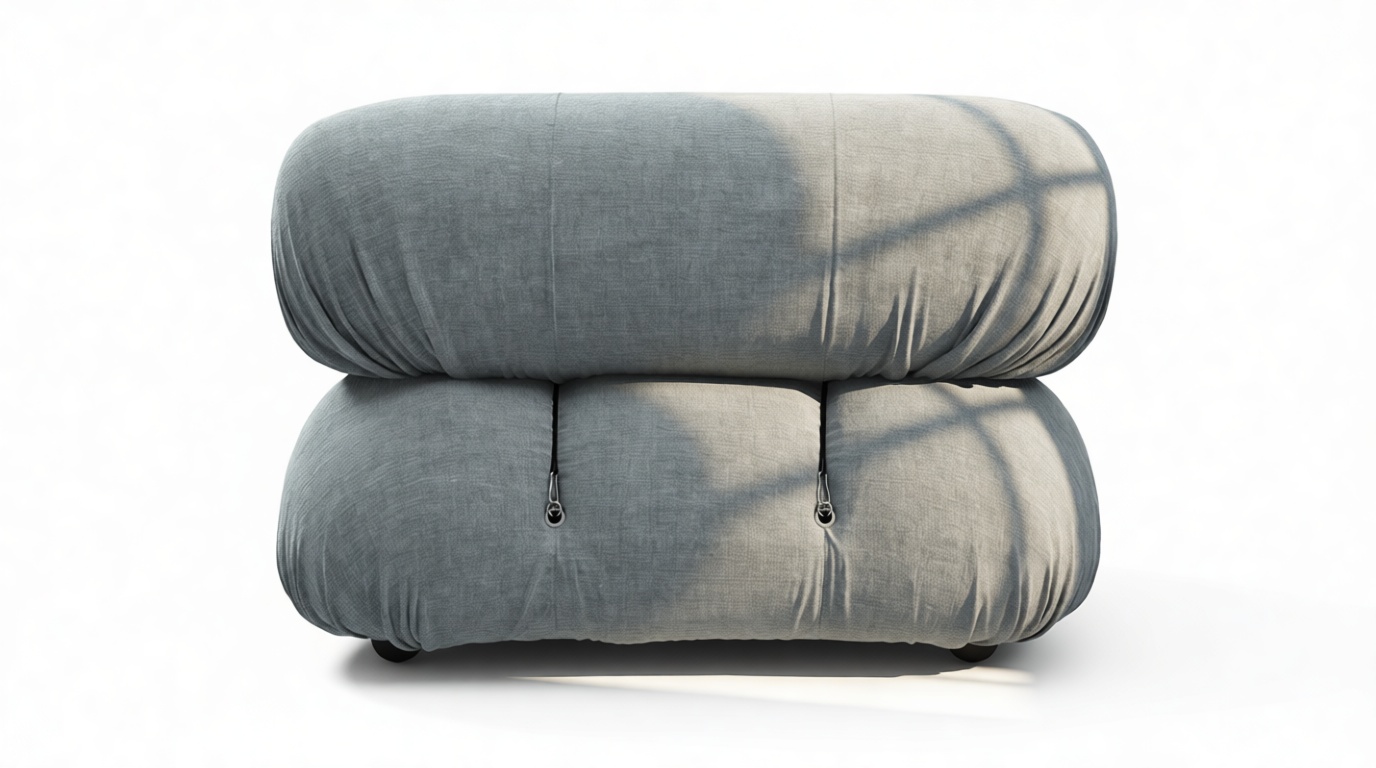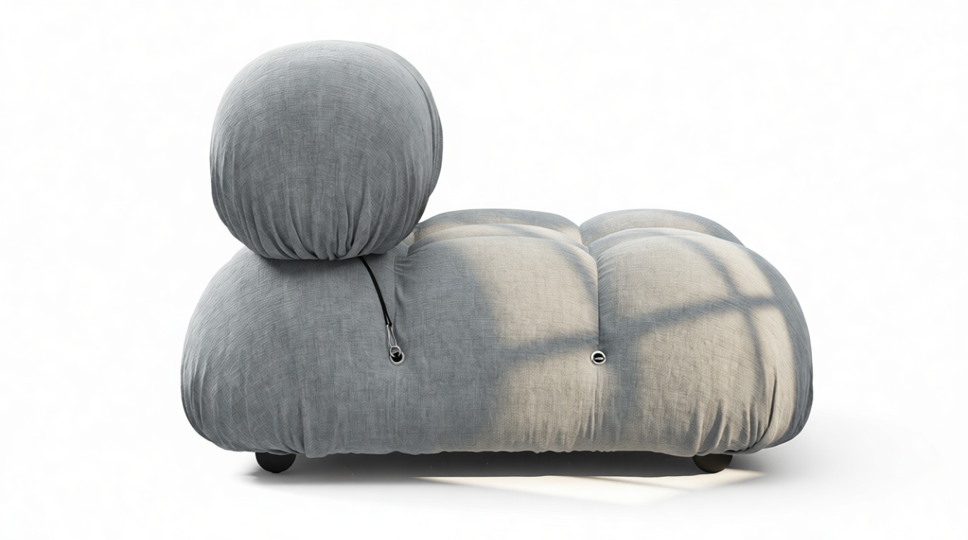 - Modular Instructions: Each section of the Mario Bellini Sofa is modular and is attached with string ties and carabiners. To assemble or rearrange your sofa, simply unclip the carabiners from one ring and attach to a corresponding ring on the module you wish to connect to.