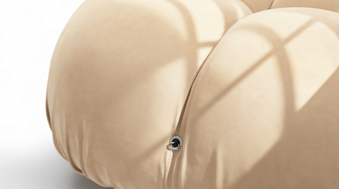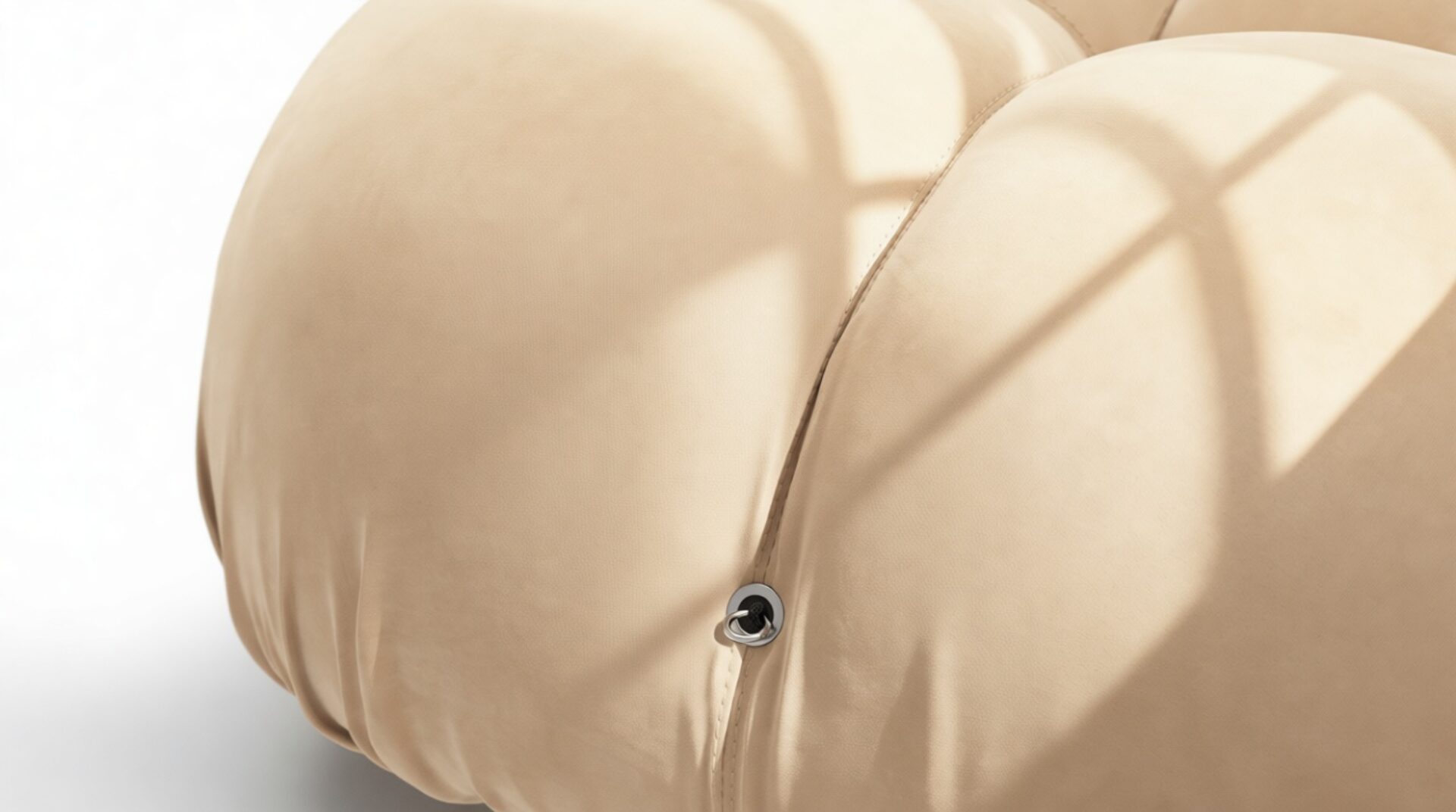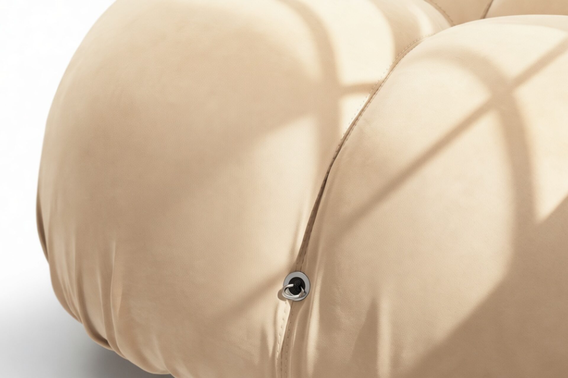 - Modular Instructions: Each section of the Mario Bellini Sofa is modular and is attached with string ties and carabiners. To assemble or rearrange your sofa, simply unclip the carabiners from one ring and attach to a corresponding ring on the module you wish to connect to.