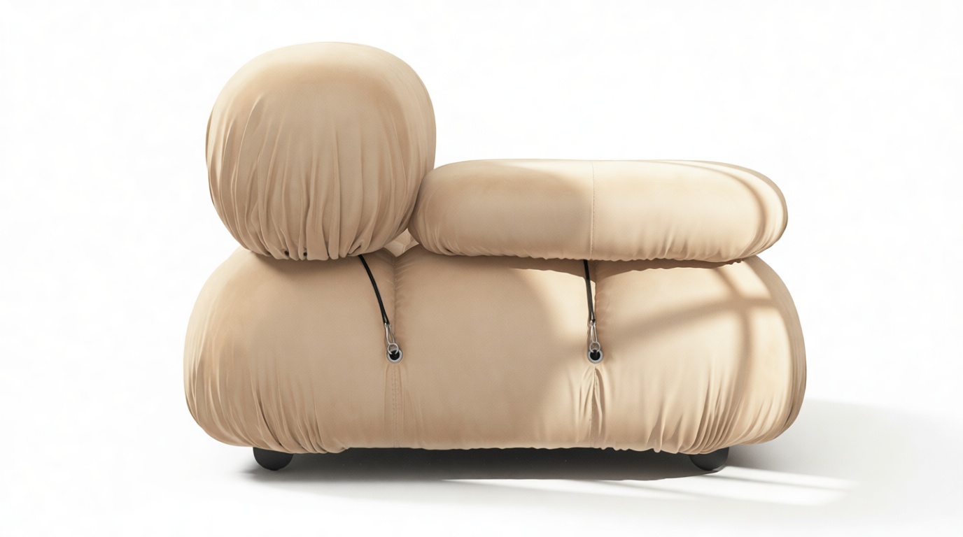- Modular Instructions: Each section of the Mario Bellini Sofa is modular and is attached with string ties and carabiners. To assemble or rearrange your sofa, simply unclip the carabiners from one ring and attach to a corresponding ring on the module you wish to connect to.