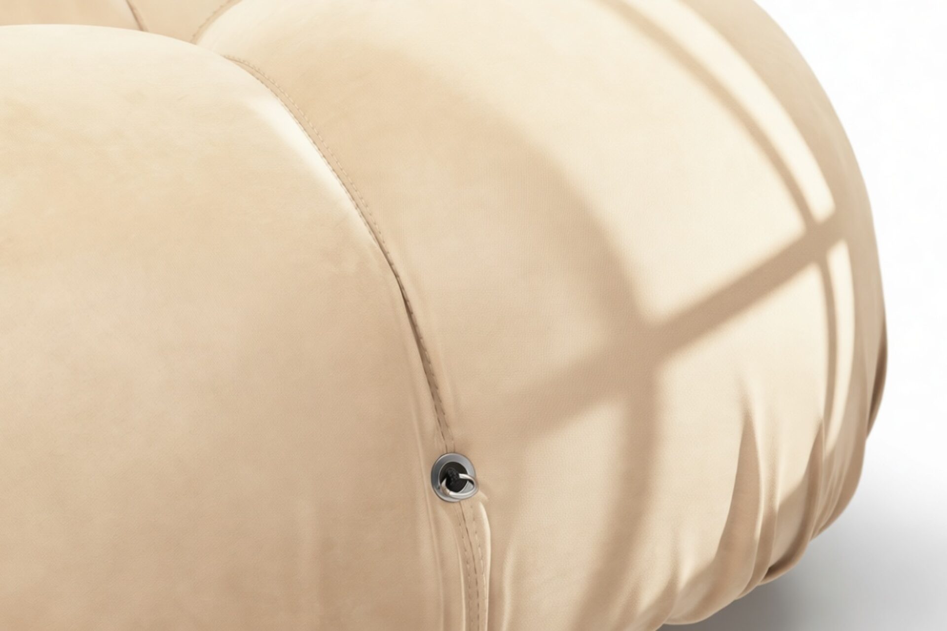 Step into the retro charm of the 1970s with the Bellini Sectional Sofa in Ecru Velvet, embodying a nostalgic ode to free-spirited living. Crafted with a versatile modular design, this sofa offers endless possibilities for customization to suit your layout and style. Its plush cold-pressed foam and sturdy wooden frame exude relaxed luxury, while the lavish Ecru Velvet material adds a touch of sophistication. Experience ultimate comfort and style as you unwind on the inviting cushions of the Bellini, a versatile piece that effortlessly adapts to any space, inviting you to lounge in opulent comfort.