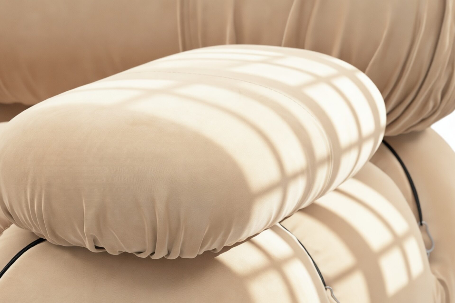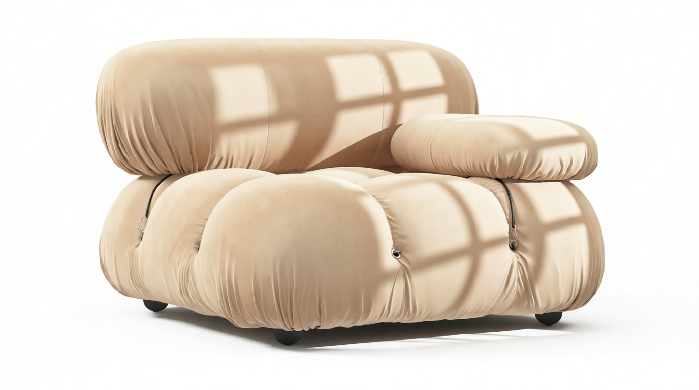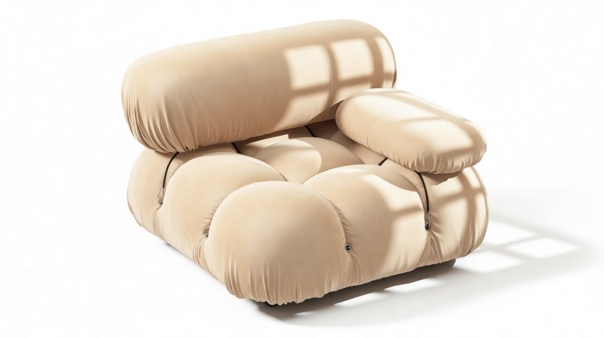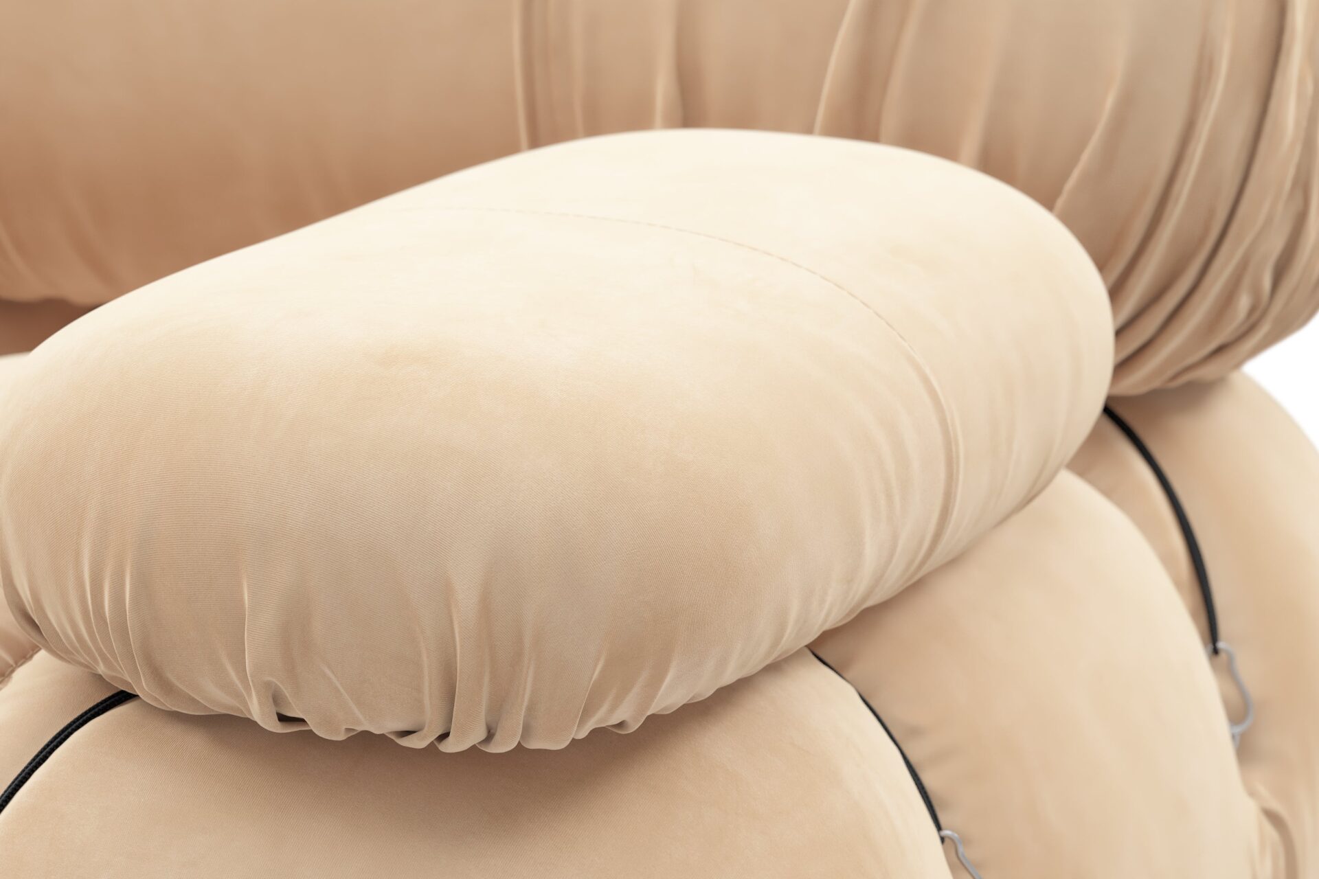 Step into the iconic '70s era with the Bellini sectional sofa, a modern homage to retro living. Its modular design allows effortless customization to suit your room layout and mood. Embraced by a new generation, the Bellini's versatile style features tie rods and rings for easy rearrangement, exuding relaxed luxury with plush ecru velvet upholstery on a sturdy wooden frame. Craft endless configurations to match your ever-evolving preferences and elevate your space with this liberating and stylish piece.