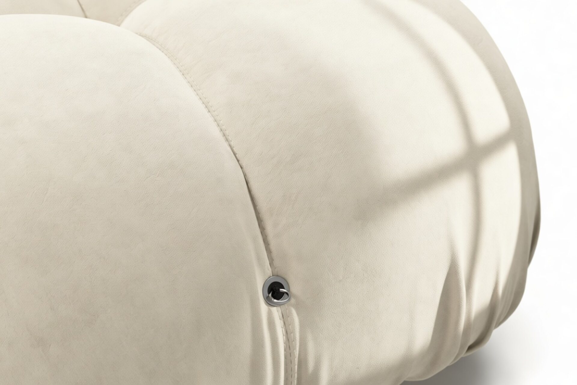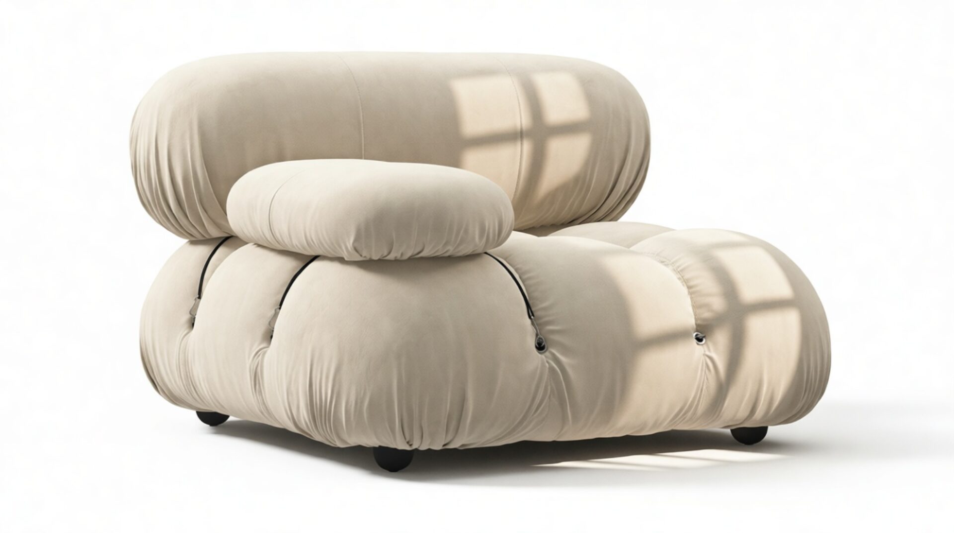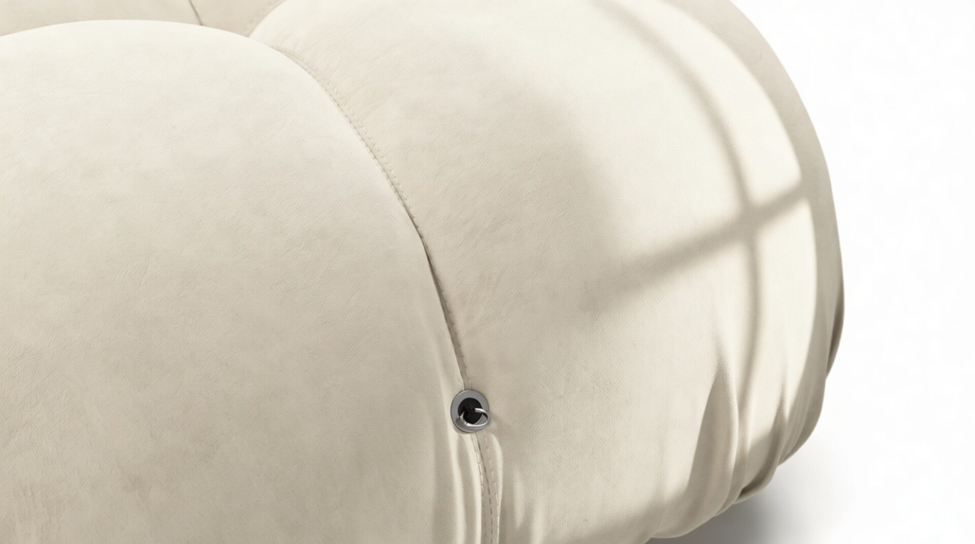 - Modular Instructions: Each section of the Mario Bellini Sofa is modular and is attached with string ties and carabiners. To assemble or rearrange your sofa, simply unclip the carabiners from one ring and attach to a corresponding ring on the module you wish to connect to.