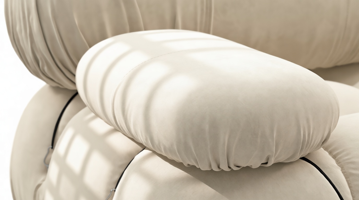 Step into the 1970s with the Bellini sectional sofa and its groovy vibes. This modular design provides freedom to customize your space effortlessly. Embraced by a new generation, its tie rods and rings offer adaptability. Crafted with a sturdy frame and plush foam in Eggshell Vegan Suede, it exudes relaxed luxury, inviting you to unwind in style.