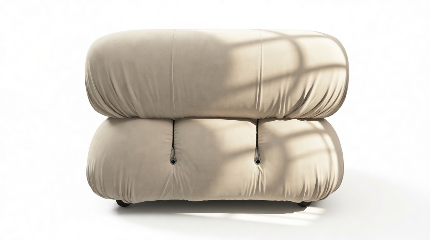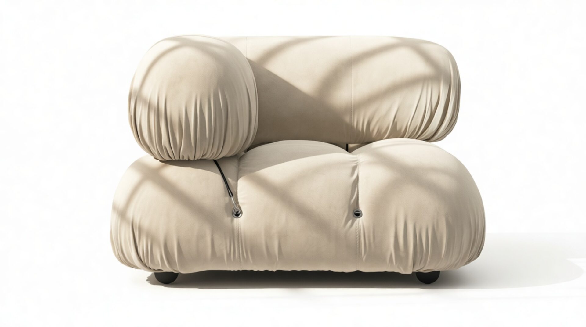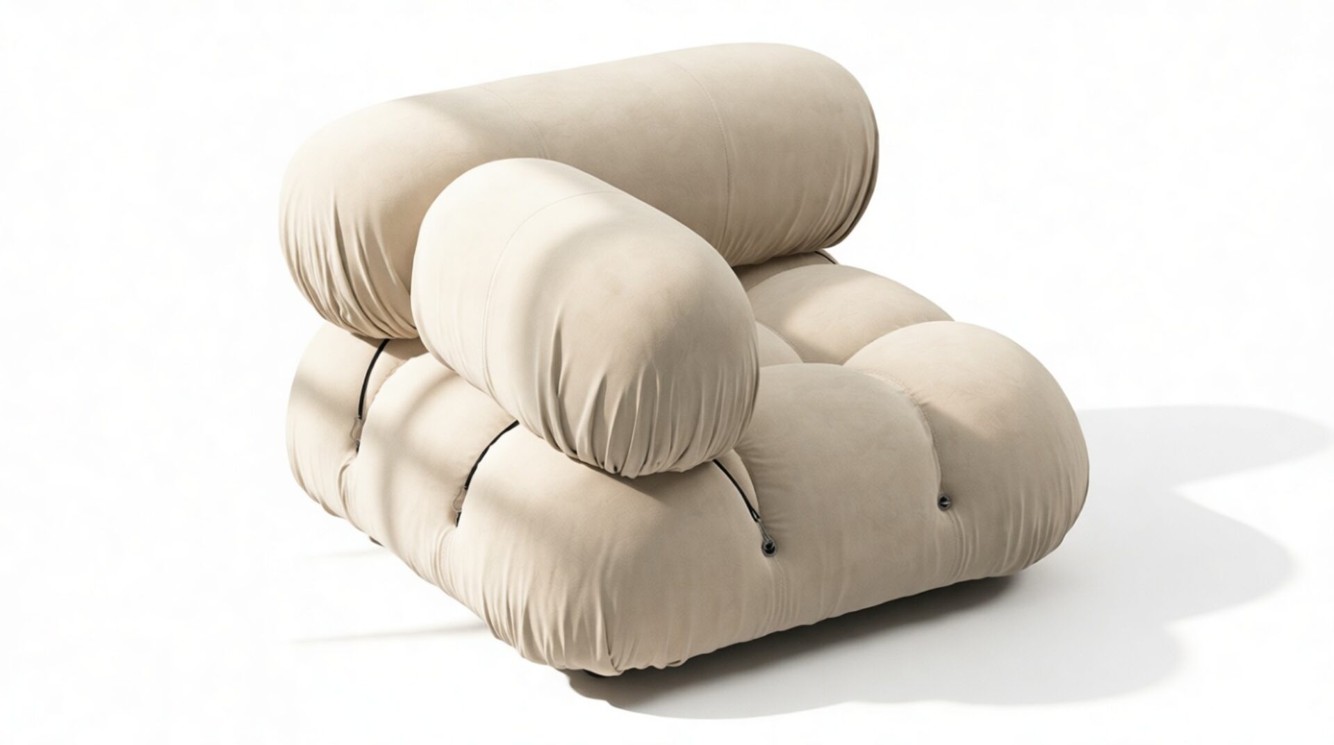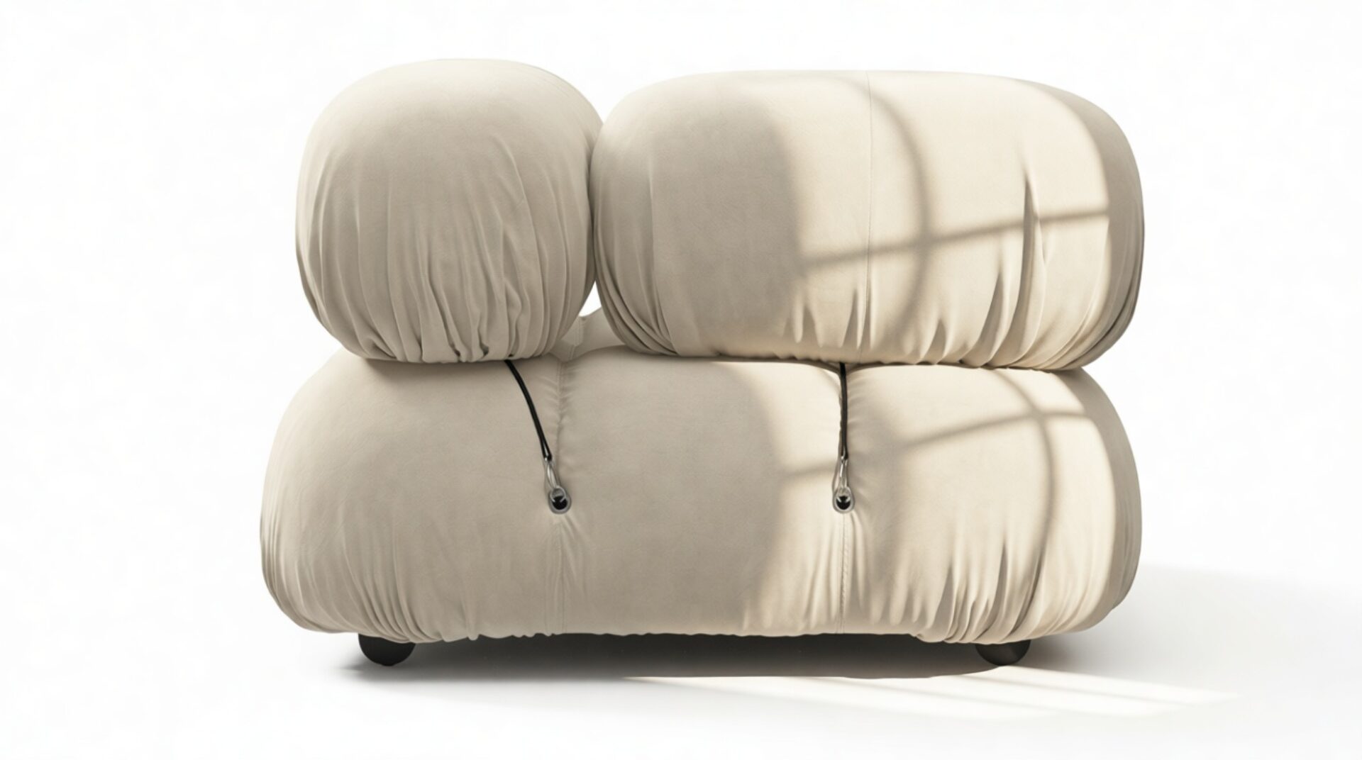 - Modular Instructions: Each section of the Mario Bellini Sofa is modular and is attached with string ties and carabiners. To assemble or rearrange your sofa, simply unclip the carabiners from one ring and attach to a corresponding ring on the module you wish to connect to.