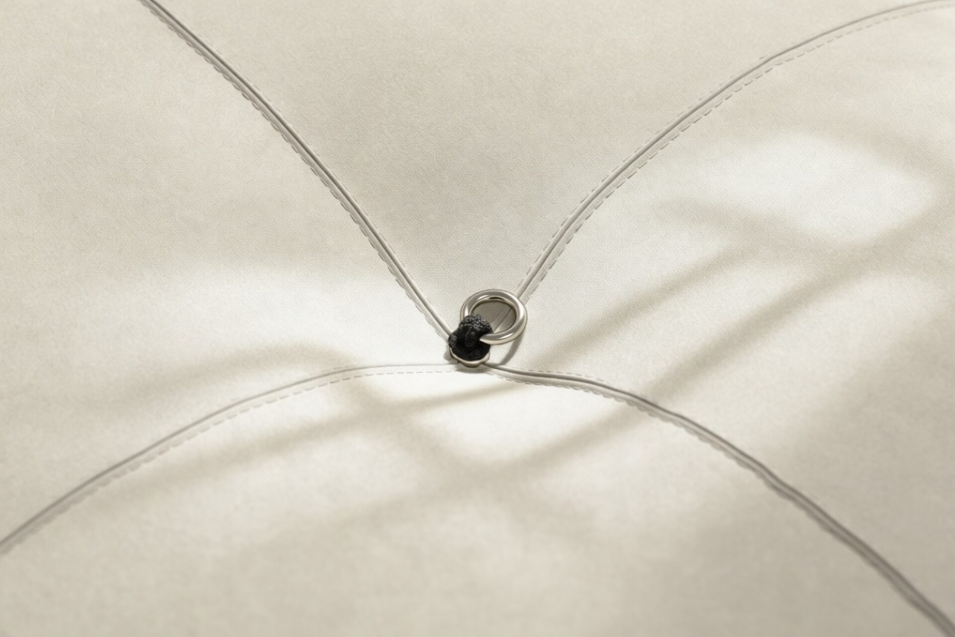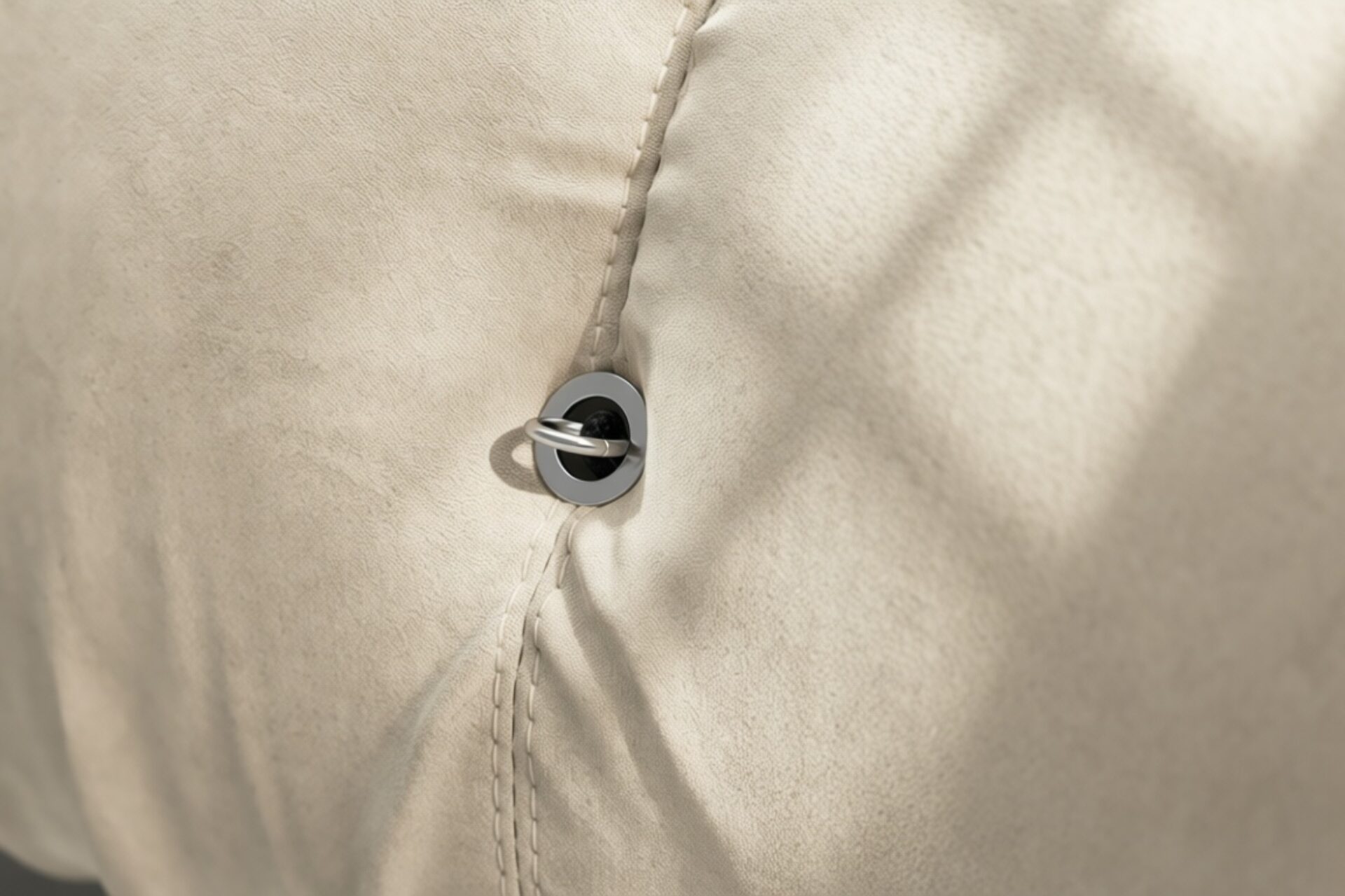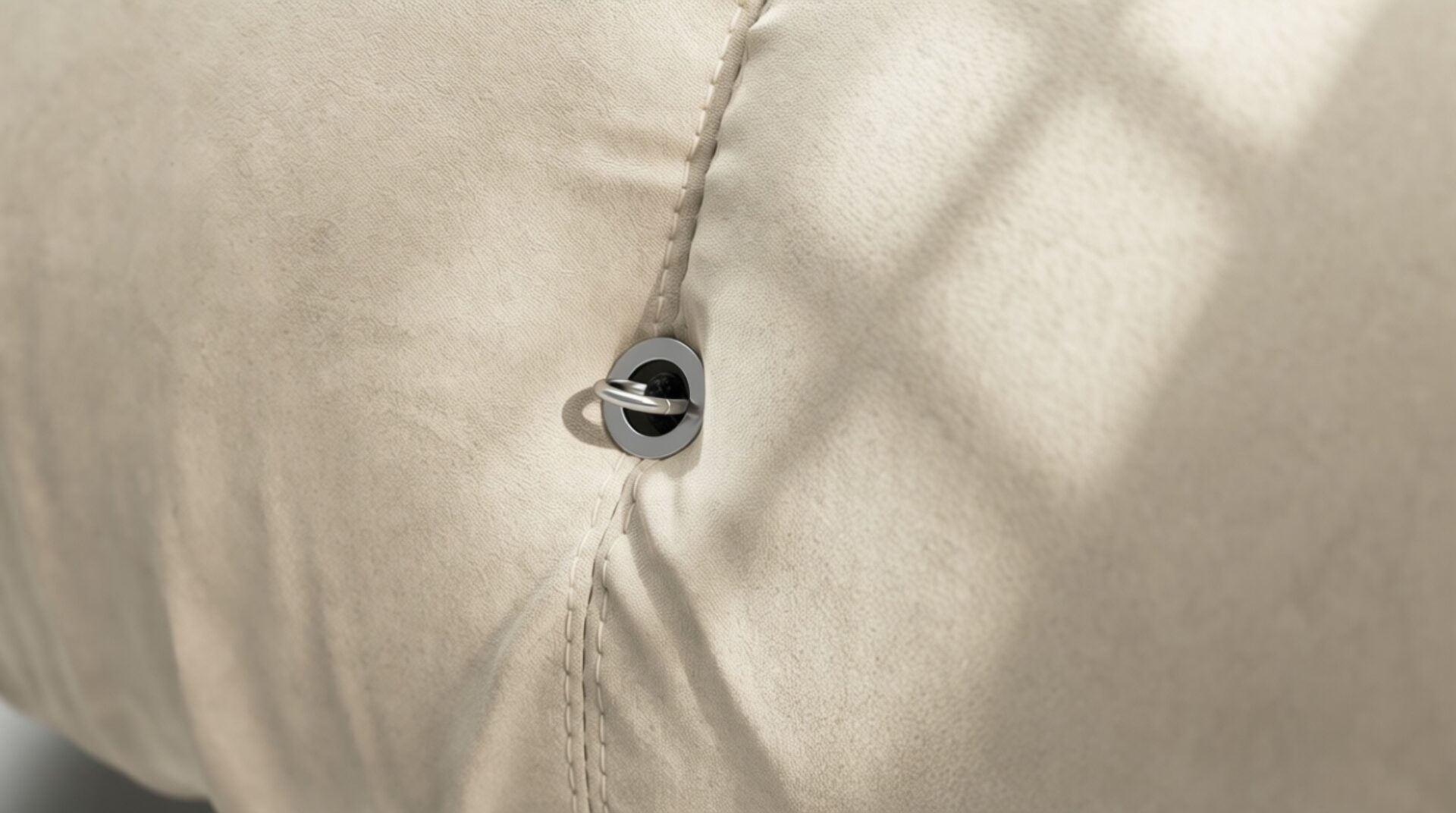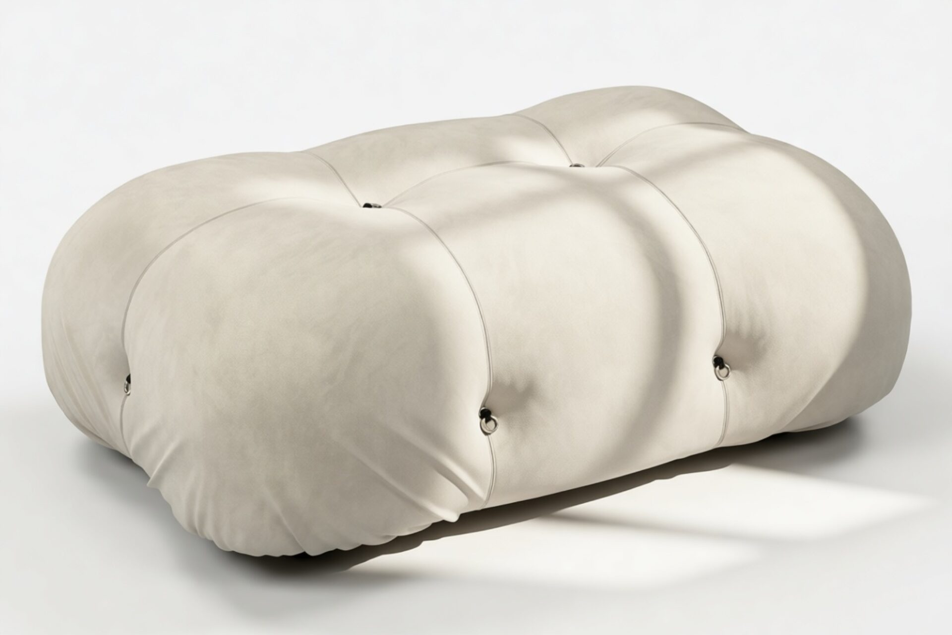 - Modular Instructions: Each section of the Mario Bellini Sofa is modular and is attached with string ties and carabiners. To assemble or rearrange your sofa, simply unclip the carabiners from one ring and attach to a corresponding ring on the module you wish to connect to.