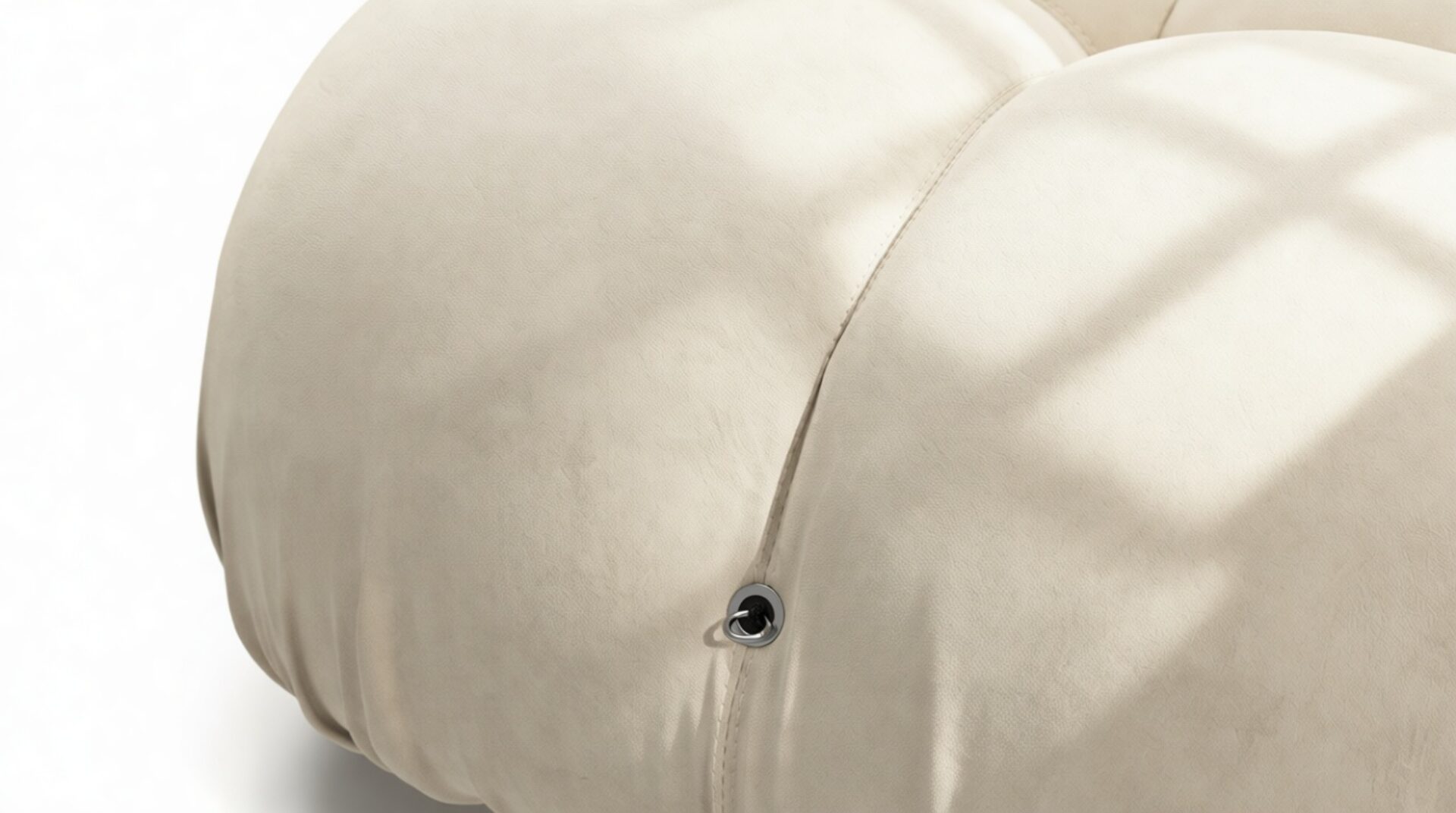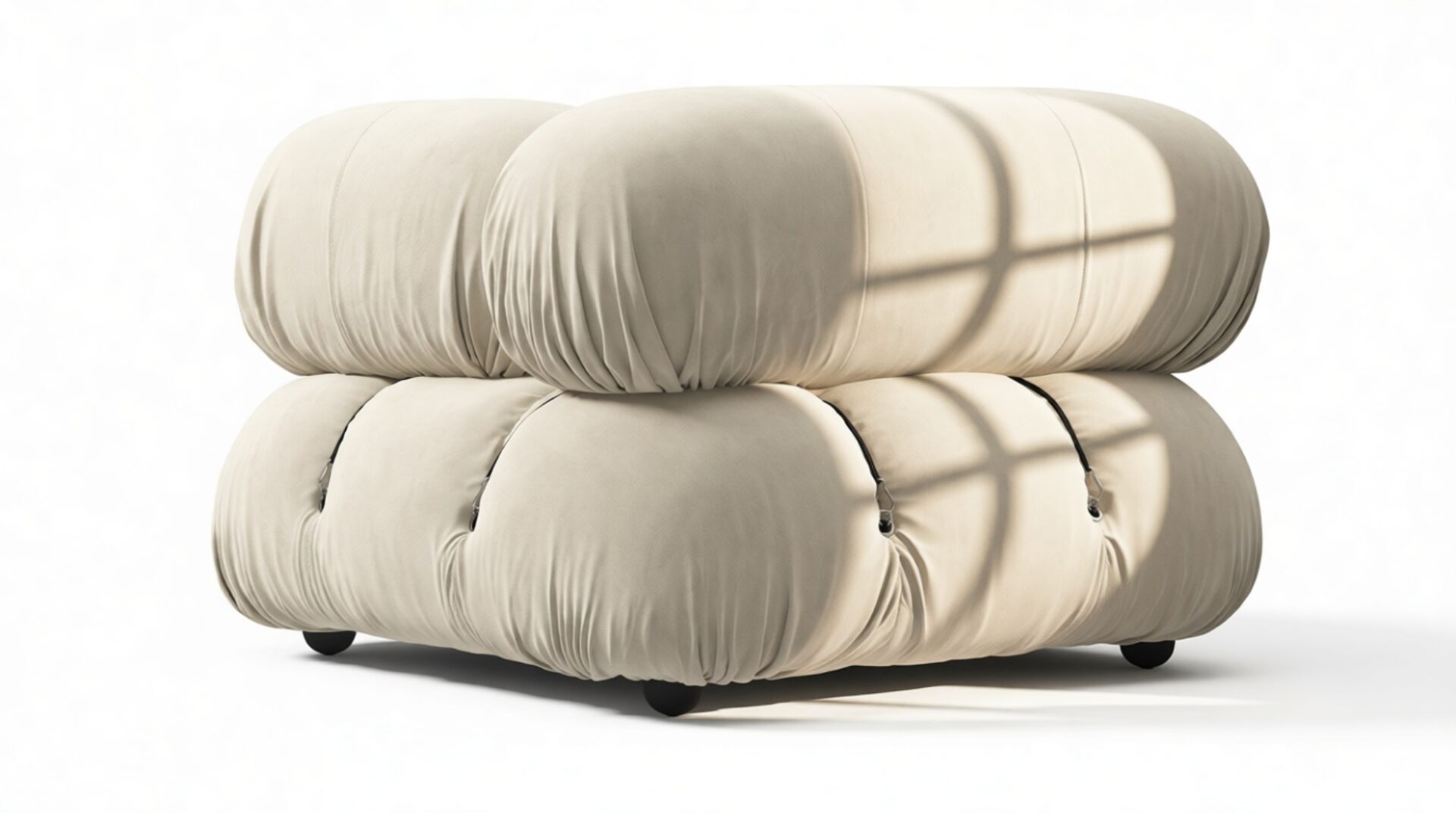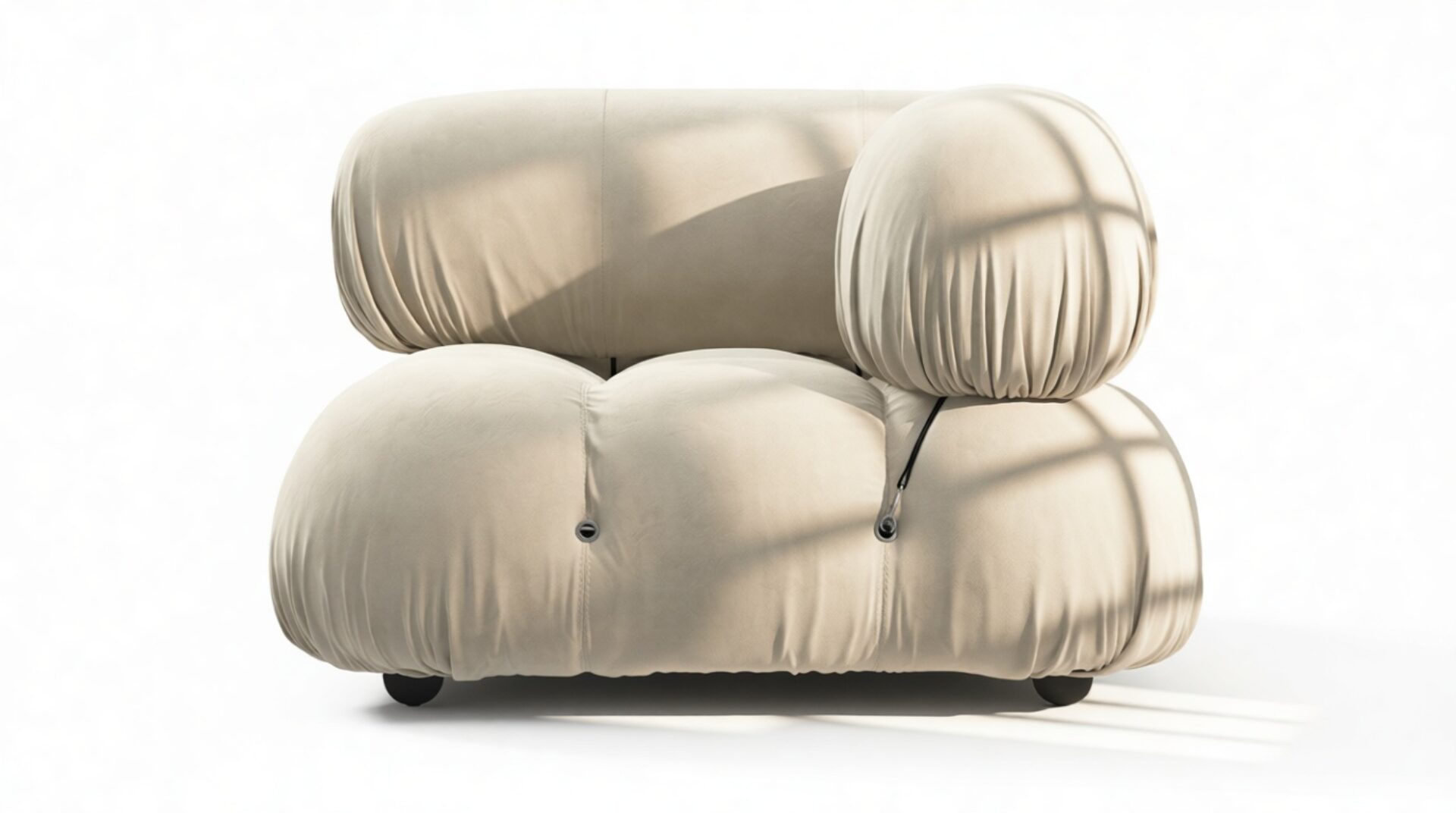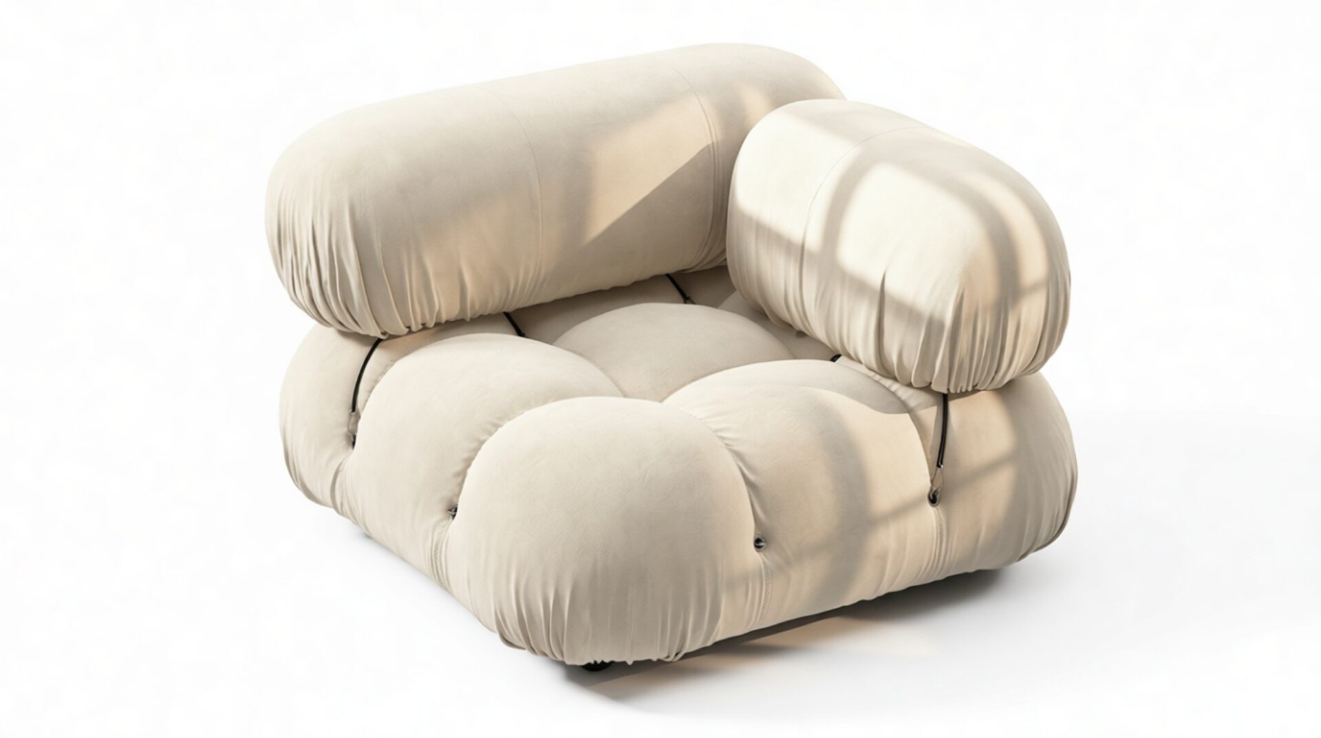 - Modular Instructions: Each section of the Mario Bellini Sofa is modular and is attached with string ties and carabiners. To assemble or rearrange your sofa, simply unclip the carabiners from one ring and attach to a corresponding ring on the module you wish to connect to.