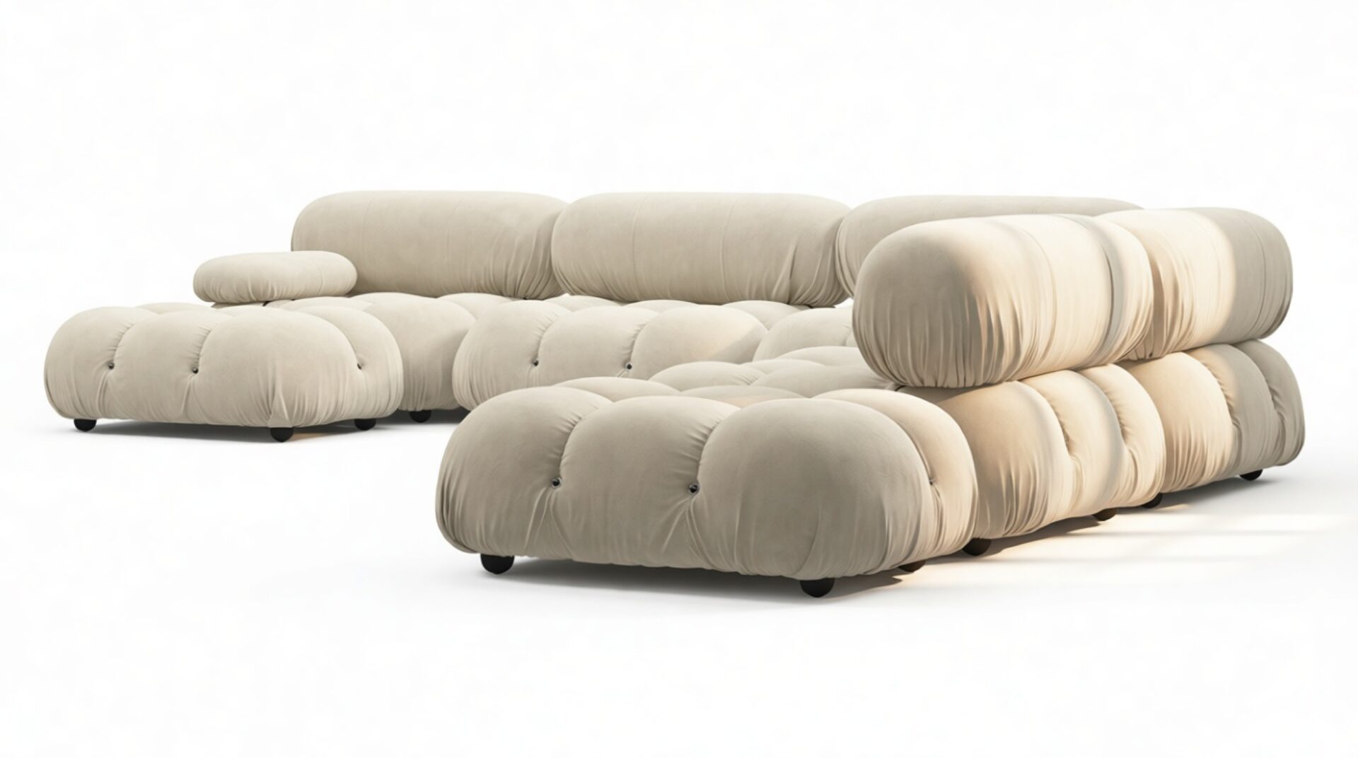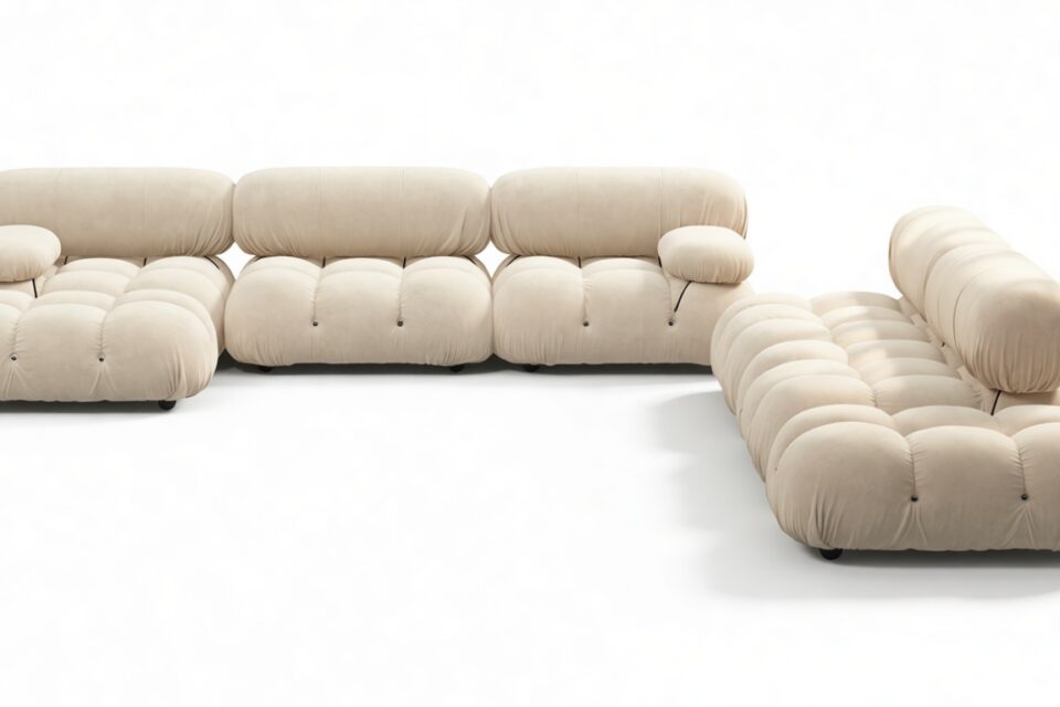 Embodying the essence of the 1970s era, the Bellini Sectional Sofa redefines the concept of open-plan living, offering a refreshing departure from traditional, bulky furniture. This contemporary sectional introduces endless possibilities for customizing your living space to match your style, ambiance, and needs – all without the hassle of full-scale redecoration.