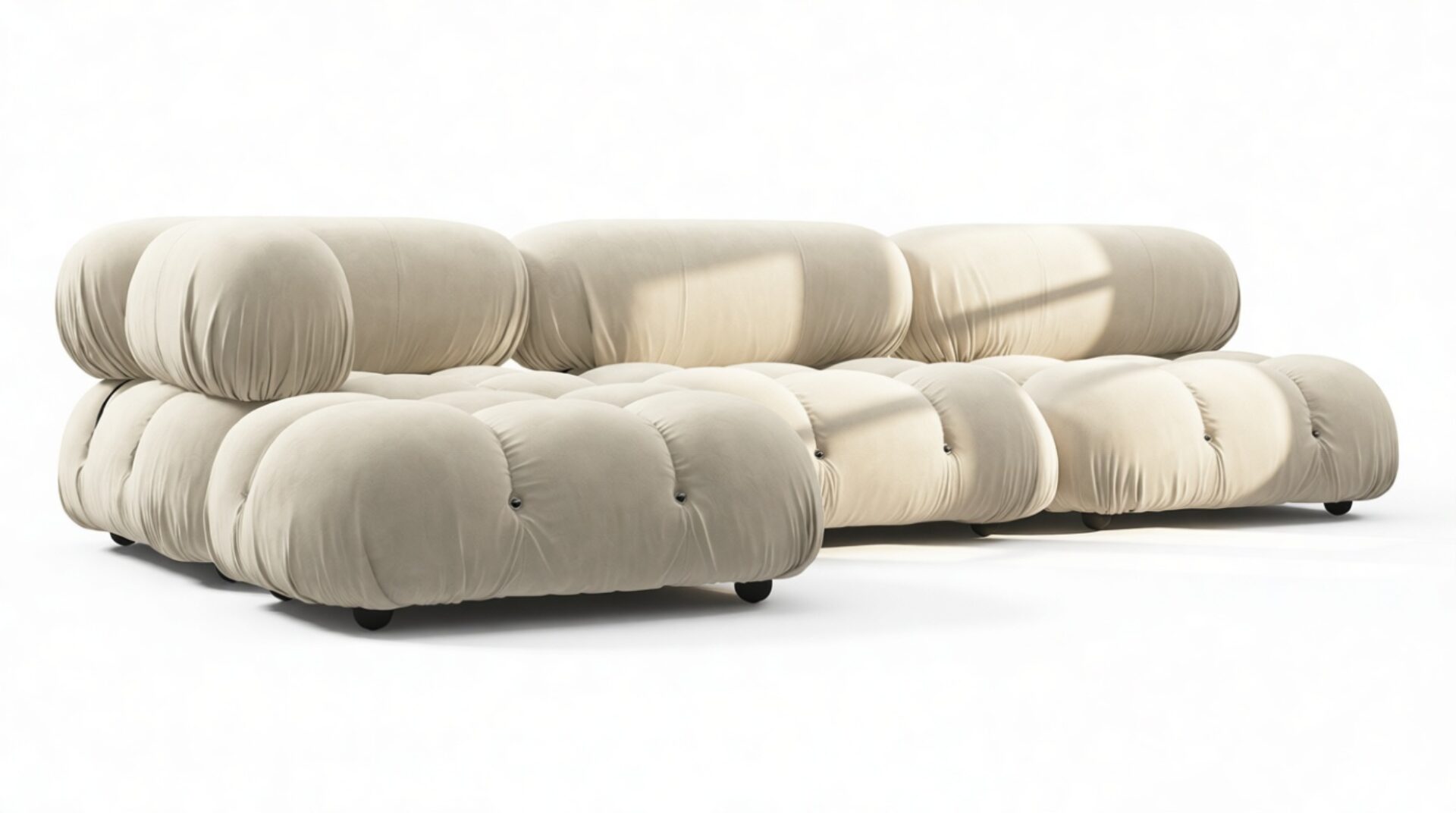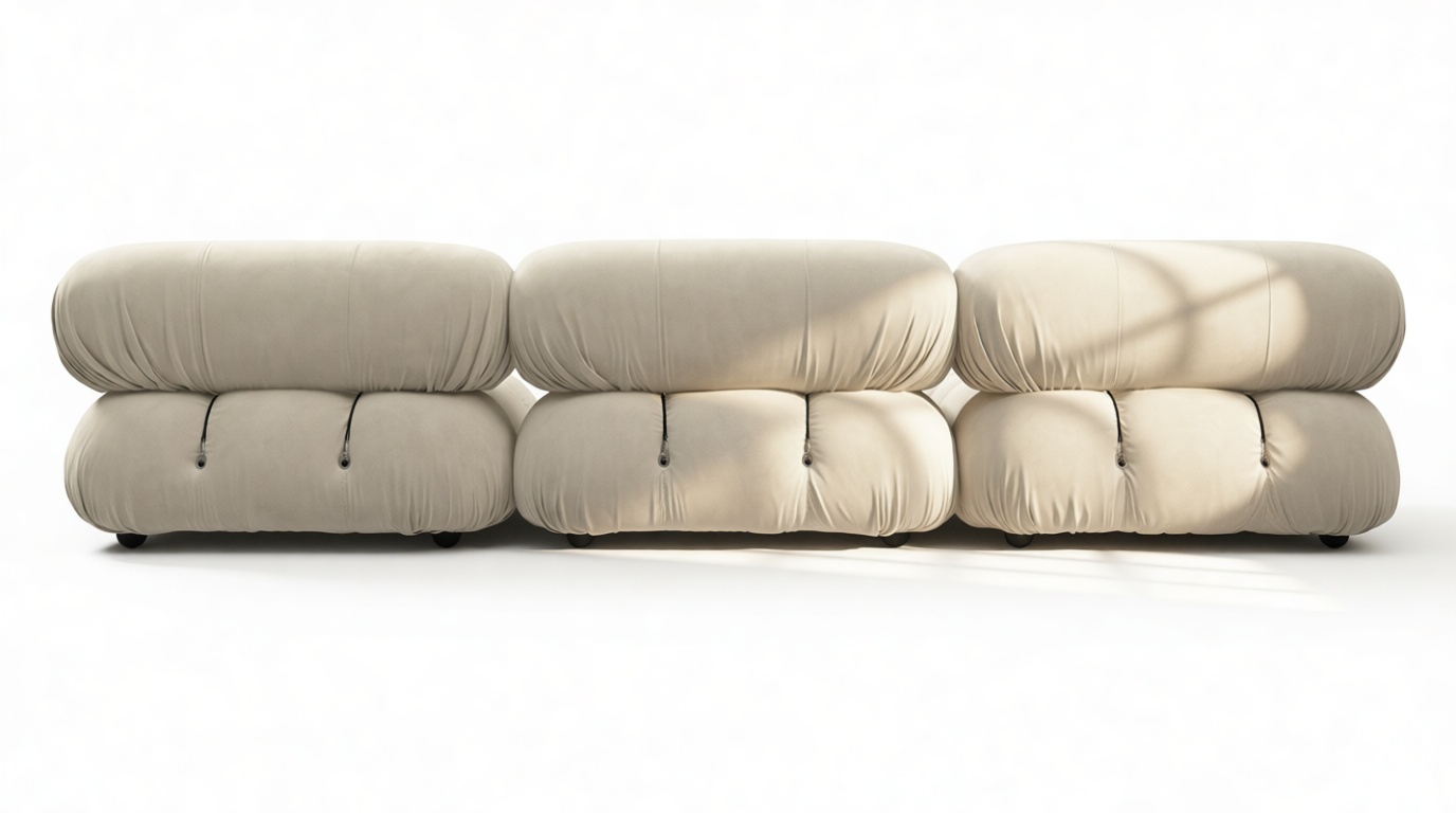 Step back into the funky '70s scene with the Bellini sectional sofa, celebrating an era of carefree living. Its modern modular design allows you to effortlessly customize your living space with an Eggshell Vegan Suede touch. Embrace its liberating essence and adjustable layout, crafted with a sturdy wooden frame and plush cold-pressed foam for ultimate comfort and style.