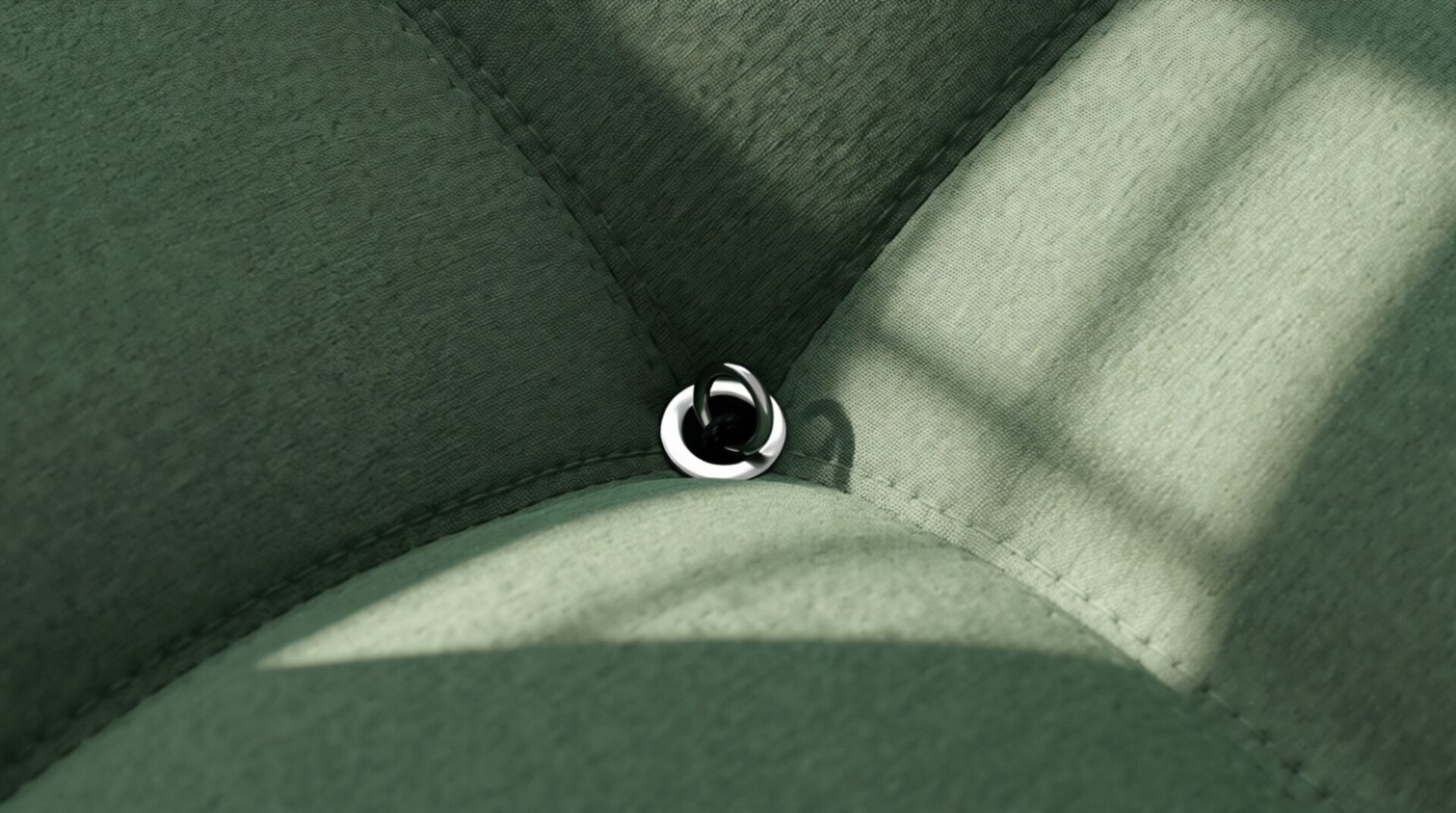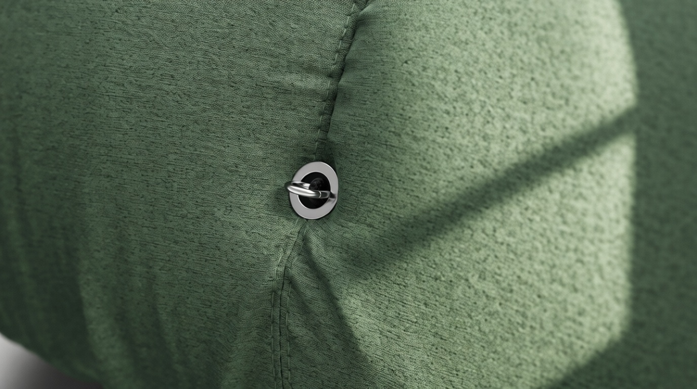 - Modular Instructions: Each section of the Mario Bellini Sofa is modular and is attached with string ties and carabiners. To assemble or rearrange your sofa, simply unclip the carabiners from one ring and attach to a corresponding ring on the module you wish to connect to.
