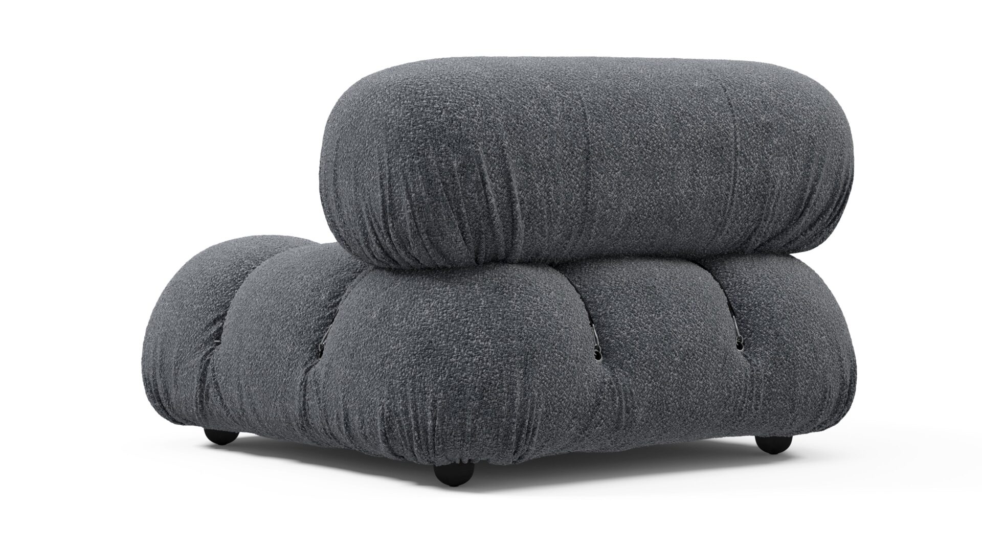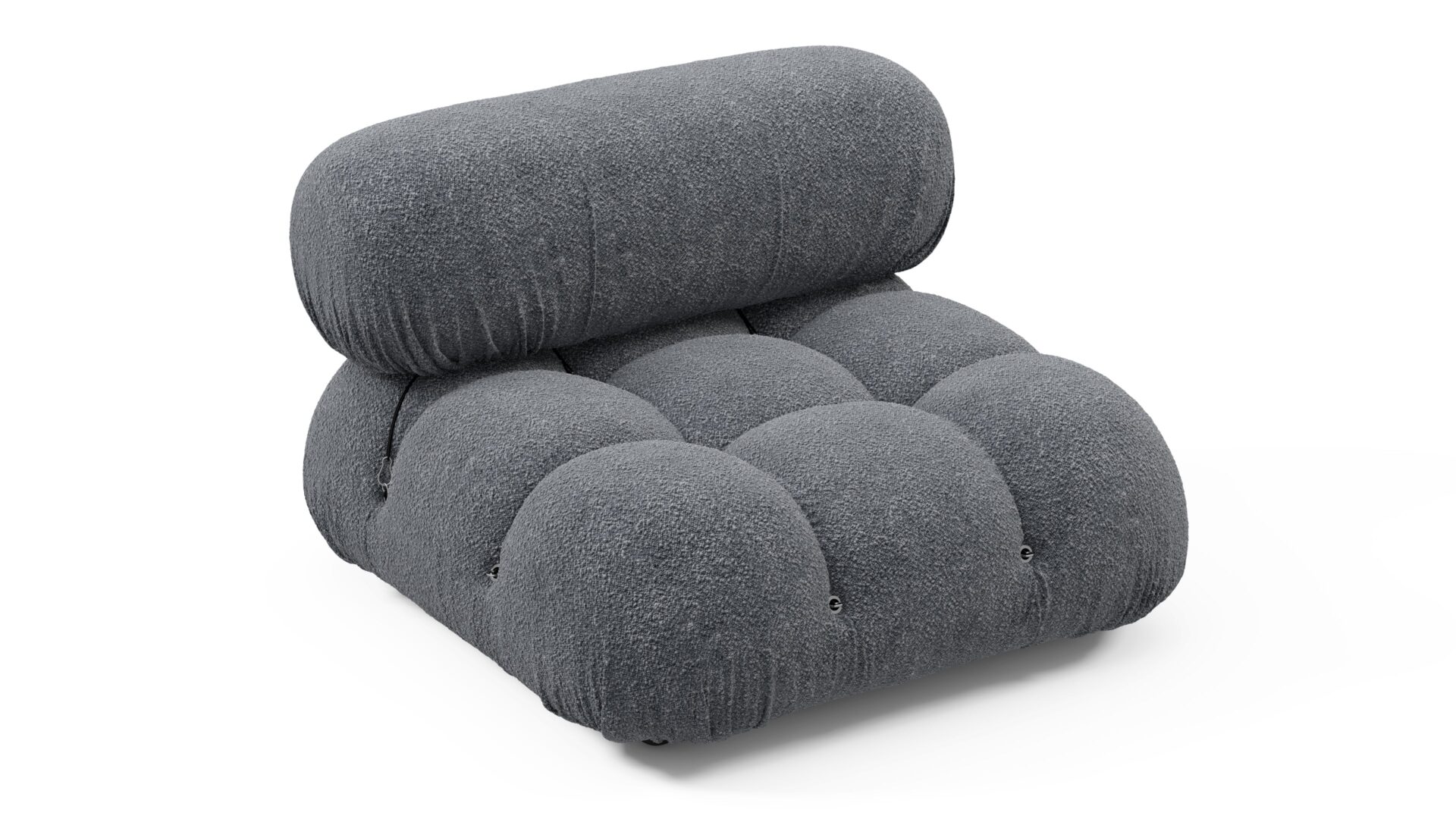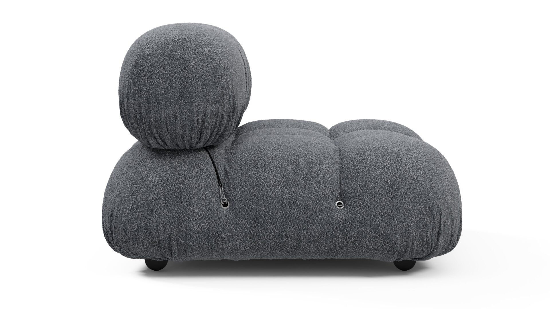 Transport yourself to the retro 1970s era with the Bellini sectional sofa, celebrating groovy vibes and carefree living. Defying tradition, this chic piece brings a sense of freedom to your space. Easily customizable with its modular design, the Bellini in Gray Boucle combines style and adaptability, allowing you to create your ideal seating arrangement effortlessly. Relish in its low-profile luxury, featuring a sturdy wooden frame and plush cold-pressed foam wrapped in soft fabric. Invite relaxation with its inviting cushions, embodying comfort with a touch of elegance.