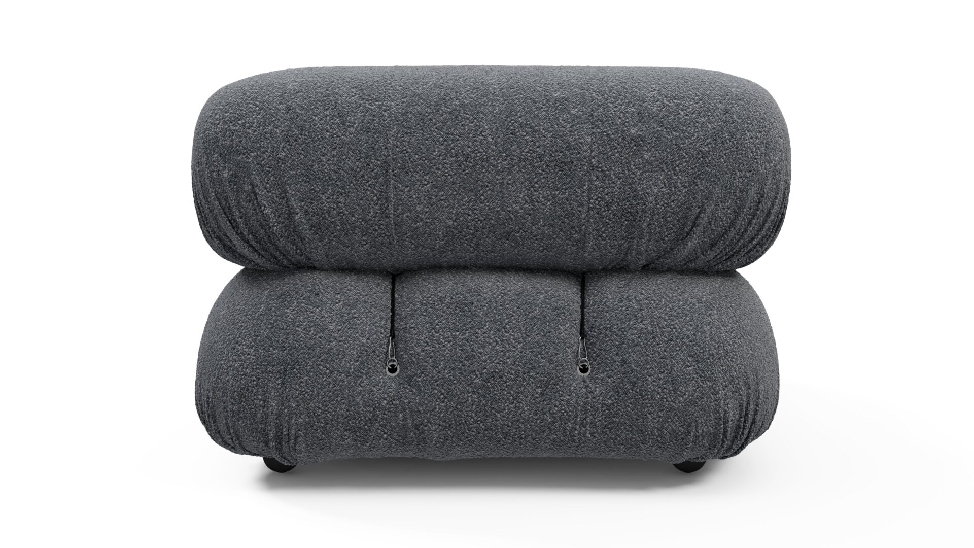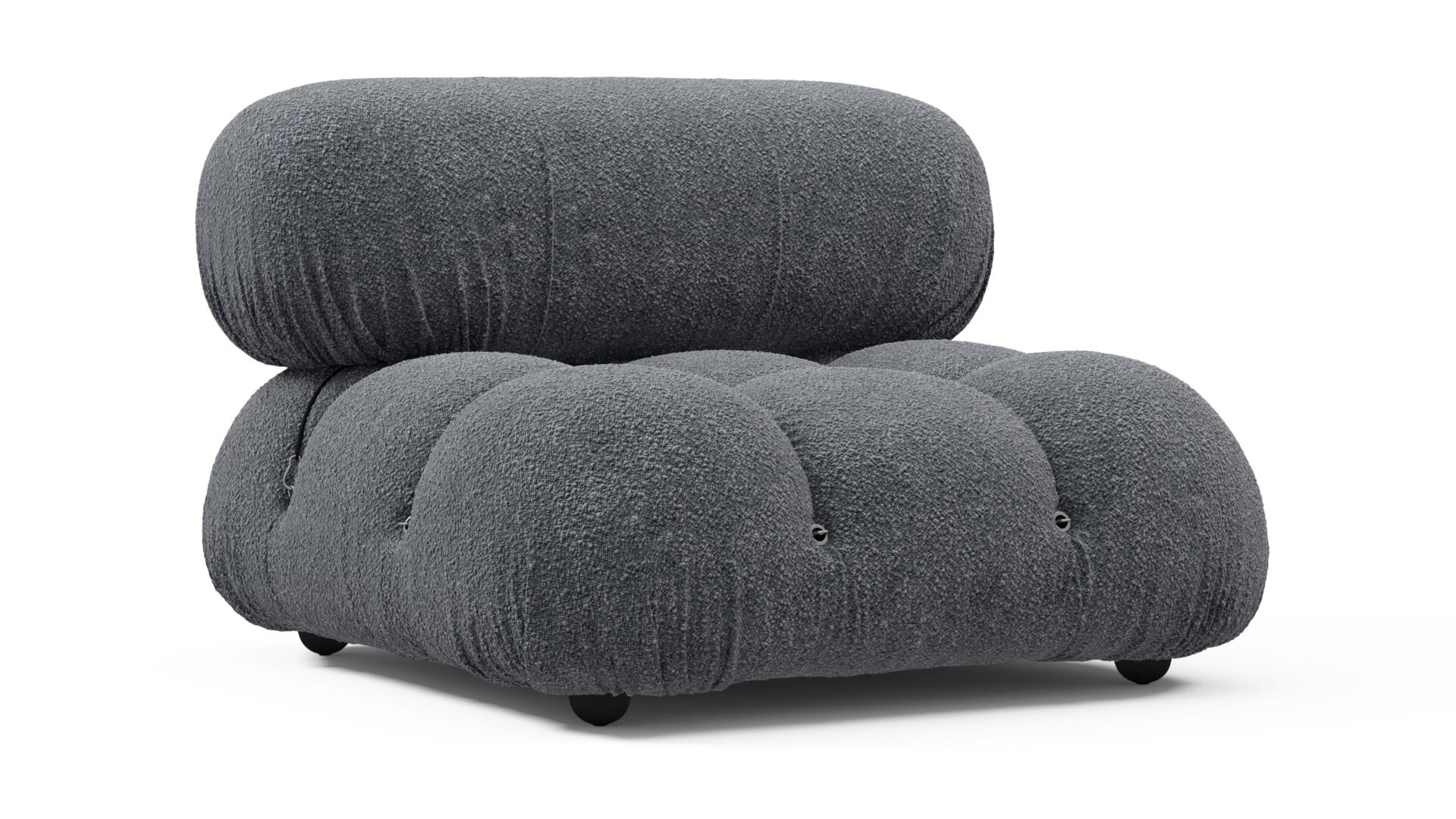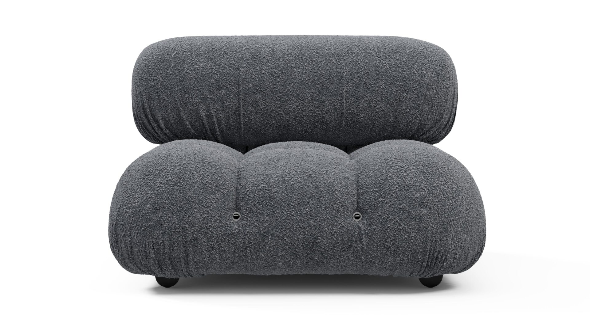 Transport yourself to the retro 1970s era with the Bellini sectional sofa, celebrating groovy vibes and carefree living. Defying tradition, this chic piece brings a sense of freedom to your space. Easily customizable with its modular design, the Bellini in Gray Boucle combines style and adaptability, allowing you to create your ideal seating arrangement effortlessly. Relish in its low-profile luxury, featuring a sturdy wooden frame and plush cold-pressed foam wrapped in soft fabric. Invite relaxation with its inviting cushions, embodying comfort with a touch of elegance.