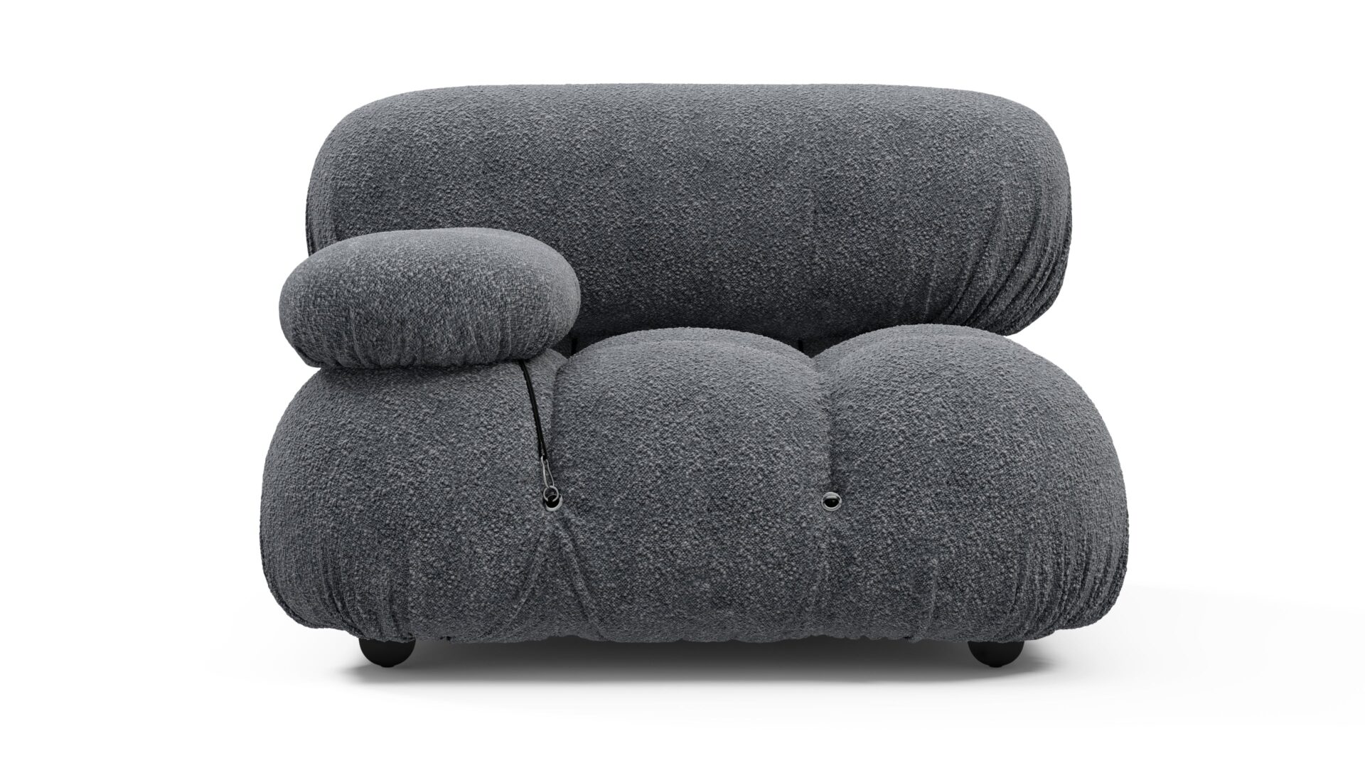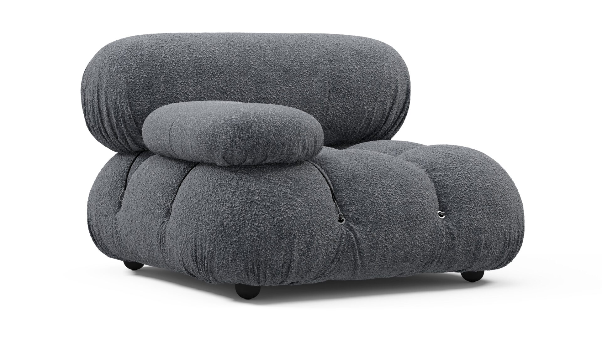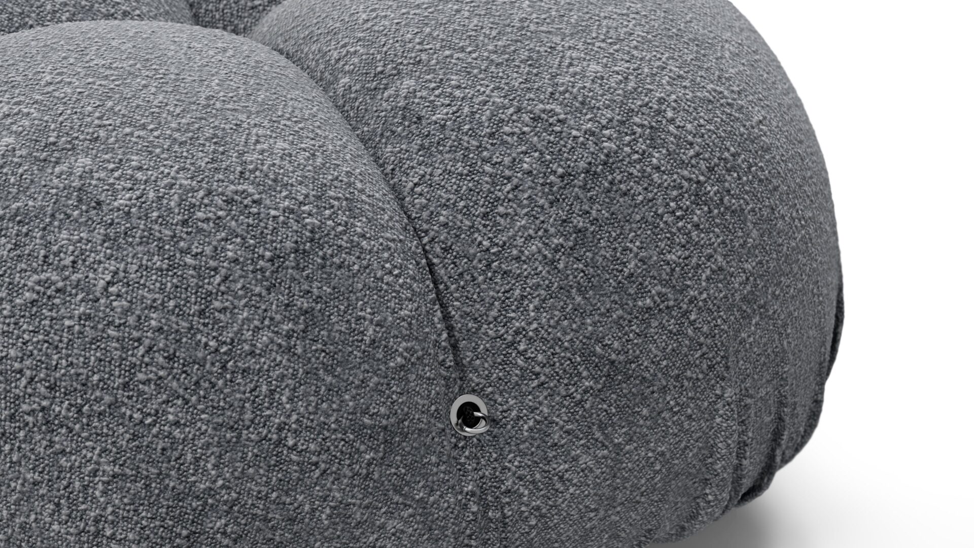 Step into the 1970s with the Bellini sectional sofa, celebrating carefree living with a touch of groovy vibes. Defying conventions, this modular sofa offers liberation and customization for your space. Admired by a new generation, the Bellini's tie rods and rings enable effortless rearrangement. Crafted with a sturdy wooden frame and plush cold-pressed foam upholstered in Gray Boucle, its low-profile design exudes relaxed luxury. Each inviting cushion beckons you to unwind in style, making it a versatile and comfortable choice for any setting.