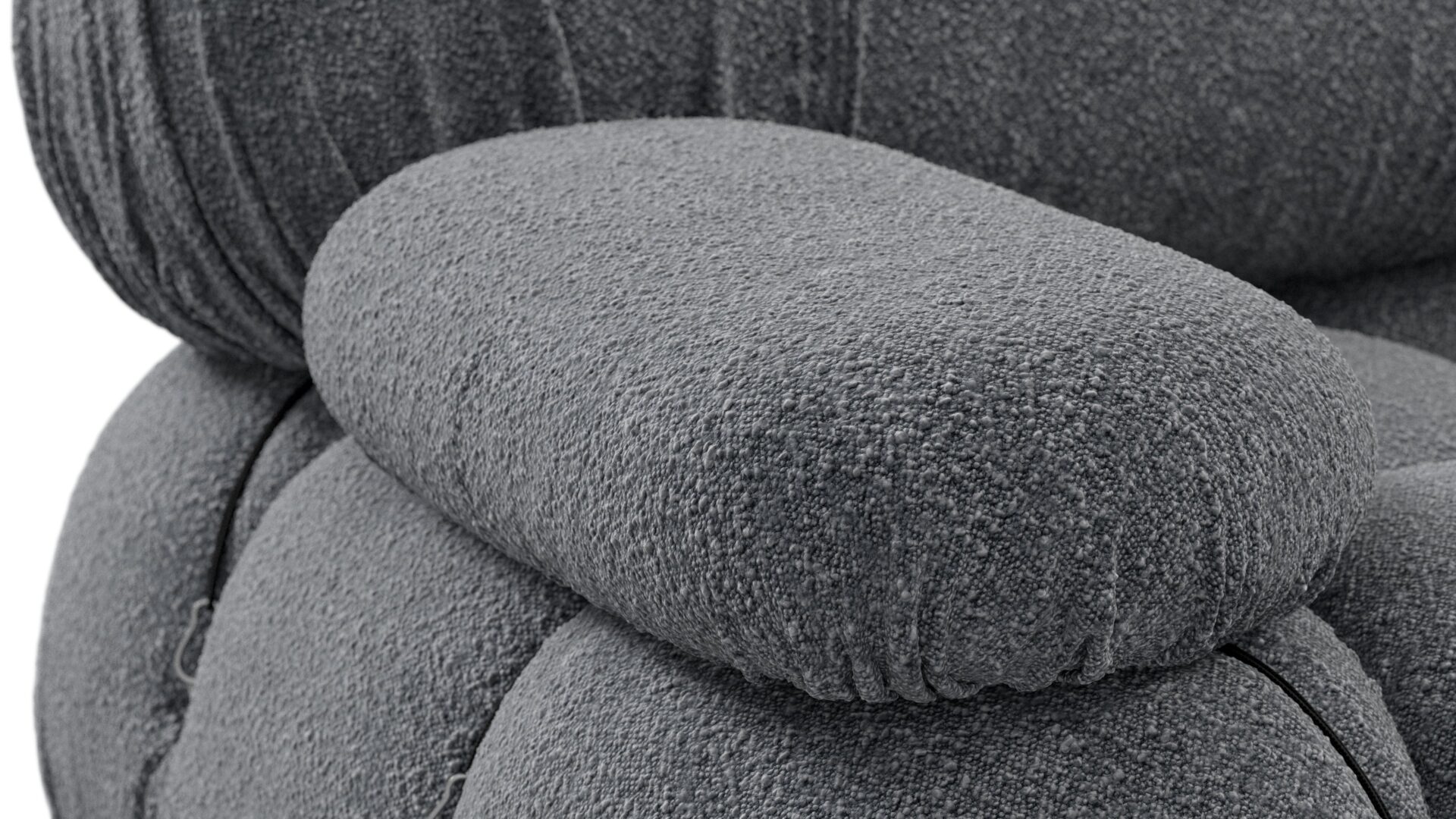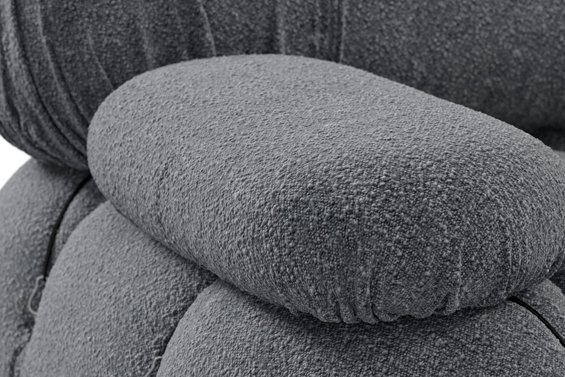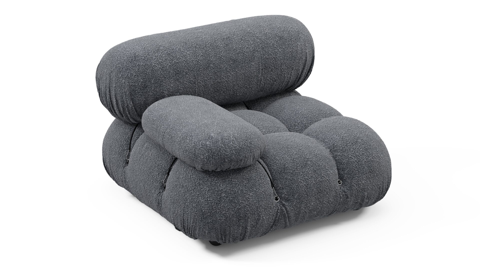 Step into the 1970s with the Bellini sectional sofa, celebrating carefree living with a touch of groovy vibes. Defying conventions, this modular sofa offers liberation and customization for your space. Admired by a new generation, the Bellini's tie rods and rings enable effortless rearrangement. Crafted with a sturdy wooden frame and plush cold-pressed foam upholstered in Gray Boucle, its low-profile design exudes relaxed luxury. Each inviting cushion beckons you to unwind in style, making it a versatile and comfortable choice for any setting.