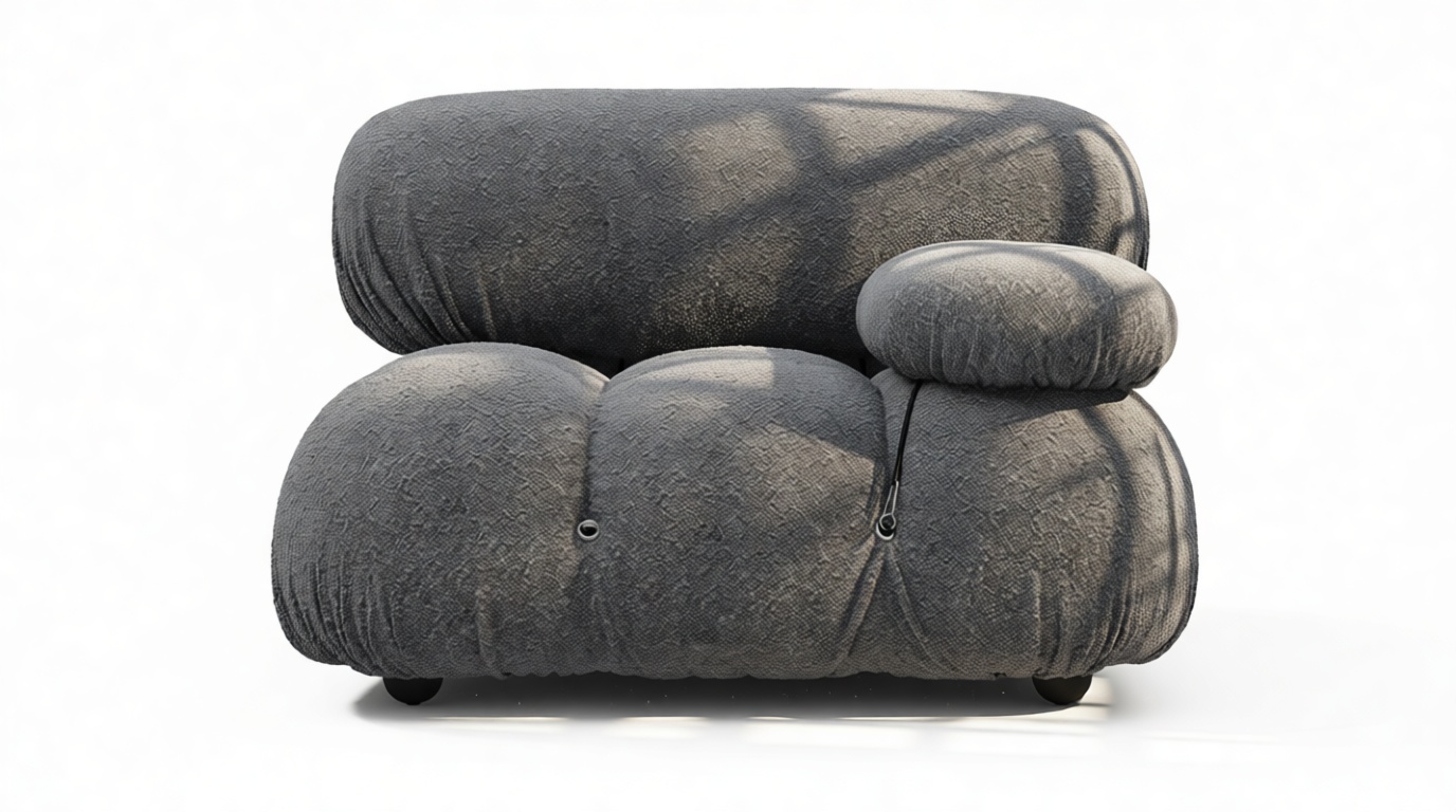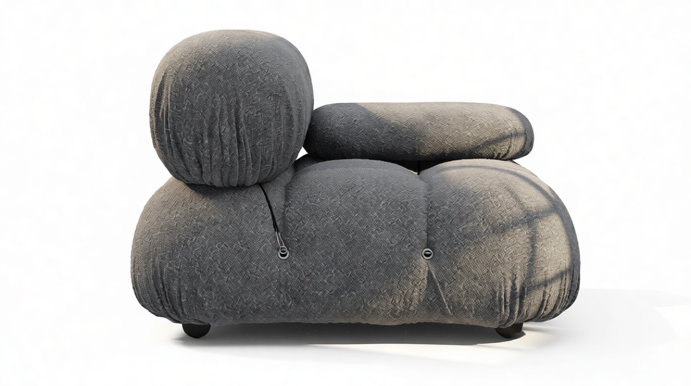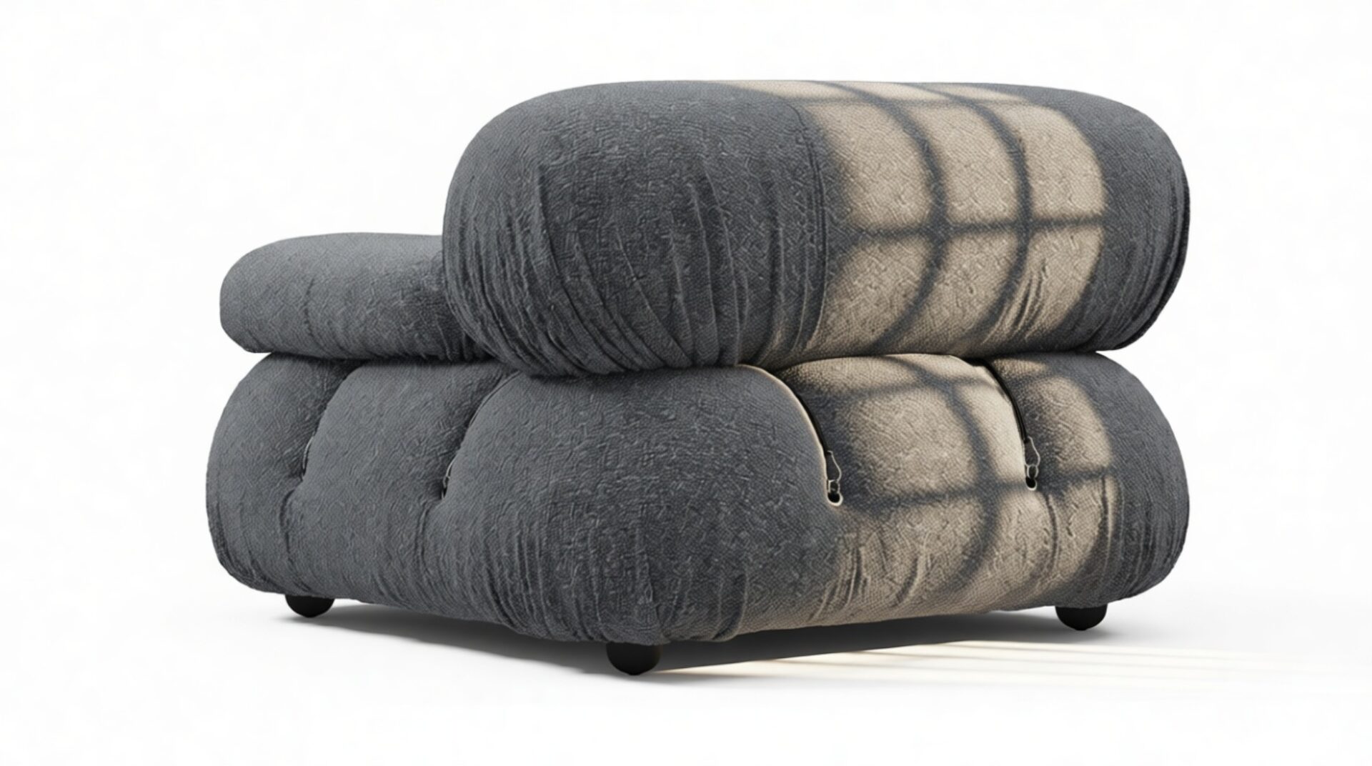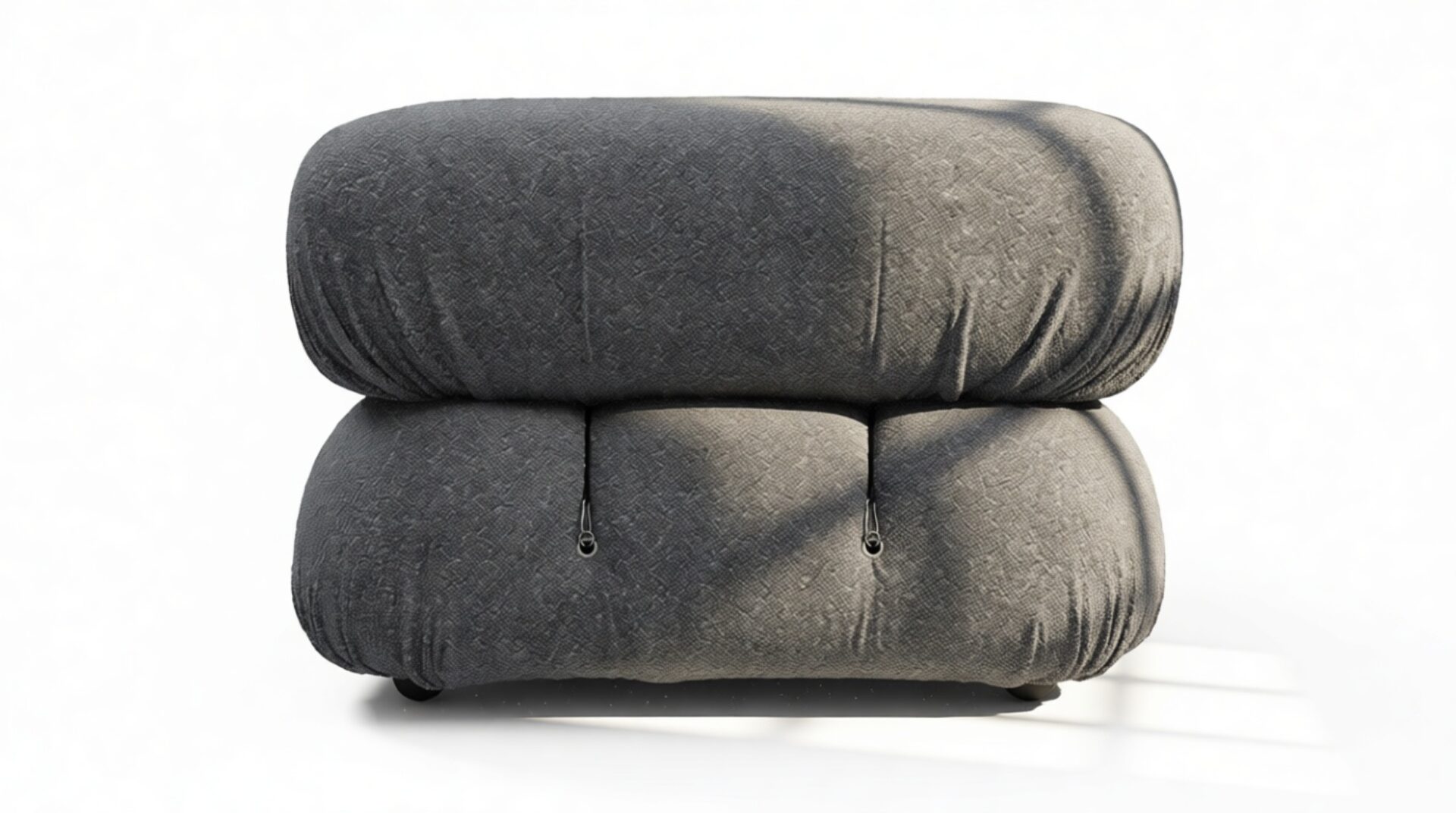 - Modular Instructions: Each section of the Mario Bellini Sofa is modular and is attached with string ties and carabiners. To assemble or rearrange your sofa, simply unclip the carabiners from one ring and attach to a corresponding ring on the module you wish to connect to.