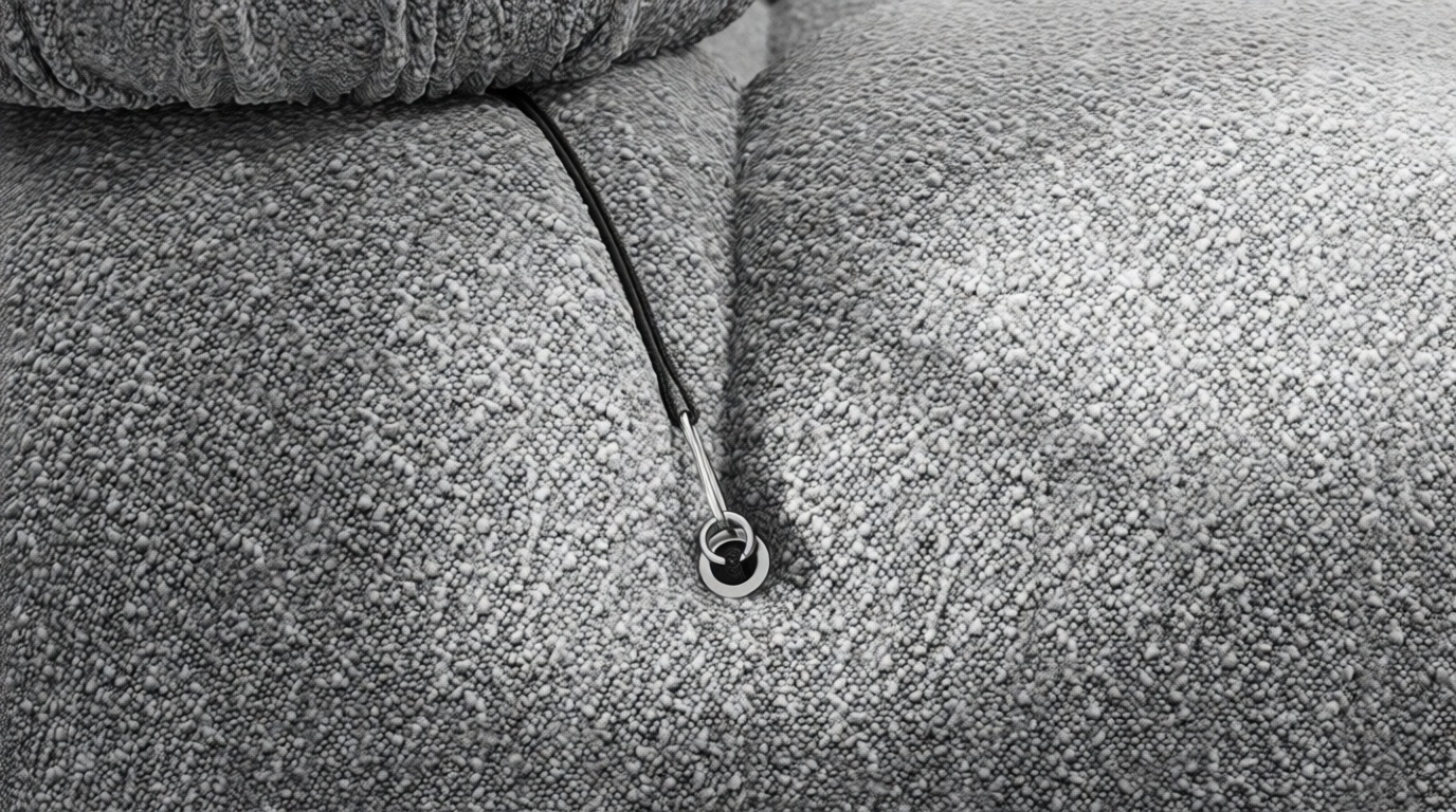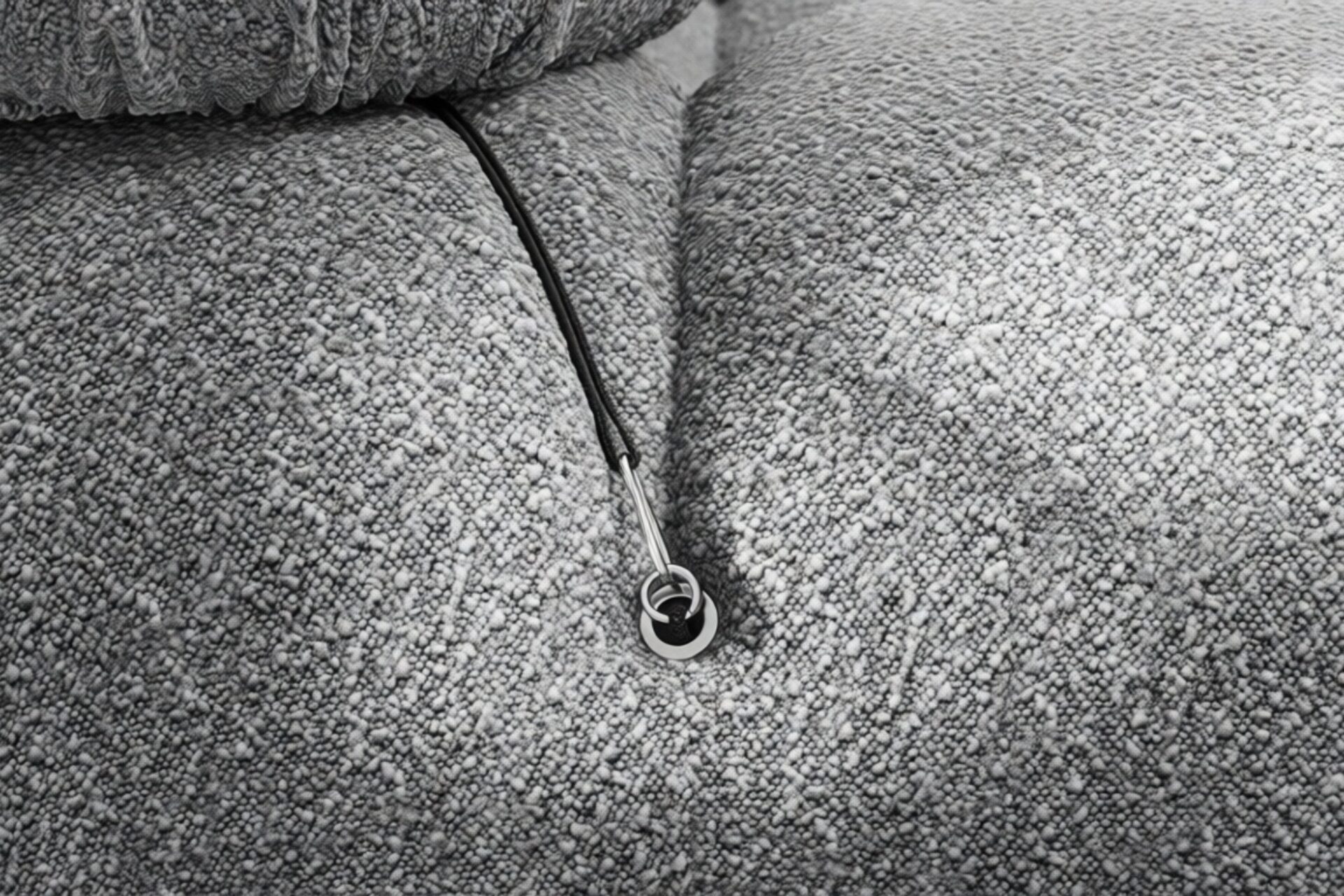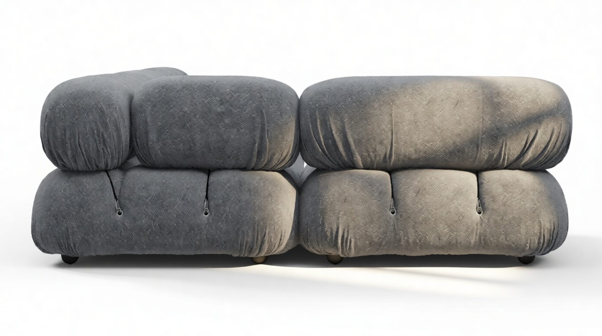 - Modular Instructions: Each section of the Mario Bellini Sofa is modular and is attached with string ties and carabiners. To assemble or rearrange your sofa, simply unclip the carabiners from one ring and attach to a corresponding ring on the module you wish to connect to.
