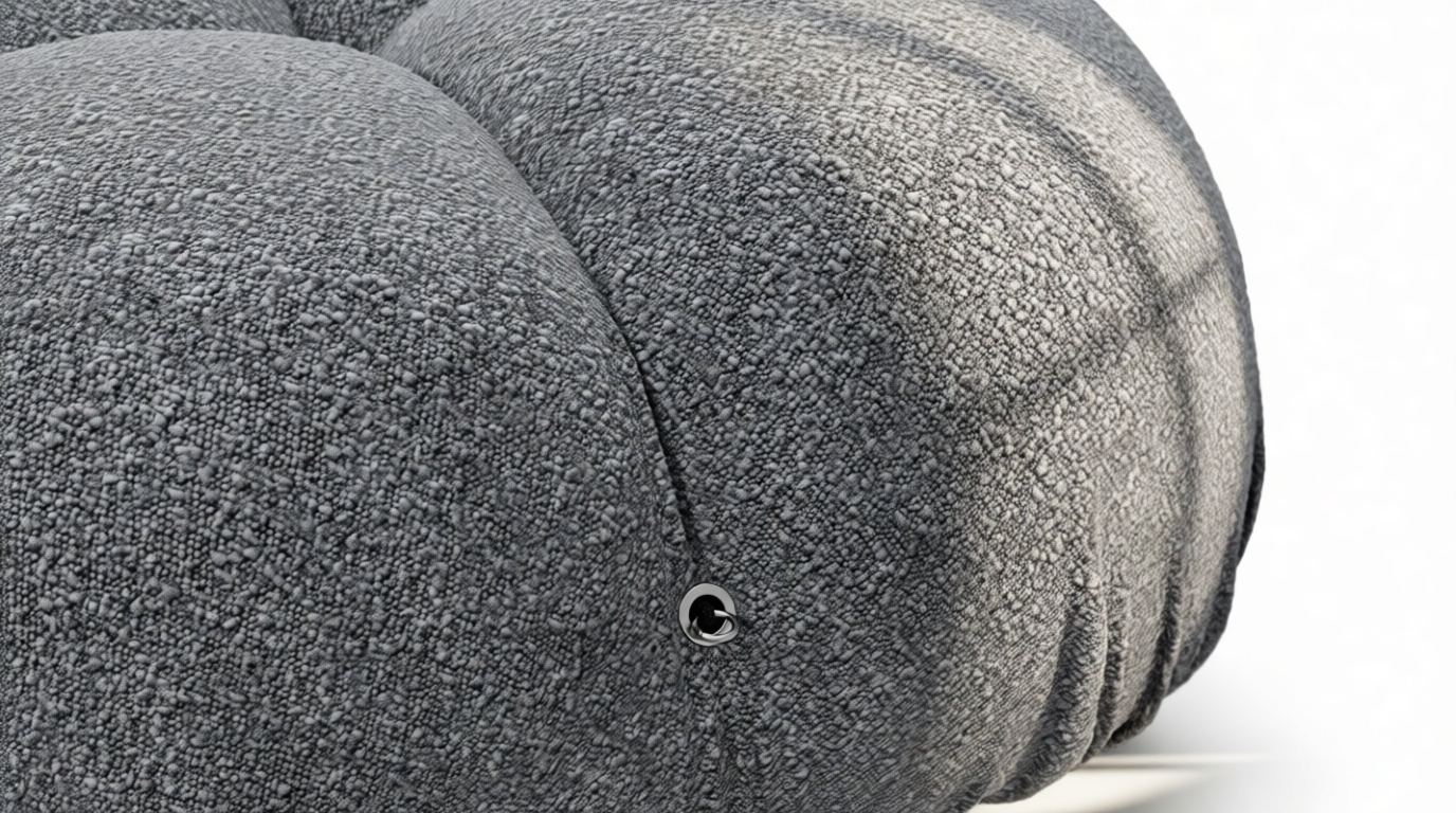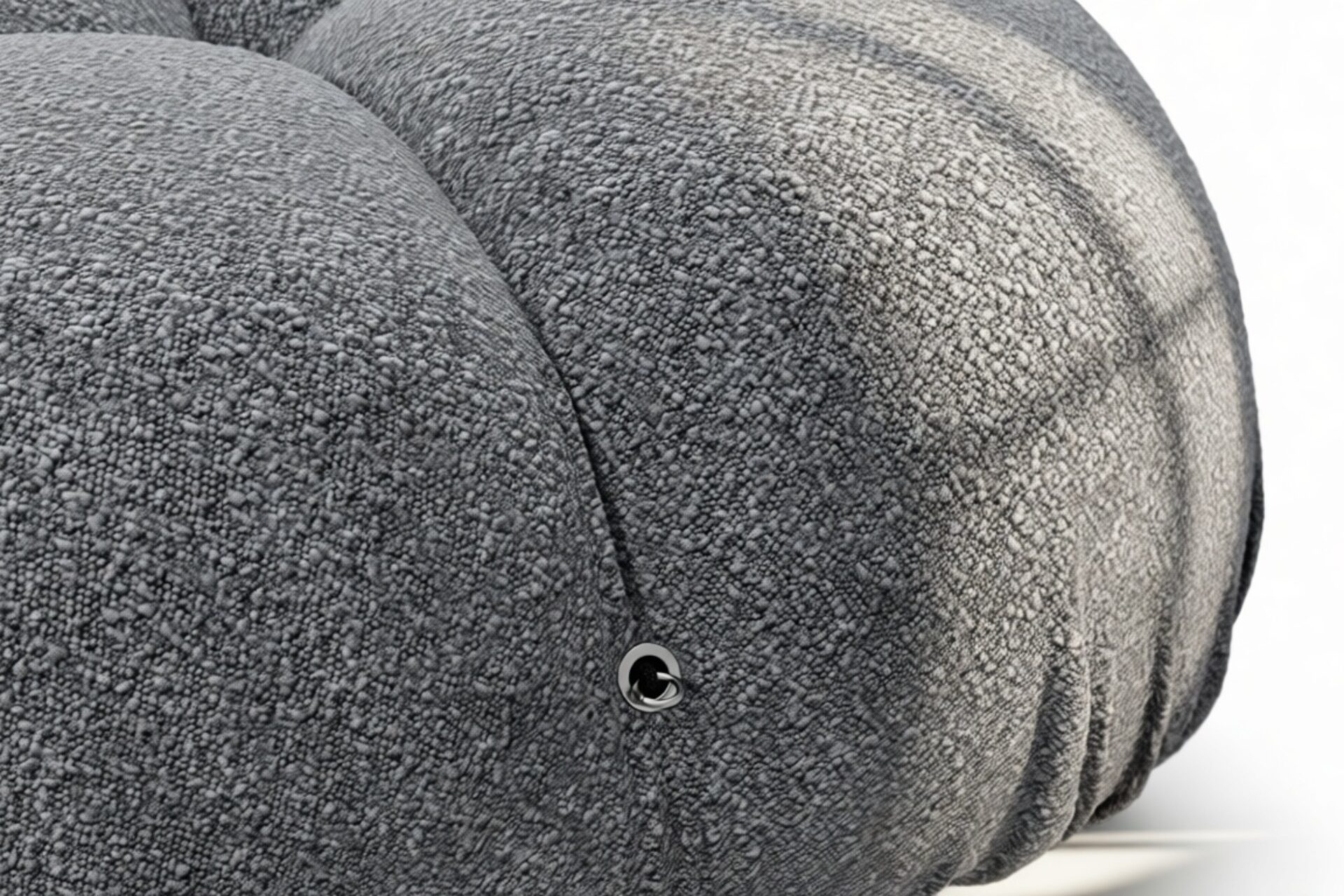 Step back into the 1970s with the Bellini sectional sofa, exuding groovy vibes and carefree living. Departing from traditional styles, this liberating piece offers modular customization without a full makeover. Crafted with a sturdy wooden frame, plush cold-pressed foam, and Gray Boucle fabric, the Bellini showcases a low-profile silhouette for a touch of relaxed luxury. Its tie rods and rings allow effortless rearrangement, reflecting a blend of style and adaptability.